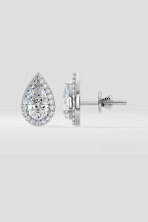 Each of the one ct Pear Solitaire Halo Studs is further complemented by a beautiful Halo. These simple studs are a timeless classic that will always be in style. The pear shape is unique because it provides more surface area for advertising purposes relative to its overall size.