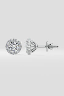 The diamonds are set into the Halo in a wave pattern, making them sparkle in all directions. Make your mark wherever you are. These lovely studs can take you from the office to a fancy supper with ease.