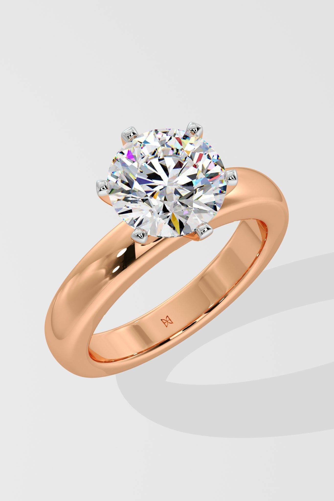 A stunning 3 ct Wide Band Solitaire Lab Grown Diamond Ring with a secure 6-prong setting, showcasing a brilliant center diamond. The substantial, comfortable band is available in all 3 gold colour options. A bolder band for your bold solitaire.