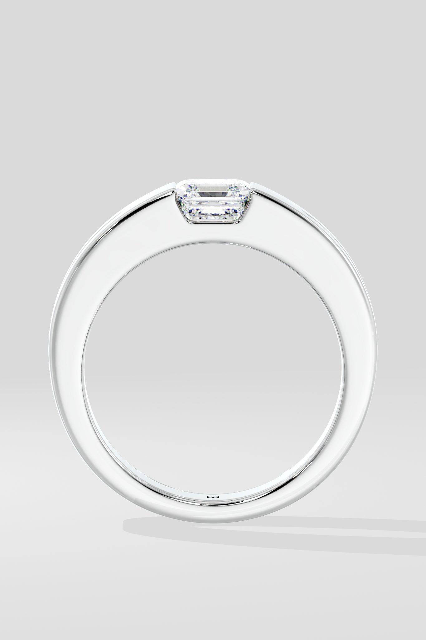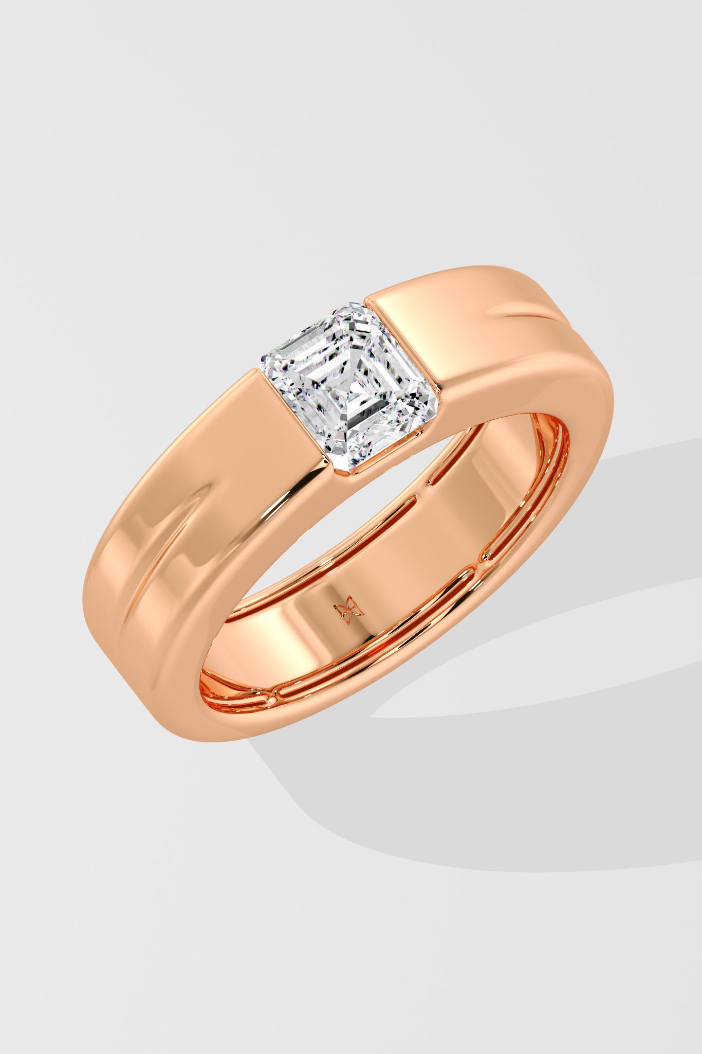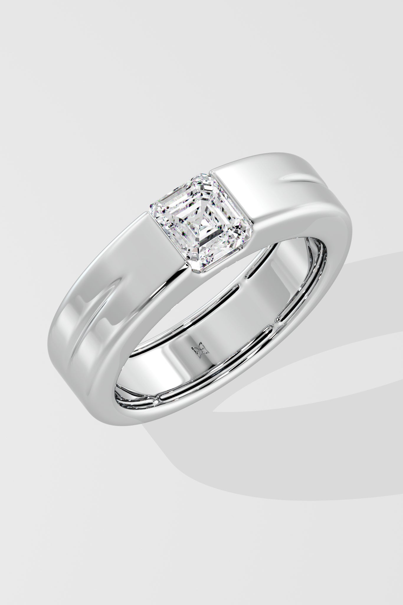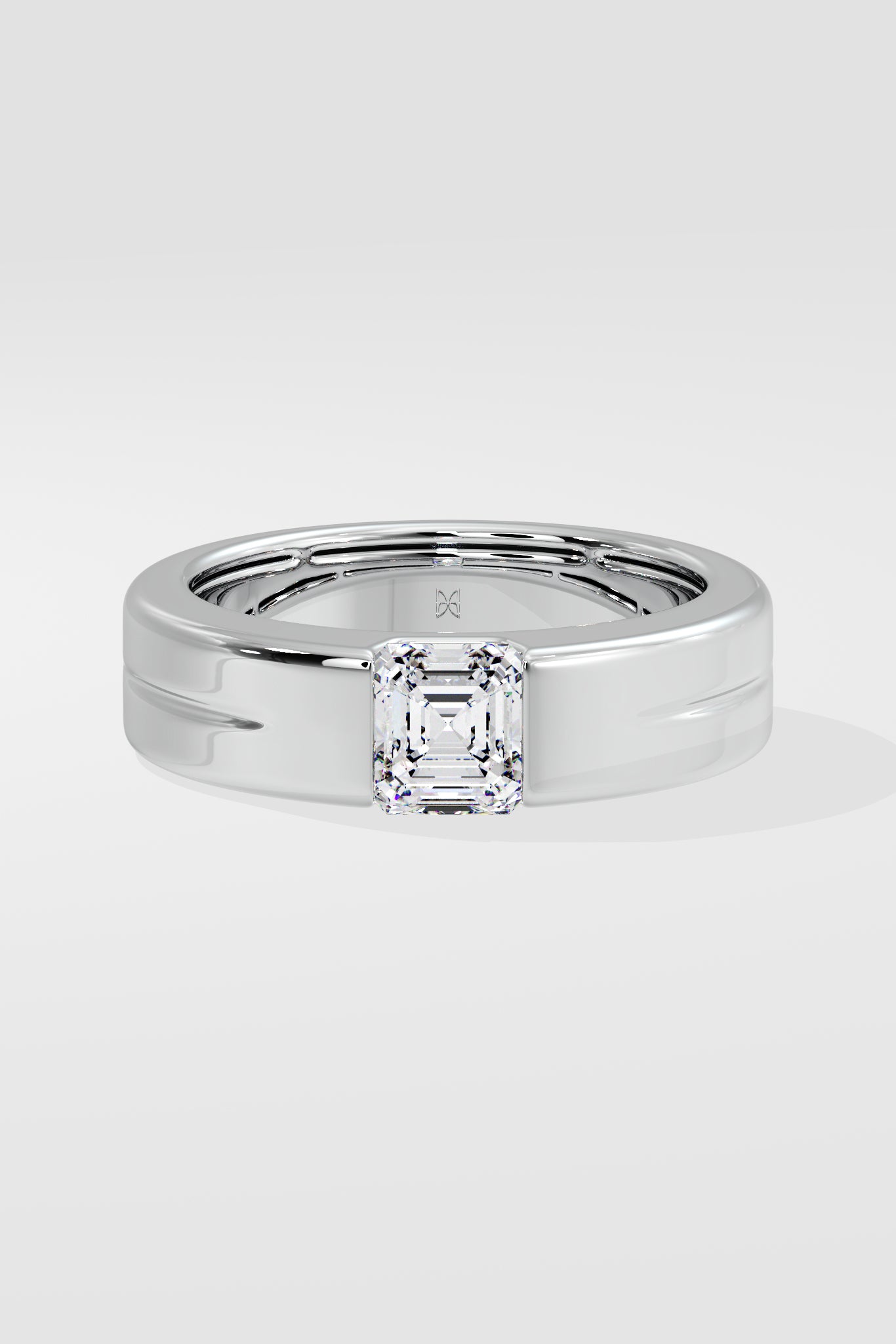 The 1 Ct Asscher Ring features a sharp, geometric Asscher-cut Diamond set in a sleek, minimal band. Clean lines and classic elegance in one timeless piece.