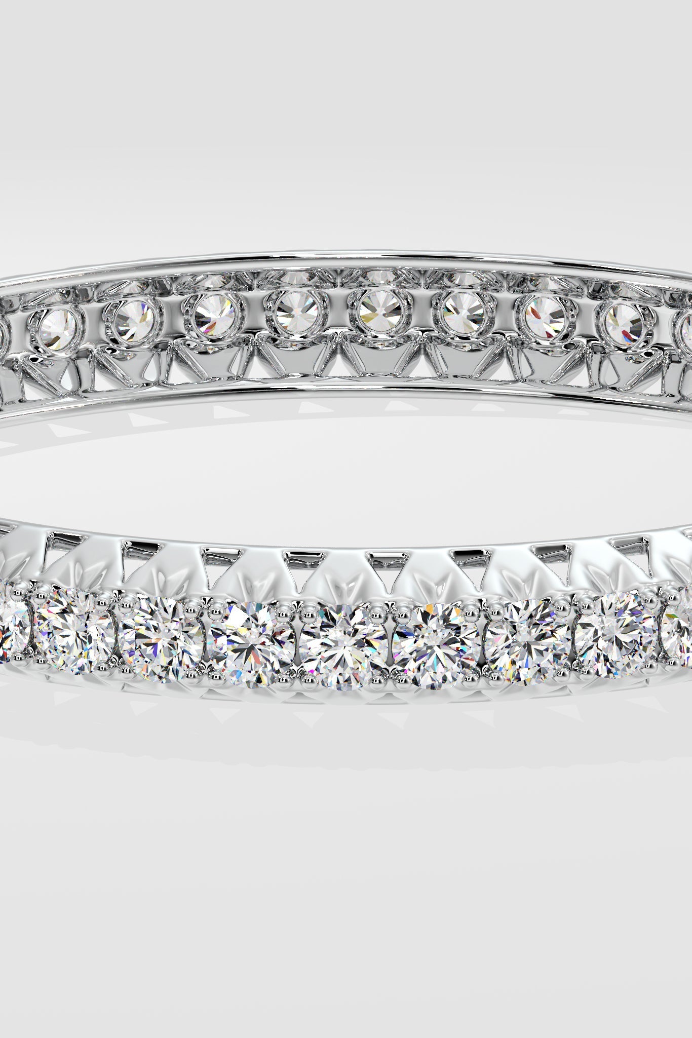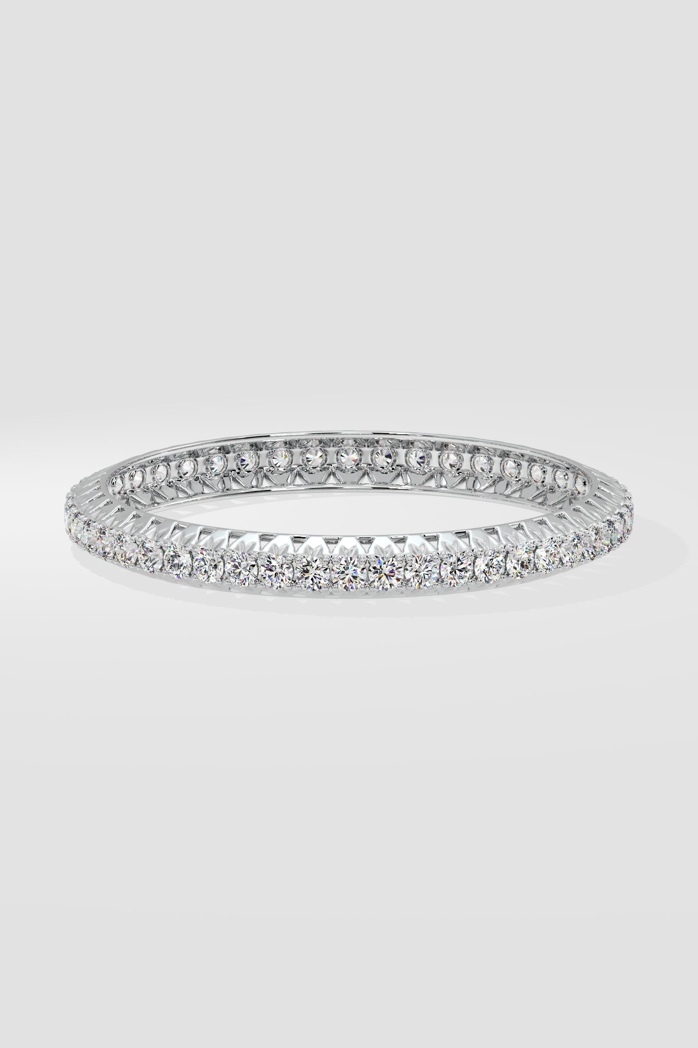Classic Diamond Bangle, adorned with 0.15 ct diamonds in a graceful gold motif. Available in white or rose gold, each bangle is made to order for the perfect fit, marrying beauty with comfort effortlessly.