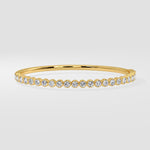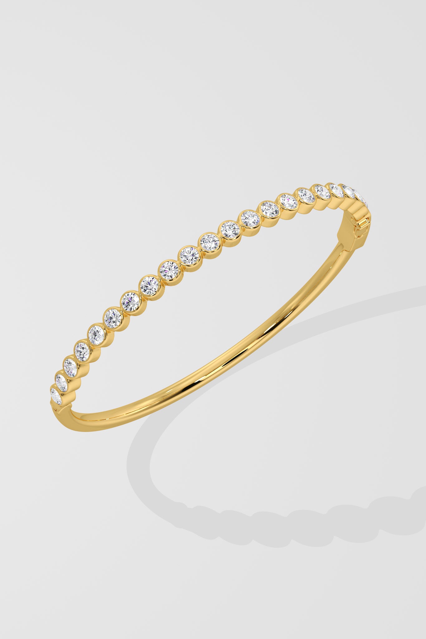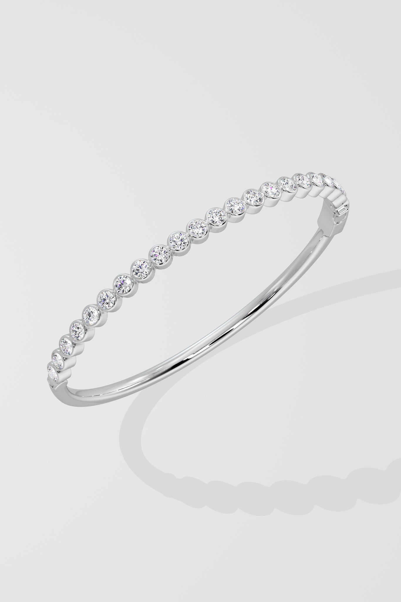The 0.09 ct Pointer Bezel Oval Bangle features  0.09 ct diamonds set in a bezel. Its clean, minimalist style makes it a versatile piece, perfect for daily wear