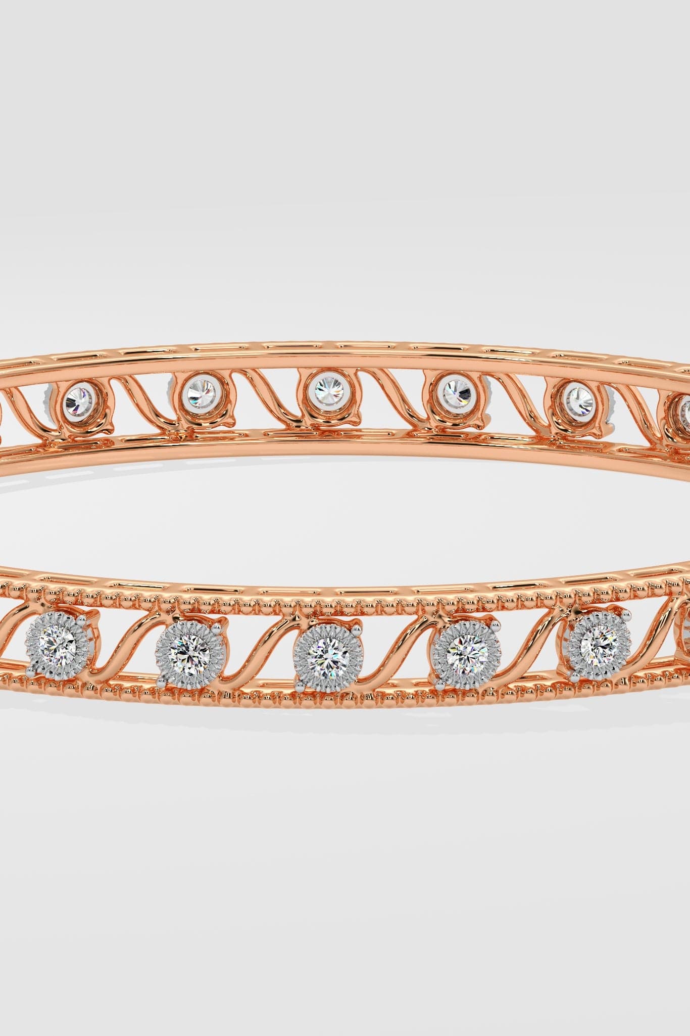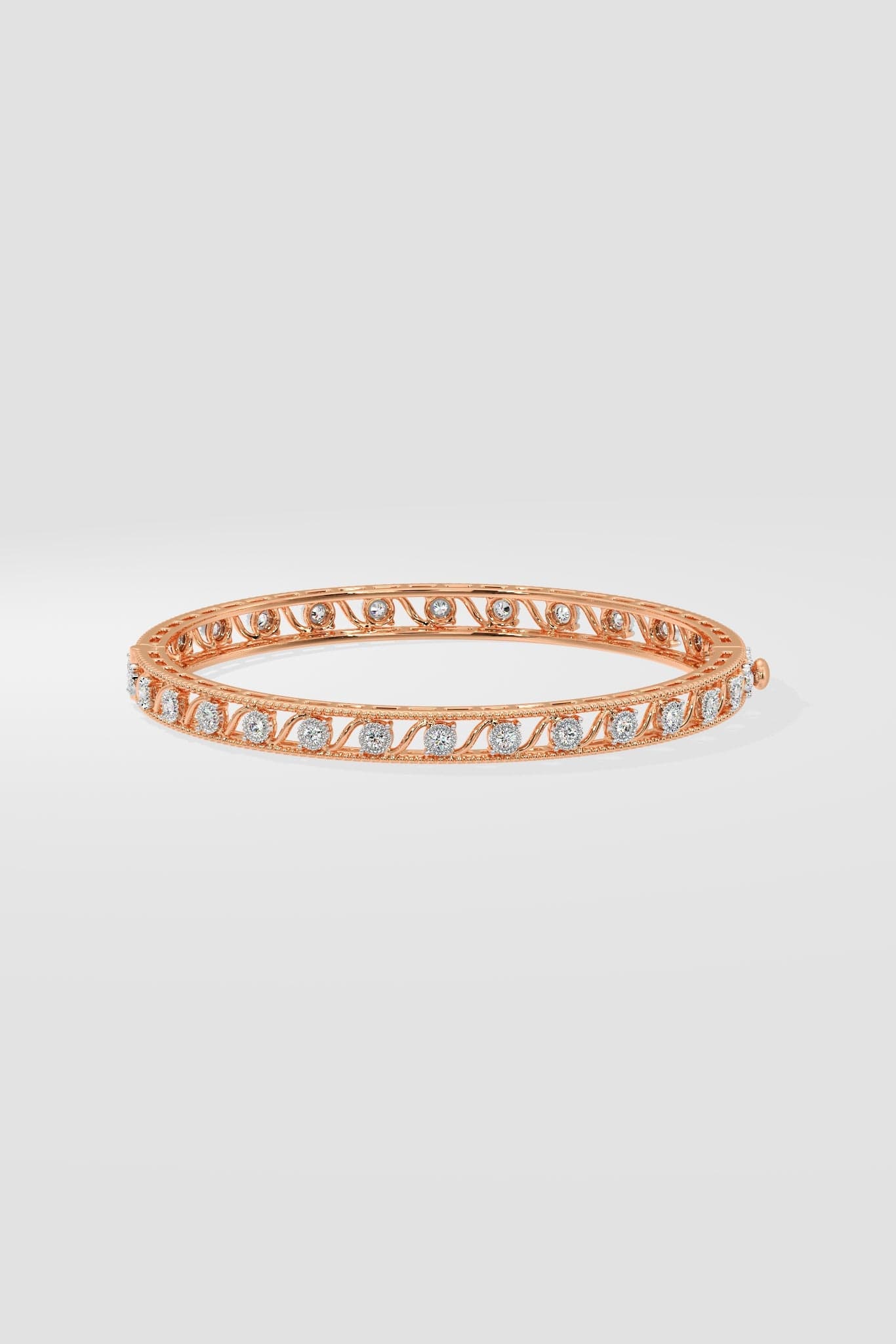Classic Diamond Bangle, adorned with 0.05 ct diamonds in a graceful gold motif. Available in white or rose gold, each bangle is made to order for the perfect fit, marrying beauty with comfort effortlessly.