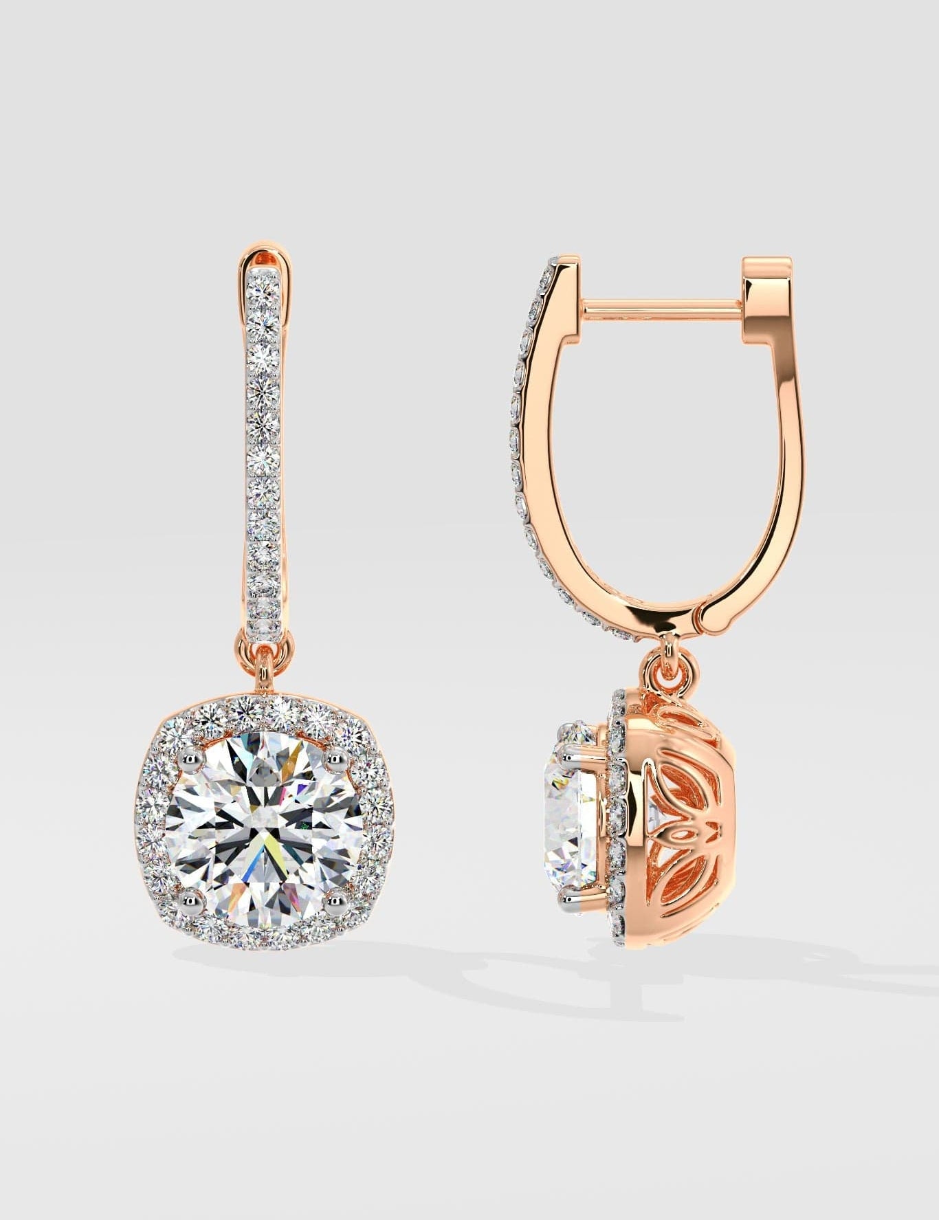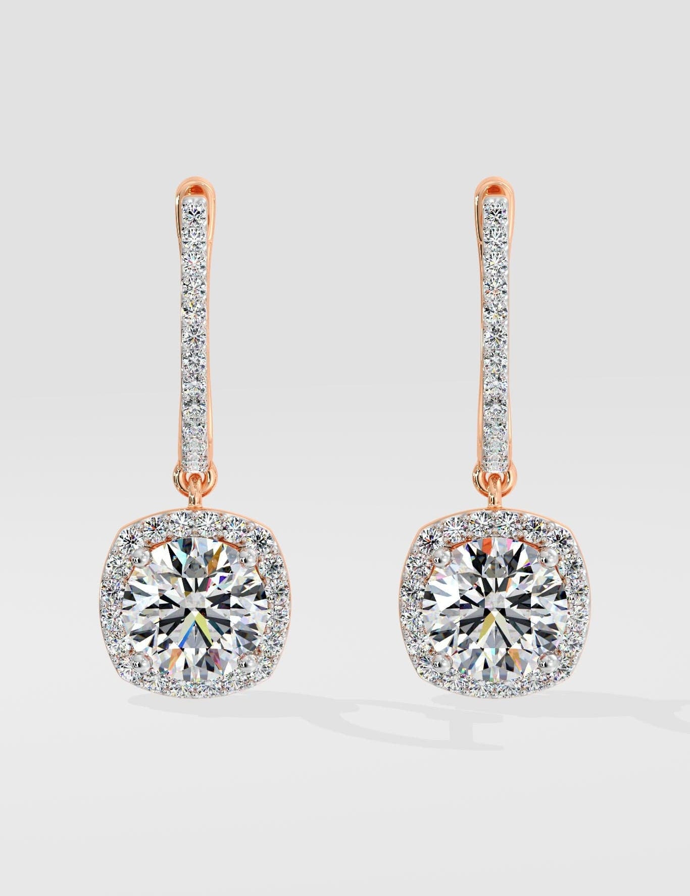 2 Ct Cushion-Cut Halo Earrings