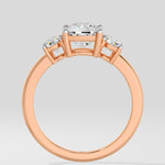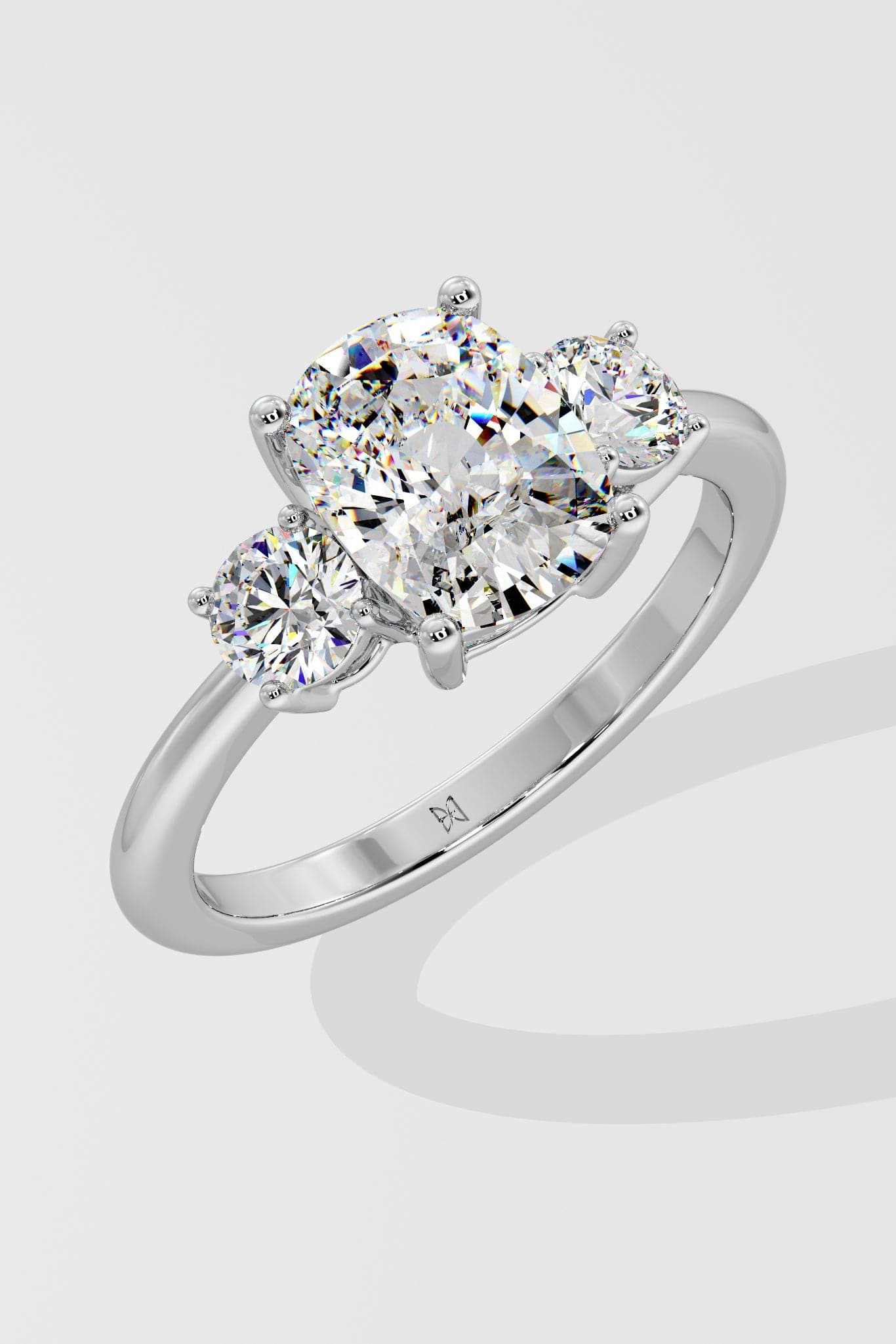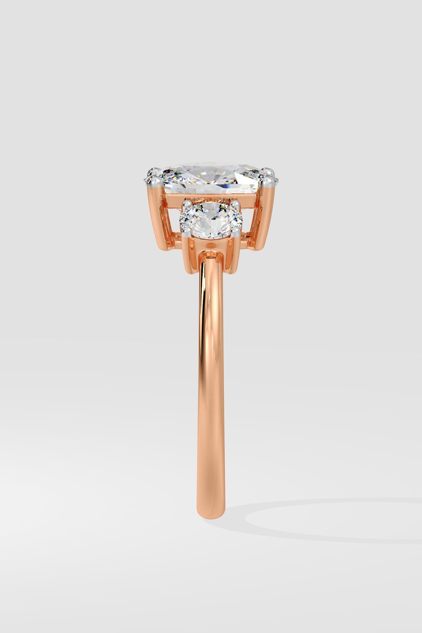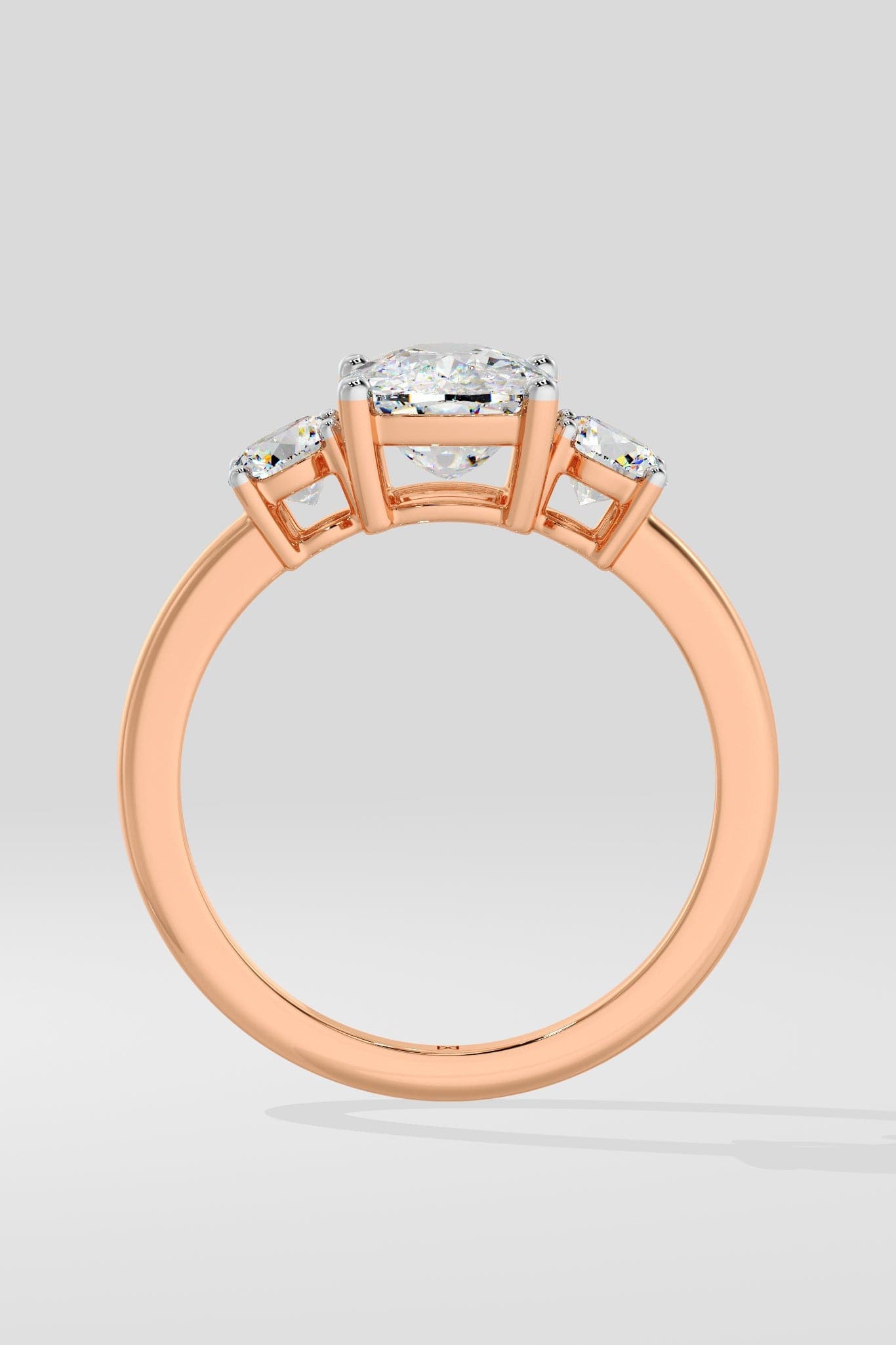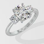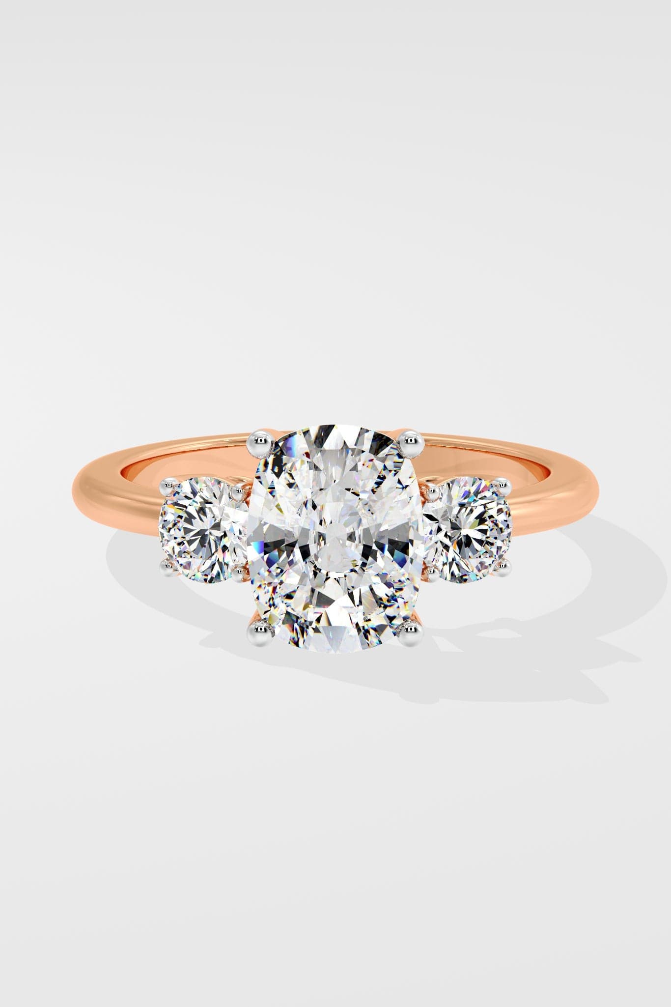The 2.5 ct Lab Grown Elongated Cushion Solitaire is the most beautiful alternative to the traditional round solitaires. With its contemporary cut, the cushion boasts exceptional brilliance. A true modern classic.