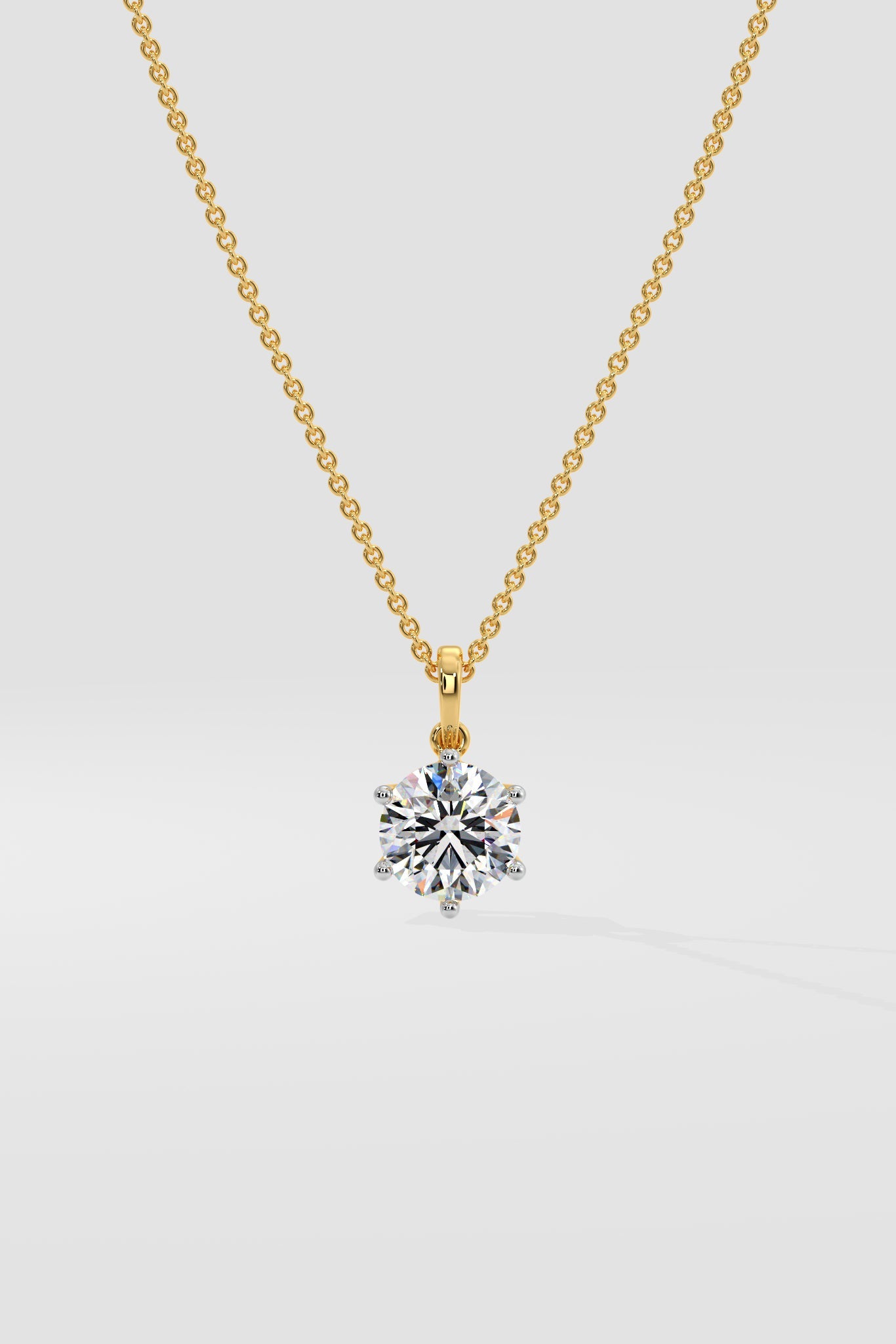 The 1.5 ct solitaire pendant, is crafted with a stunning 6 prong setting. The flat back ensures it stays perfectly in place throughout your day. Treat yourself to everyday luxury!