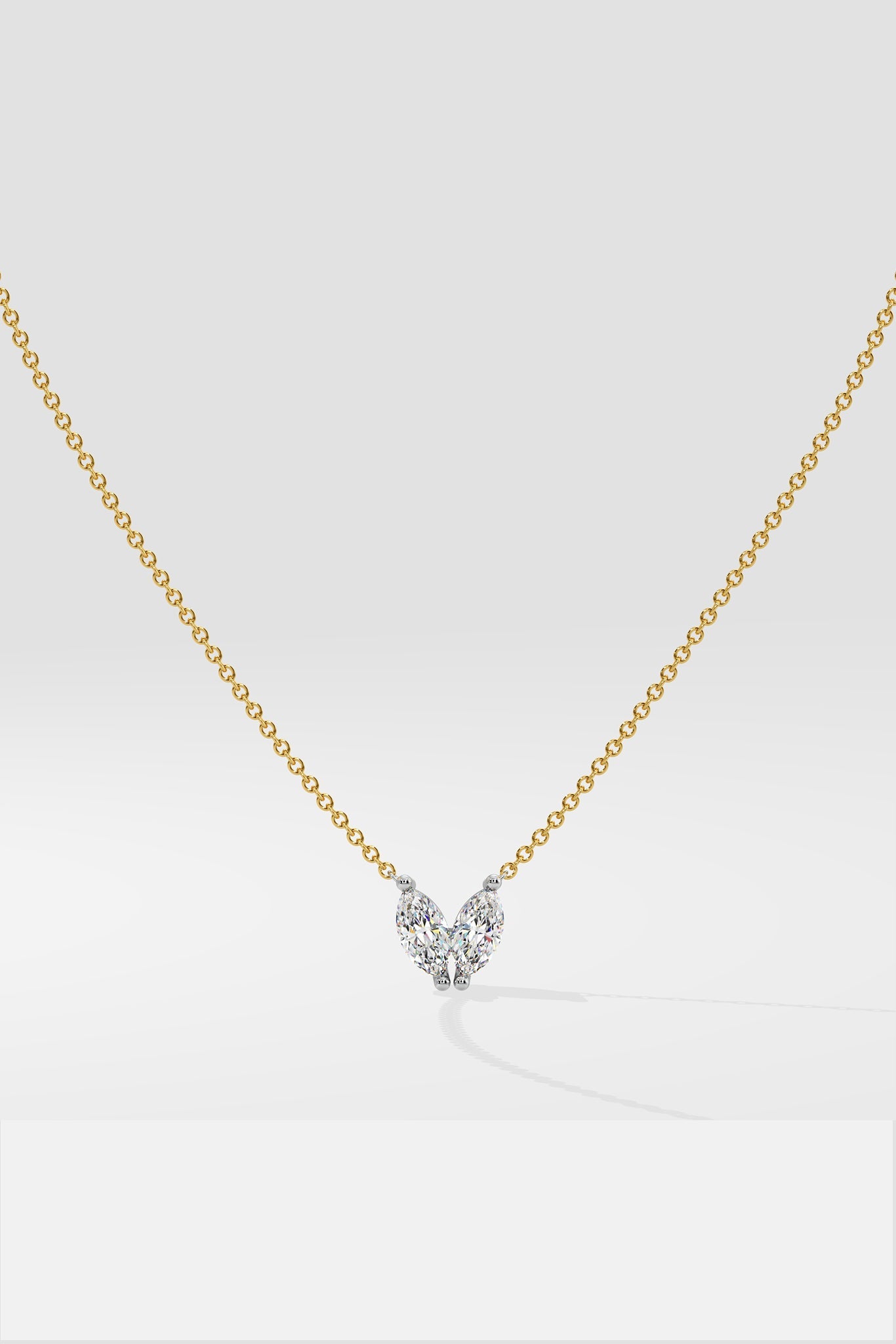 The Marquise Heart Duo Necklace feature 1/3 ct Marquise diamonds. Part of the T-Shirt diamond collection the duos are a twist on the single diamond stud to give a modern contemporary feel for your daily diamond style. Choose these to add to your essentials or gift a loved one something that they will cherish always.