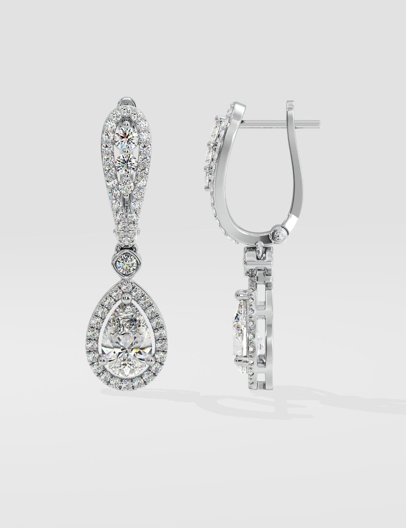 For the modern woman, our geometric designs blend contemporary shapes with the sparkle of diamonds. These earrings are perfect for trendsetters who love to stand out.