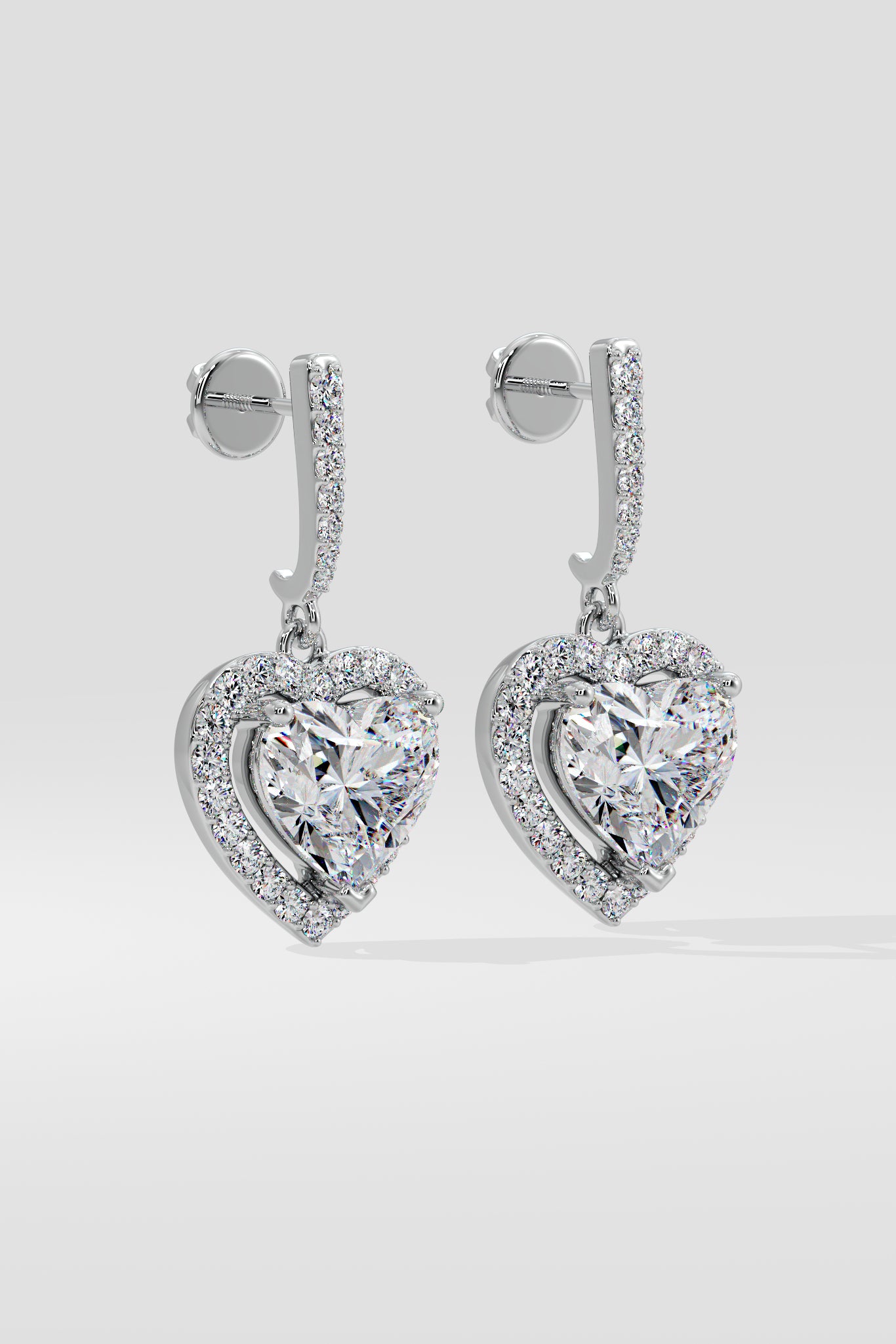 The Halo Danglers are 3/4 ct for each heart diamond with the classic halo set in micro pave. A beautiful balance of delicacy and dazzle makes this an unmistakable jewel to revere.