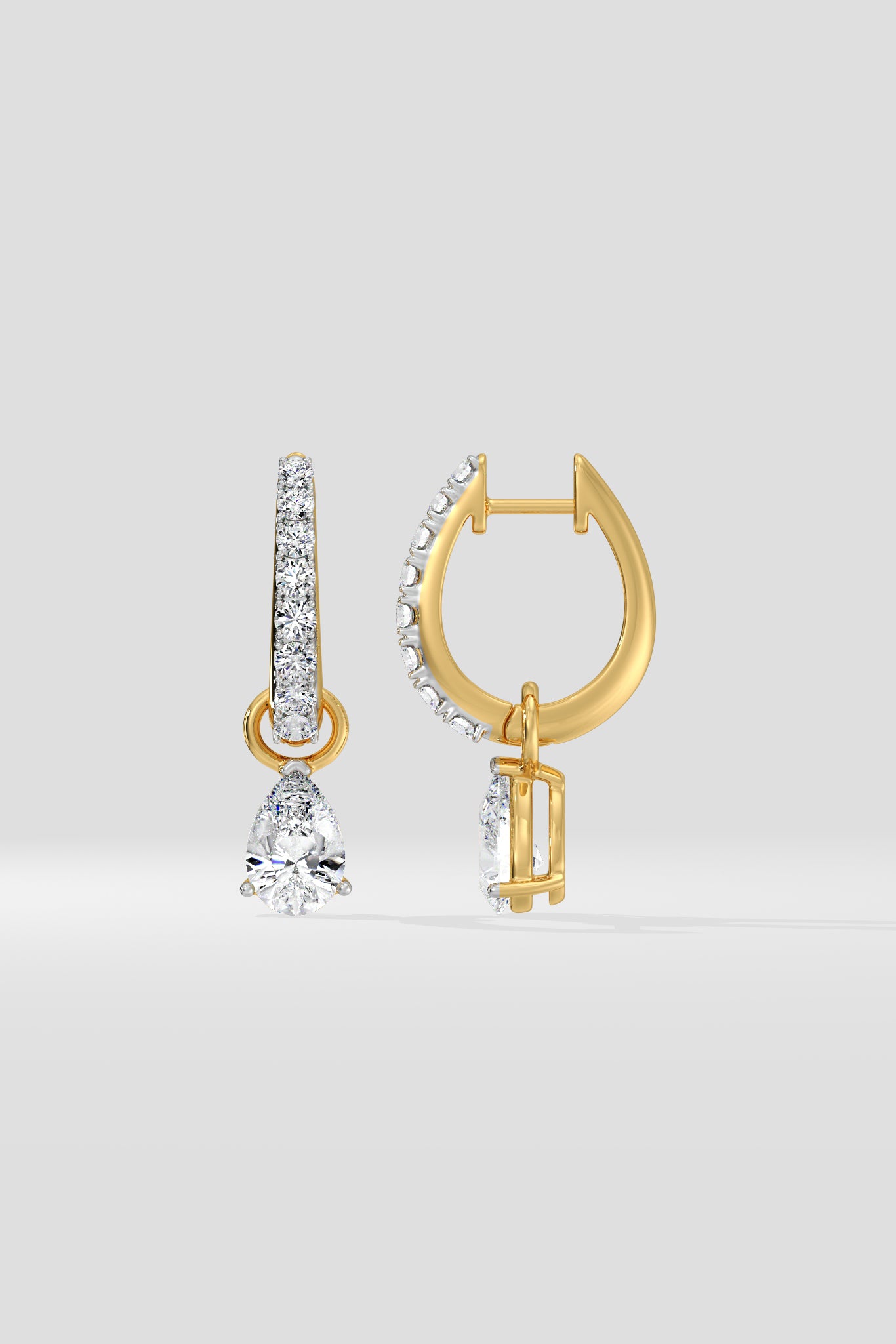Upgrade your earring game with the Mini-Hoop Danglers - versatile and luxe! Featuring detachable 3/4 ct pear drops, these earrings give you the option to wear the huggies standalone as well.. Whether you're wearing them as classic hoops or adding a touch of elegance with the pear drops, these beauties will elevate any outfit. Beyond Classics is where Natasha & HOQ are commingling a cool, casual and effortless style.