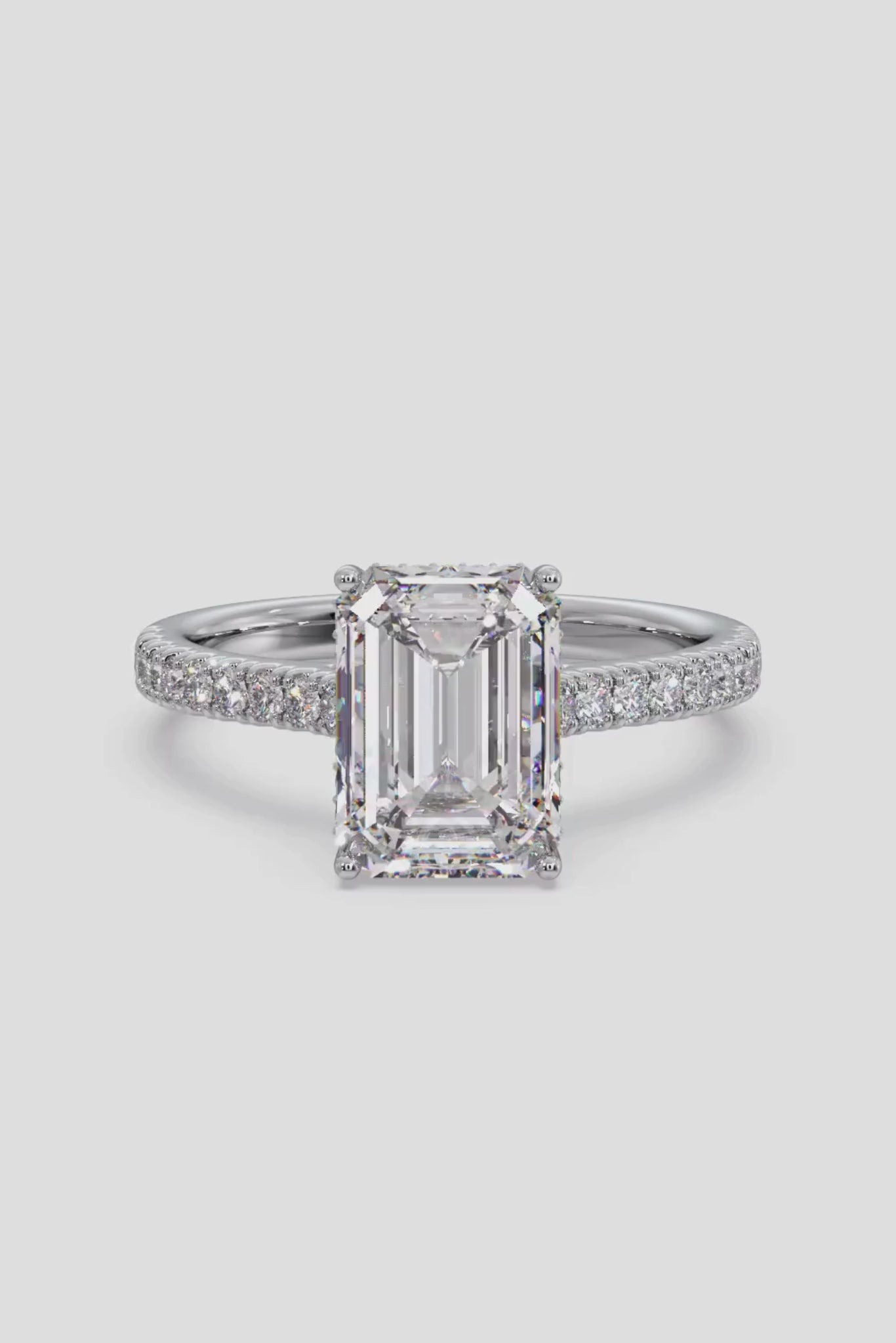 The Emra Invisible Halo Solitaire Ring is a Masterpiece. With a 4 Ct center stone, and a 360* invisible halo, this is the epitome of luxury. Go big and Go bold.