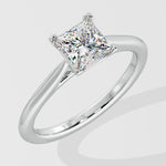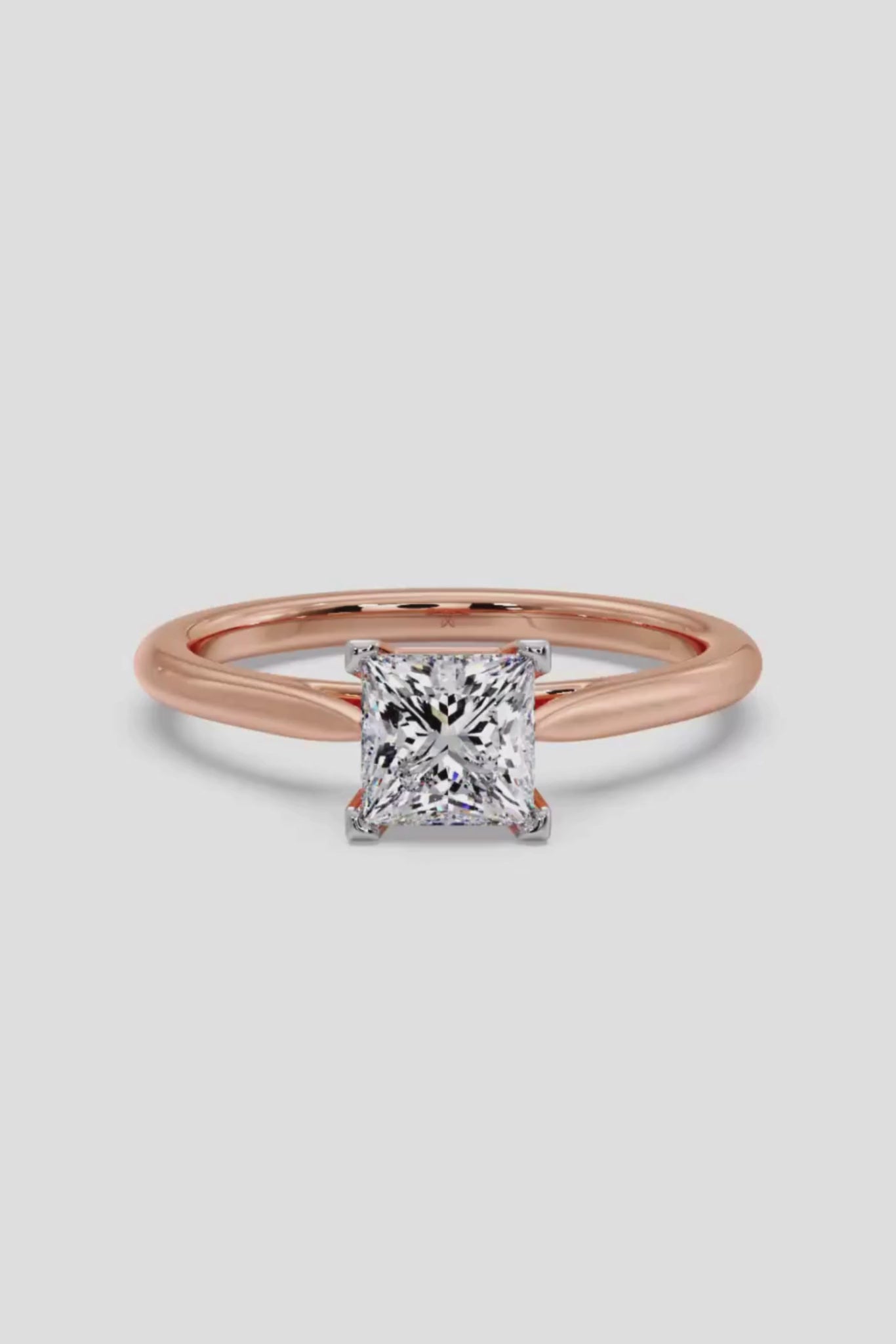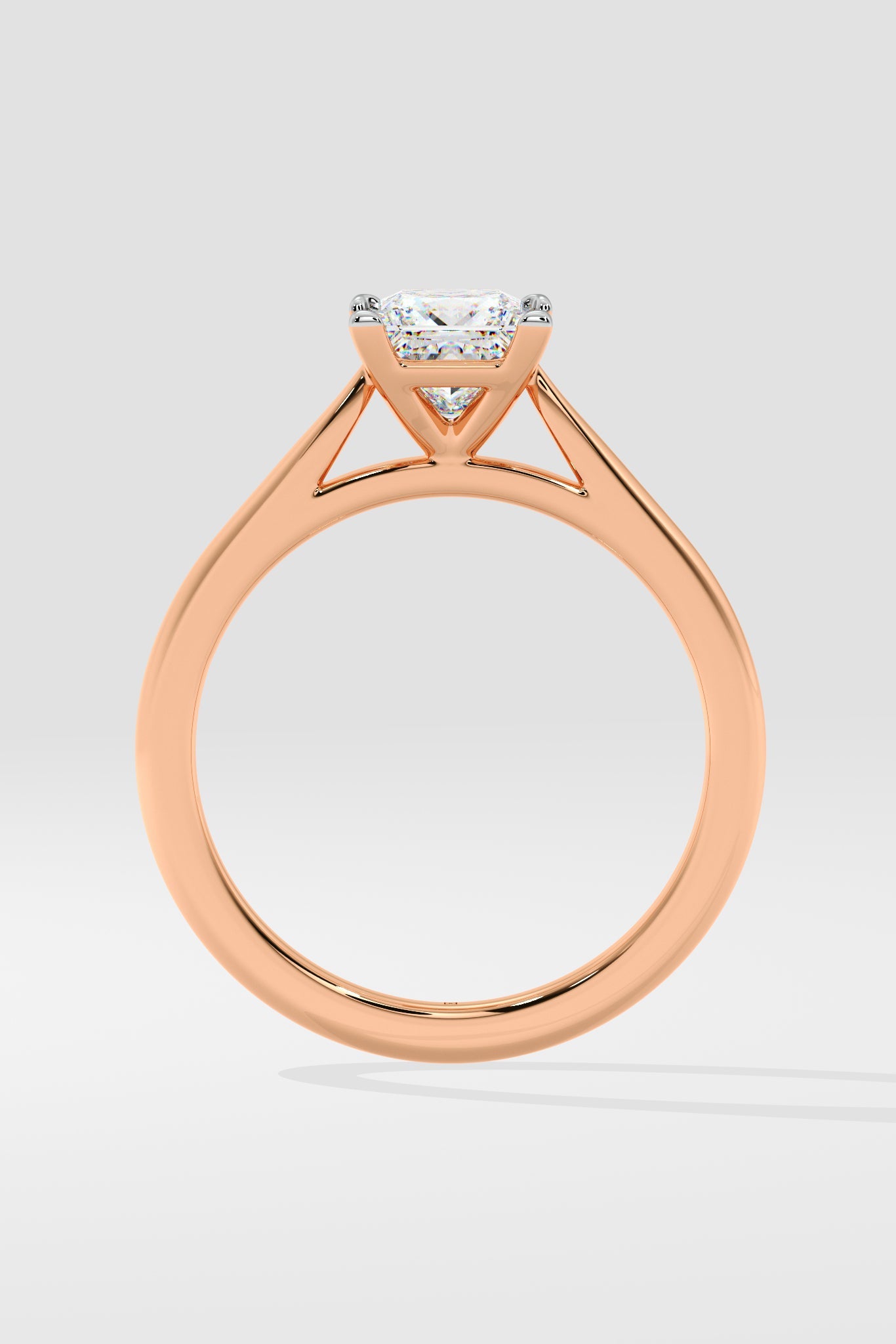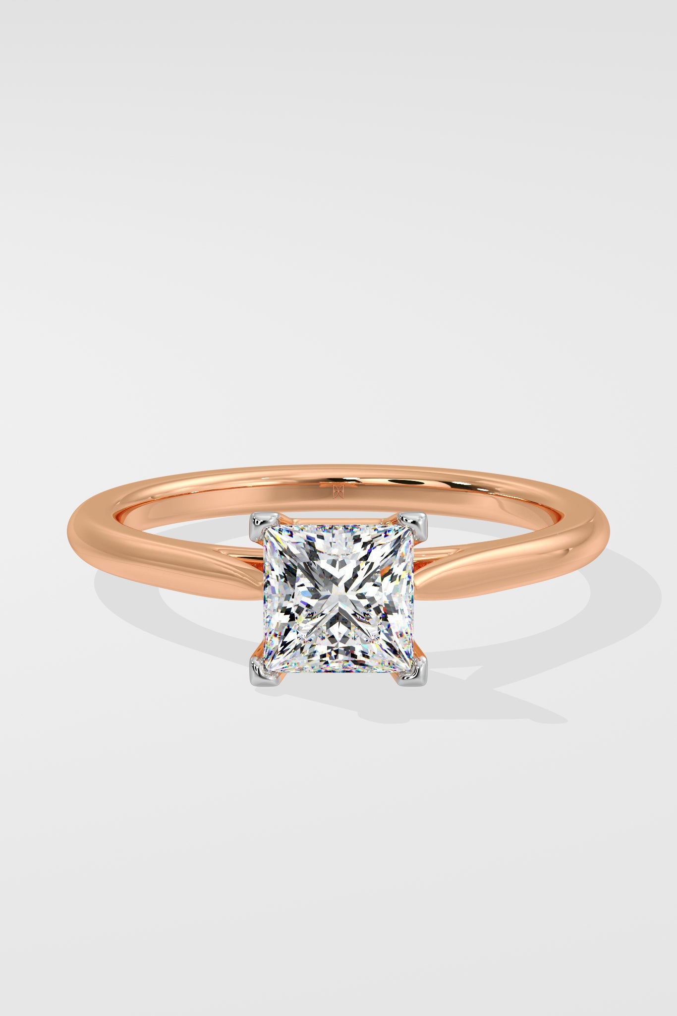 The Lab Grown 1 ct Classic Princess Diamond Ring features an open basket with V-prongs that uplift the center stone. The petite band completes the sleek, classic design.
