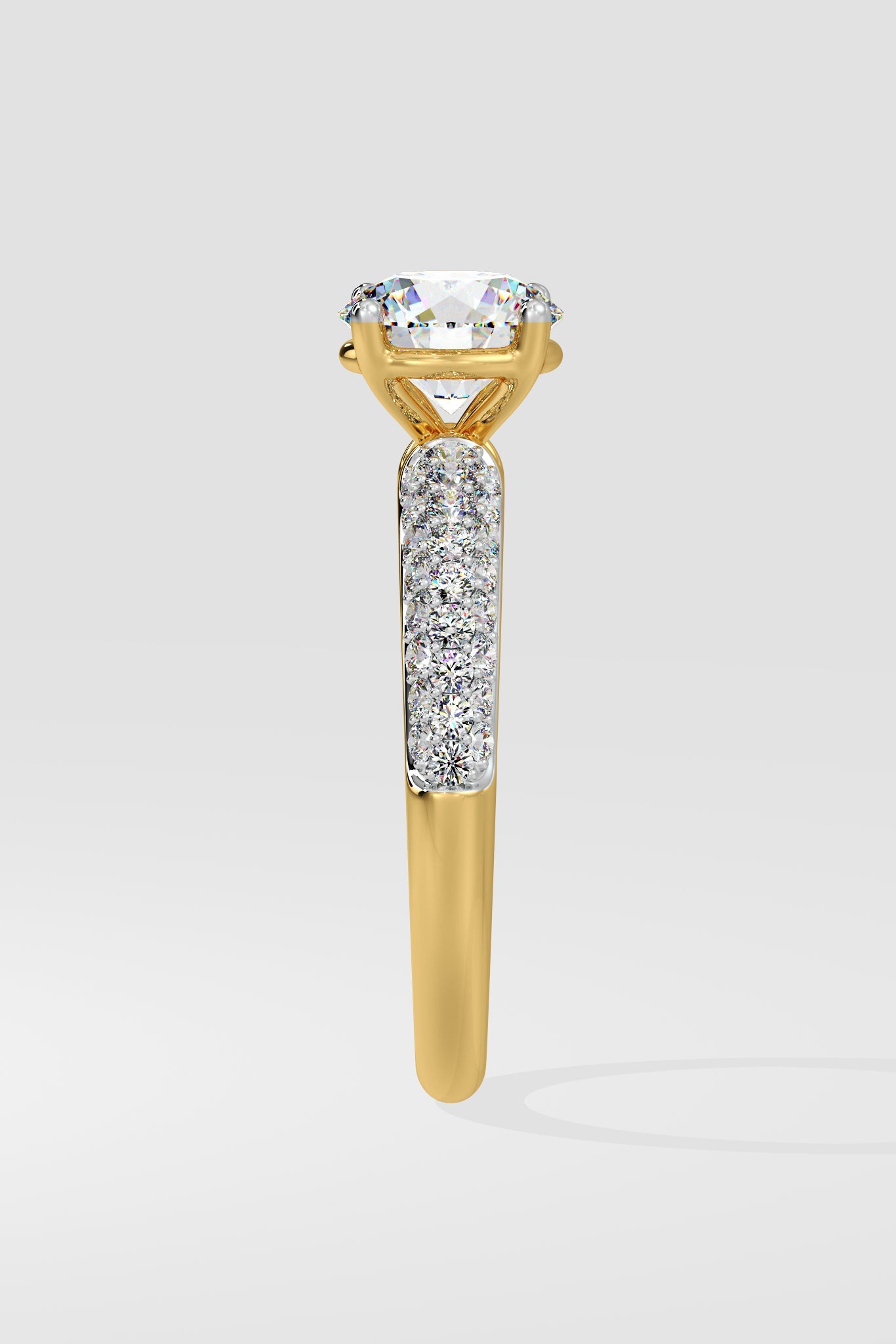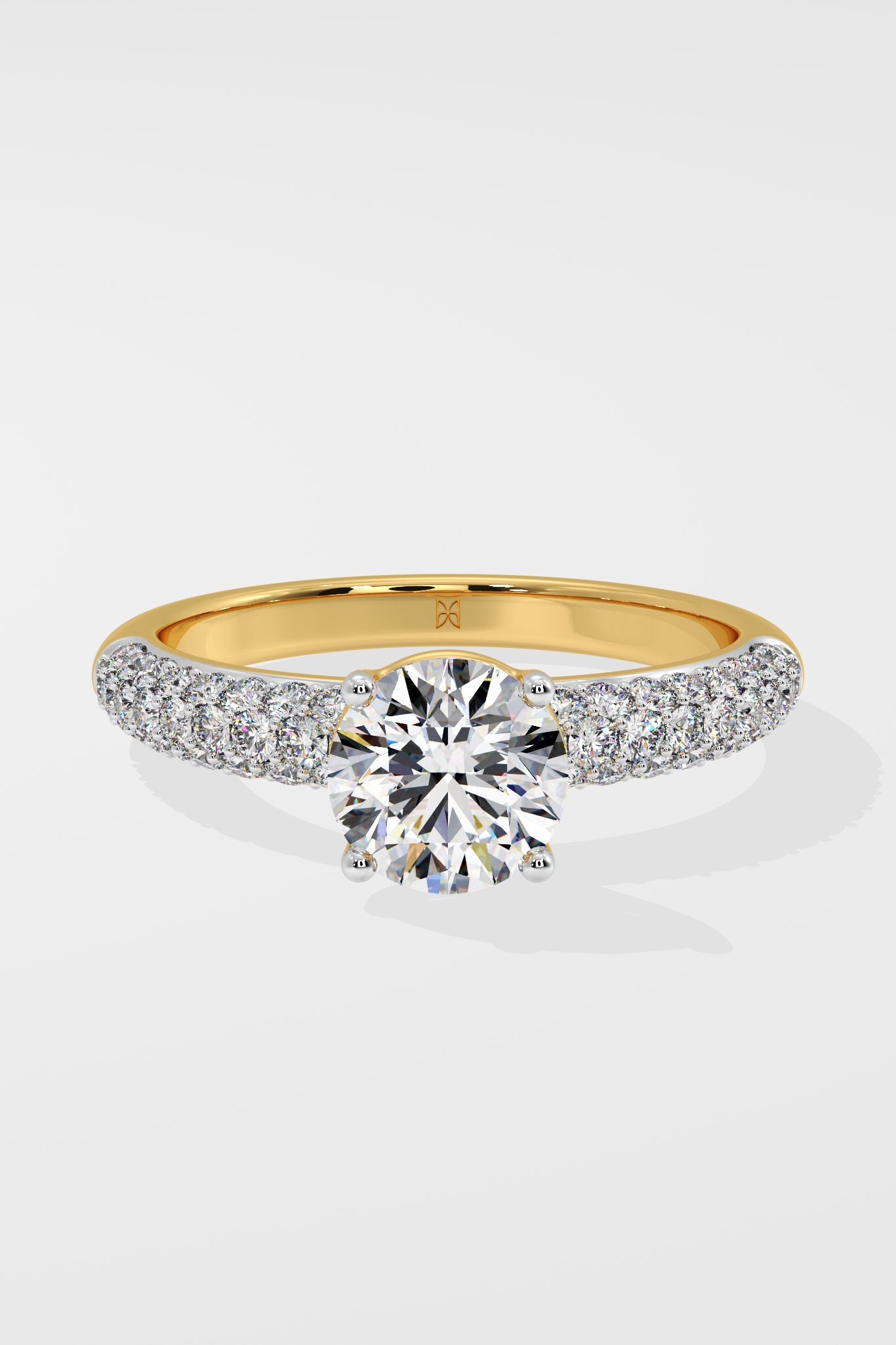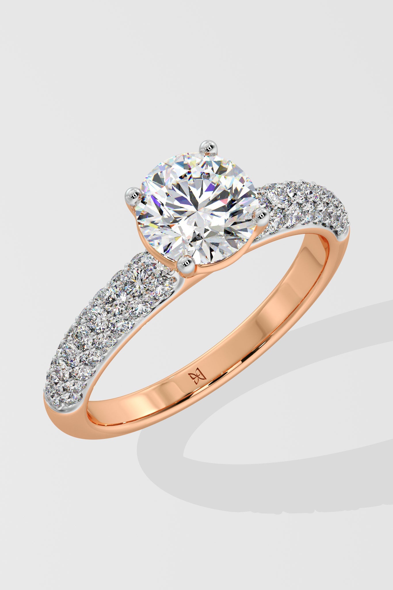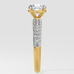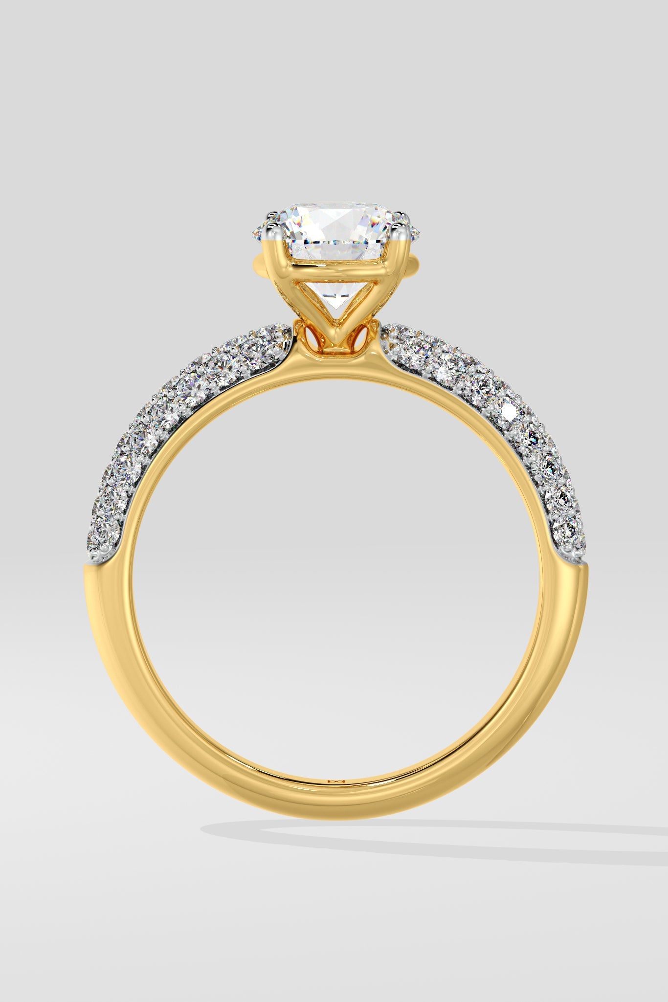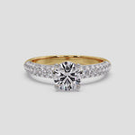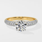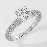 The Lab Grown Diamond all time classic and favourite Pave Solitaire Ring features a brilliant 1 Ct round center diamond and a shimmering 3-row channel setting along the shank. Designed for comfort and style, this ring holds undeniable charm and sparkle.