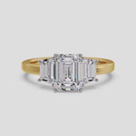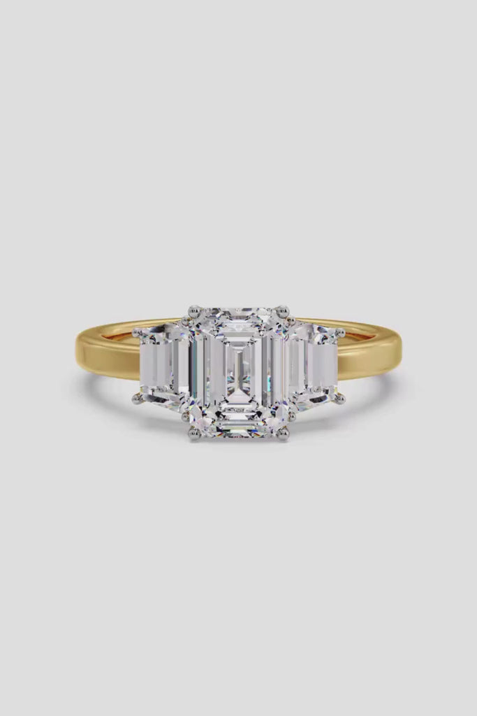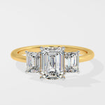The Emra Trinity Ring features a 2 Ct centre with sides of with stunning emeralds at 0.30 Ct on each side. The 3 stone is always a classic and works wonderfully as an anniversary ring as well.