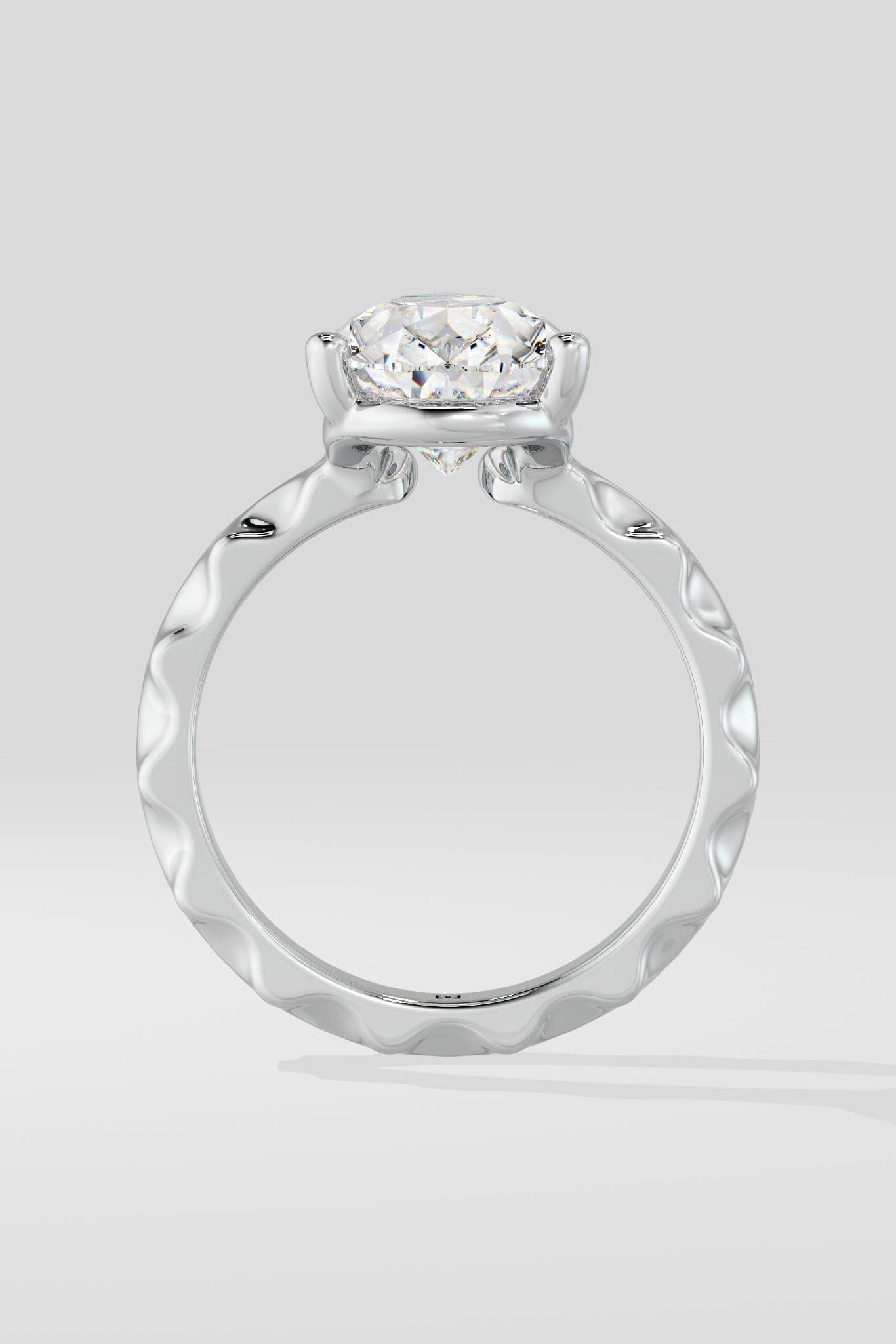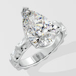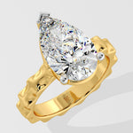Featuring a stunning 3-carat pear-shaped diamond at its center, the Inegale ring is set on a distinctive hammered band that adds texture and individuality. The stand out shank combine with the dazzling pear makes this one of a kind.
