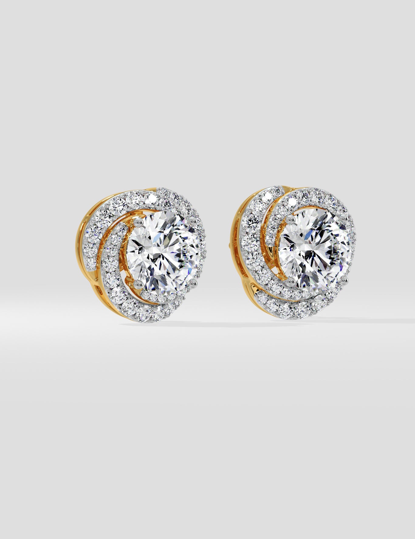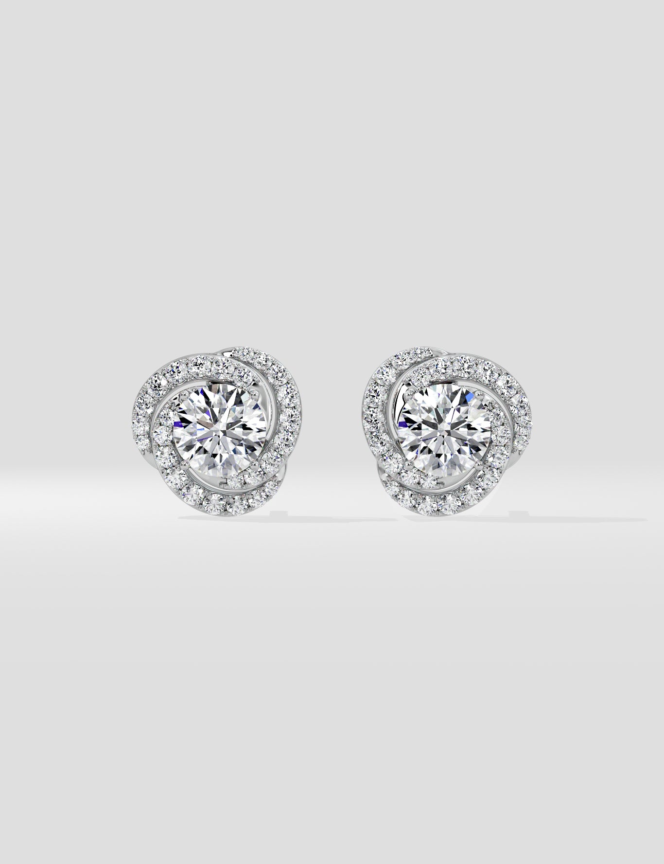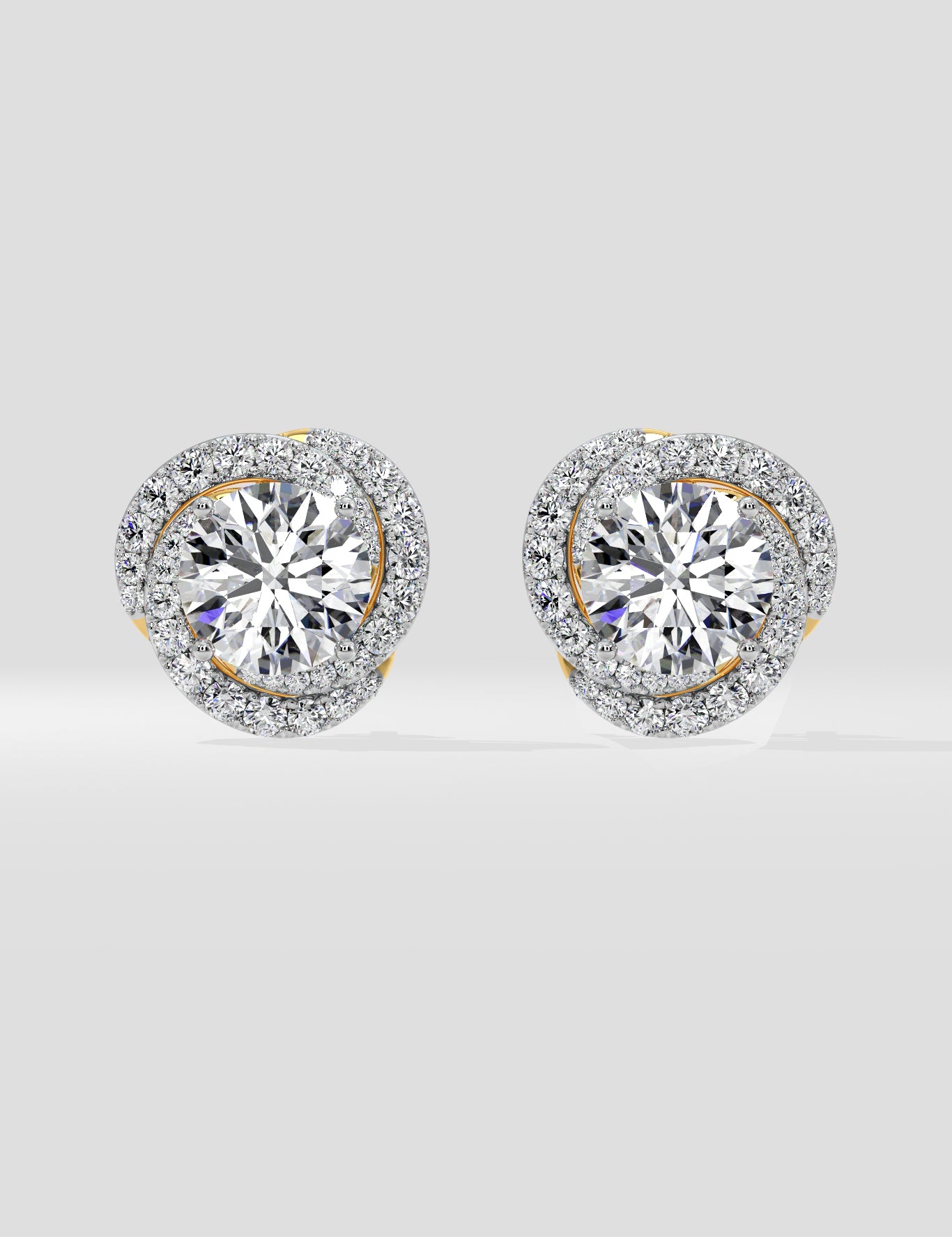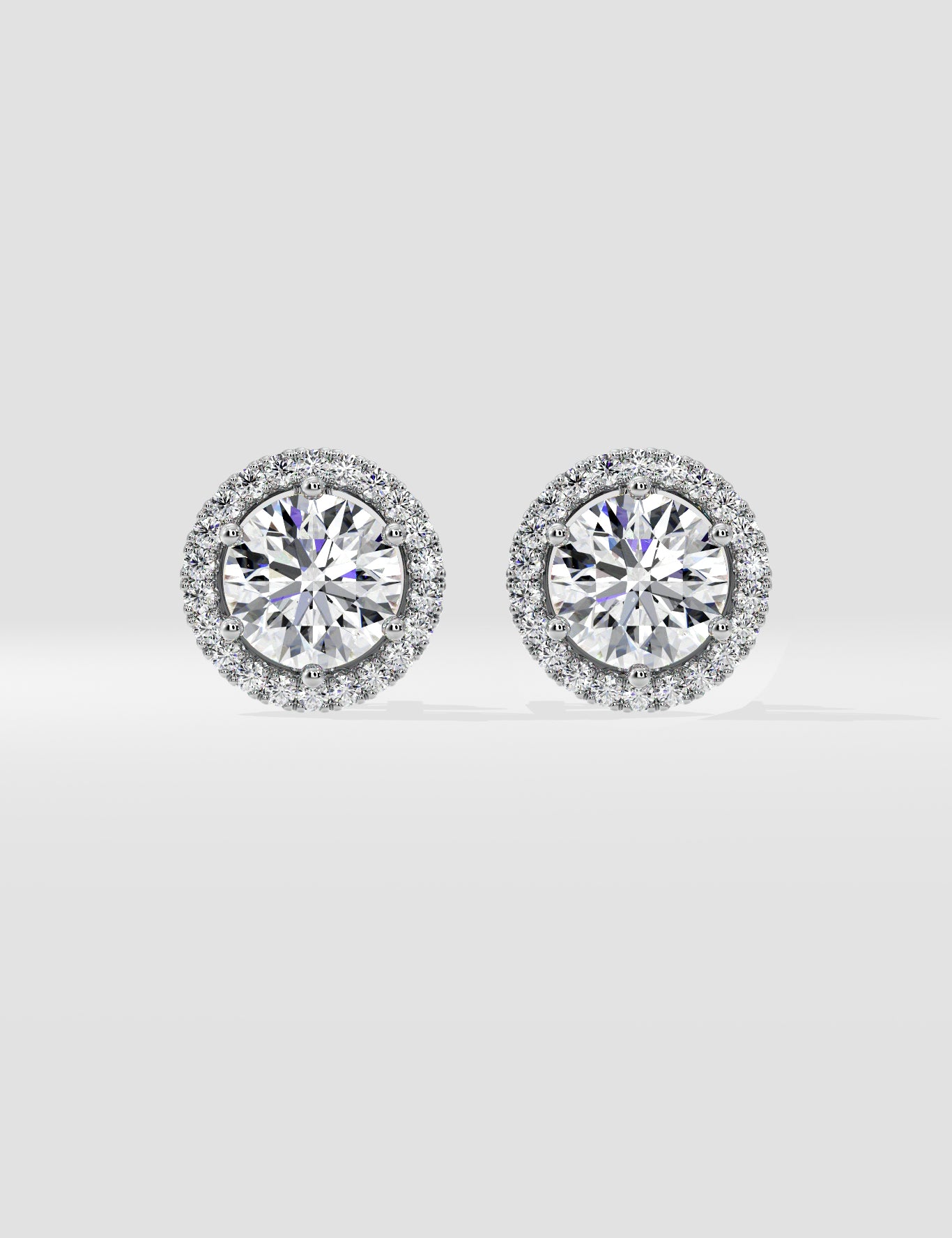 Perfect for everyday wear, our classic halo studs are a must-have. These earrings feature a stunning central diamond encircled by smaller diamonds, offering an elegant and understated look.