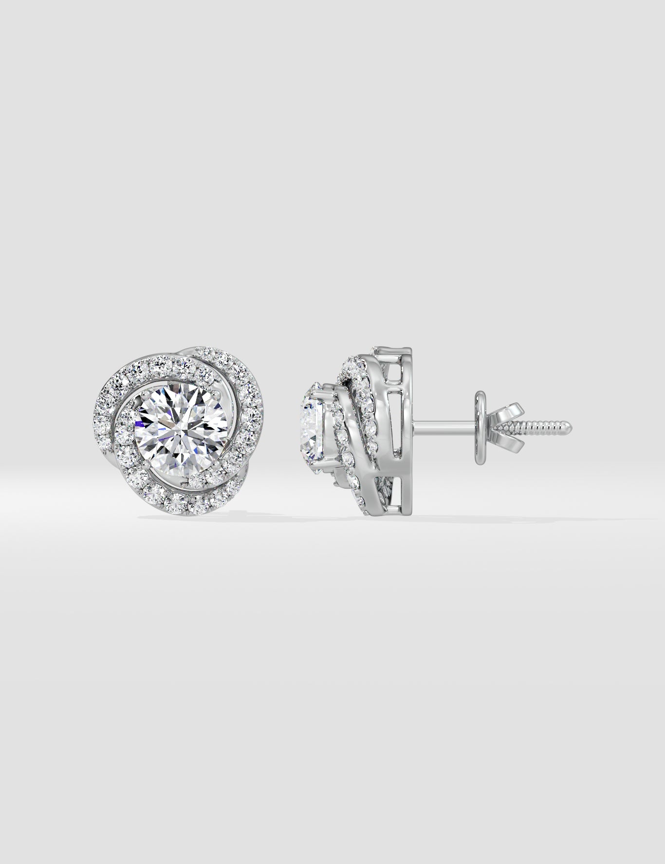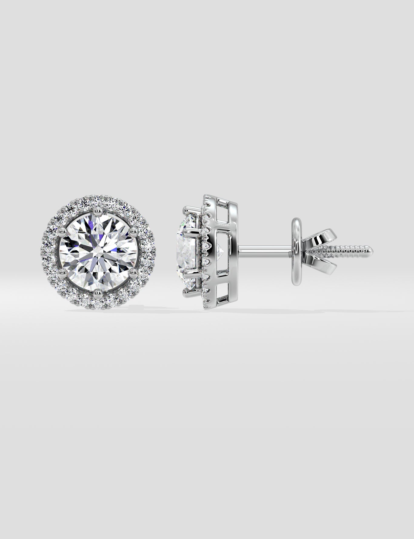 The halo design amplifies the shine and sparkle of the center diamond, making it appear larger and more striking. Whether you choose round, oval, or princess-cut diamonds, the halo setting enhances the overall brilliance of the earrings.