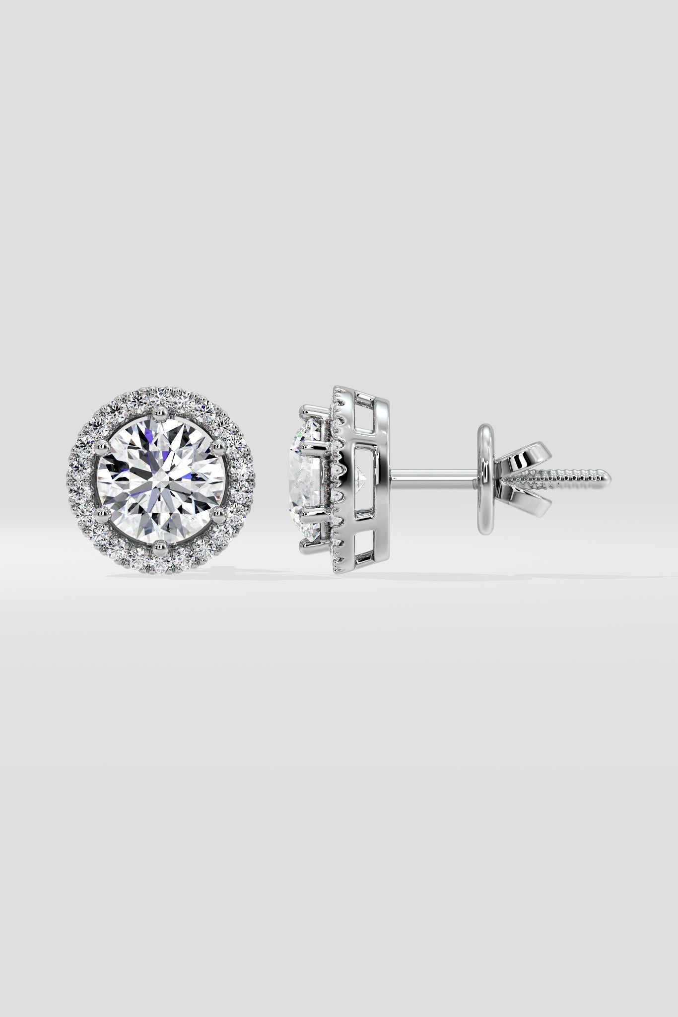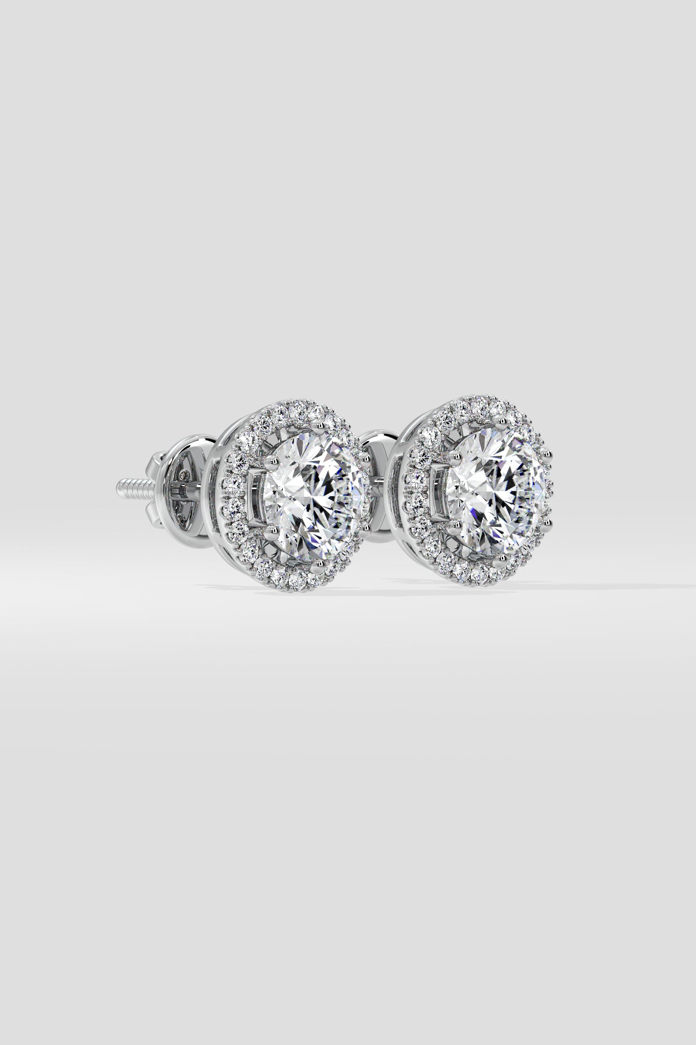 The incredibly popular 1 ct Halo Studs are the elevated version of the basic studs. Set in a classic 6-prong setting, the Halo gives up to a 50% enhanced look on your solitaire. You can't go wrong with 1 ct classic studs, whether you choose them for yourself or gift a loved one.