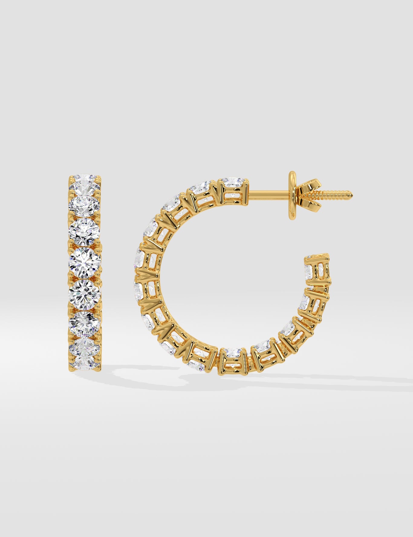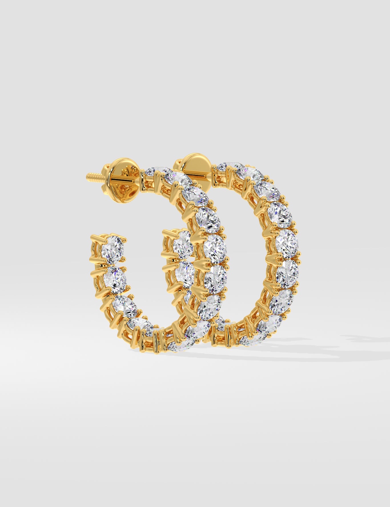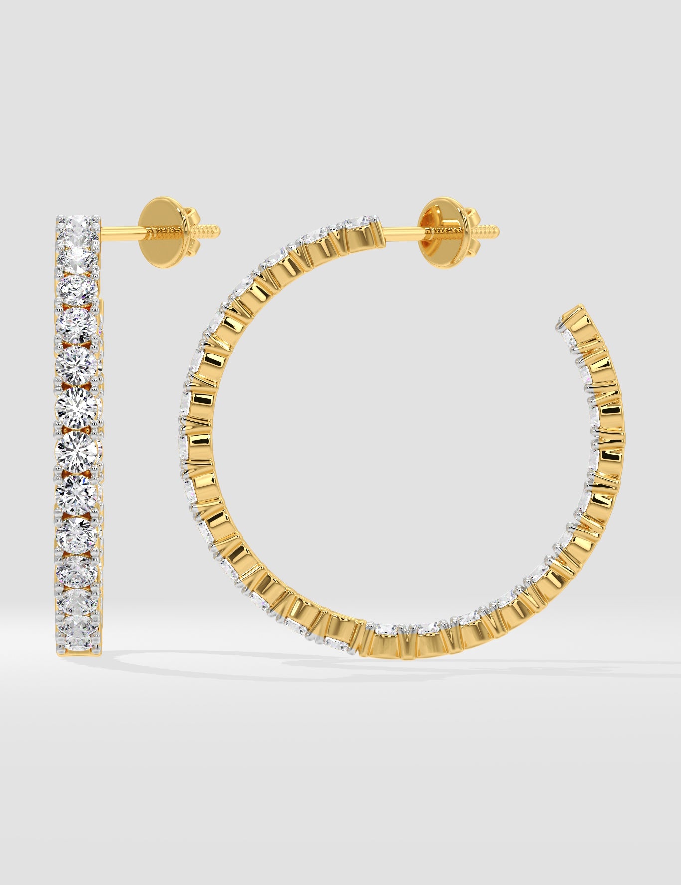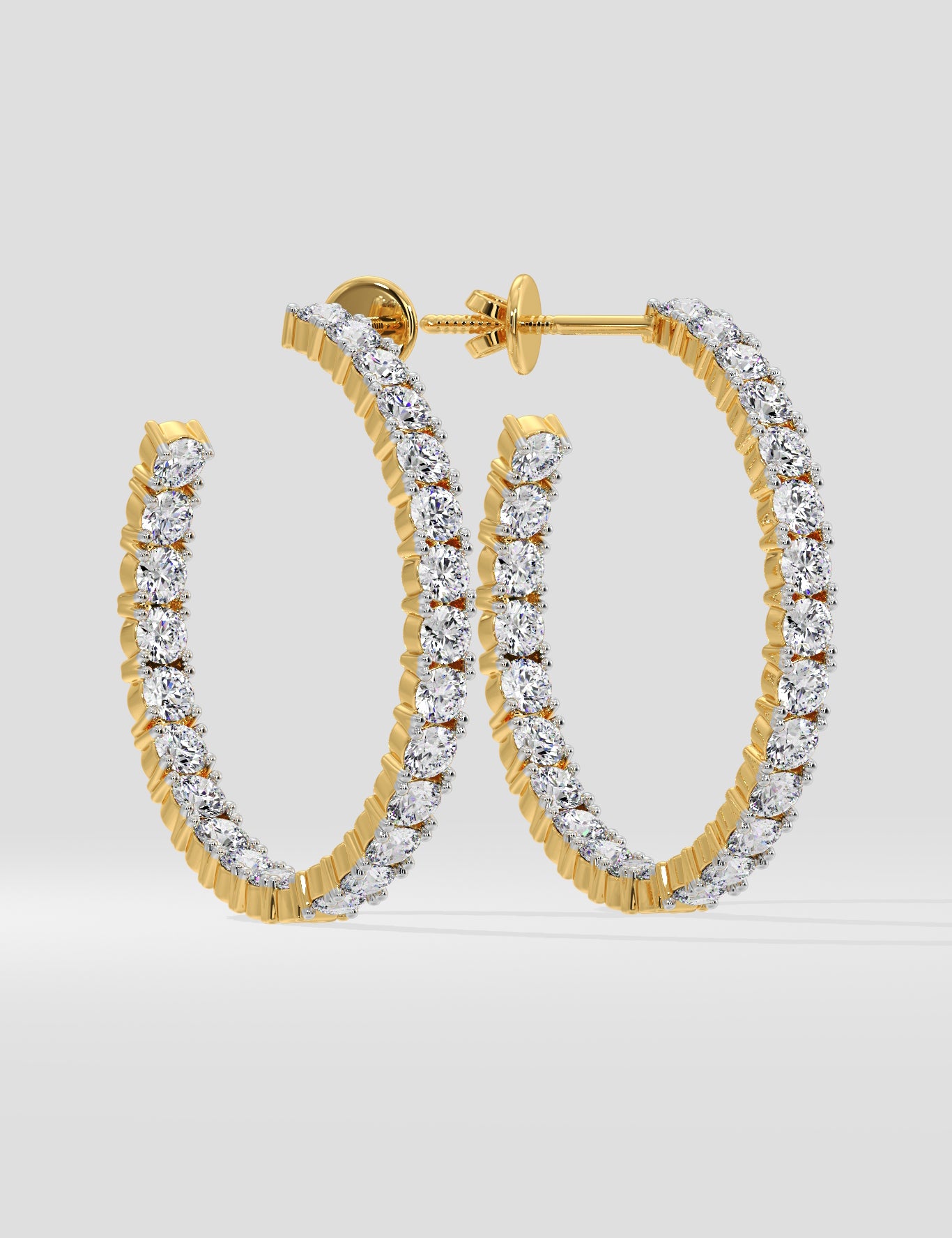 Lab-grown diamonds possess the same chemical, physical, and optical properties as mined diamonds. This ensures that every pair of diamond hoop earrings in our collection delivers unmatched brilliance and clarity, making them a show-stopping addition to your jewelry box.