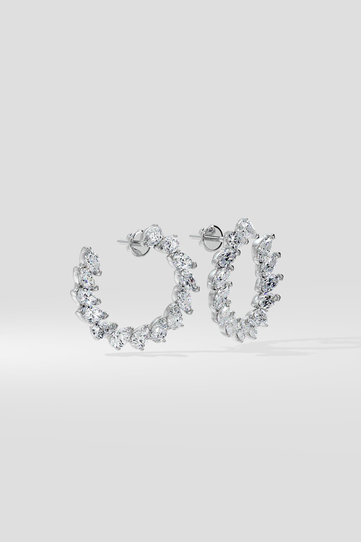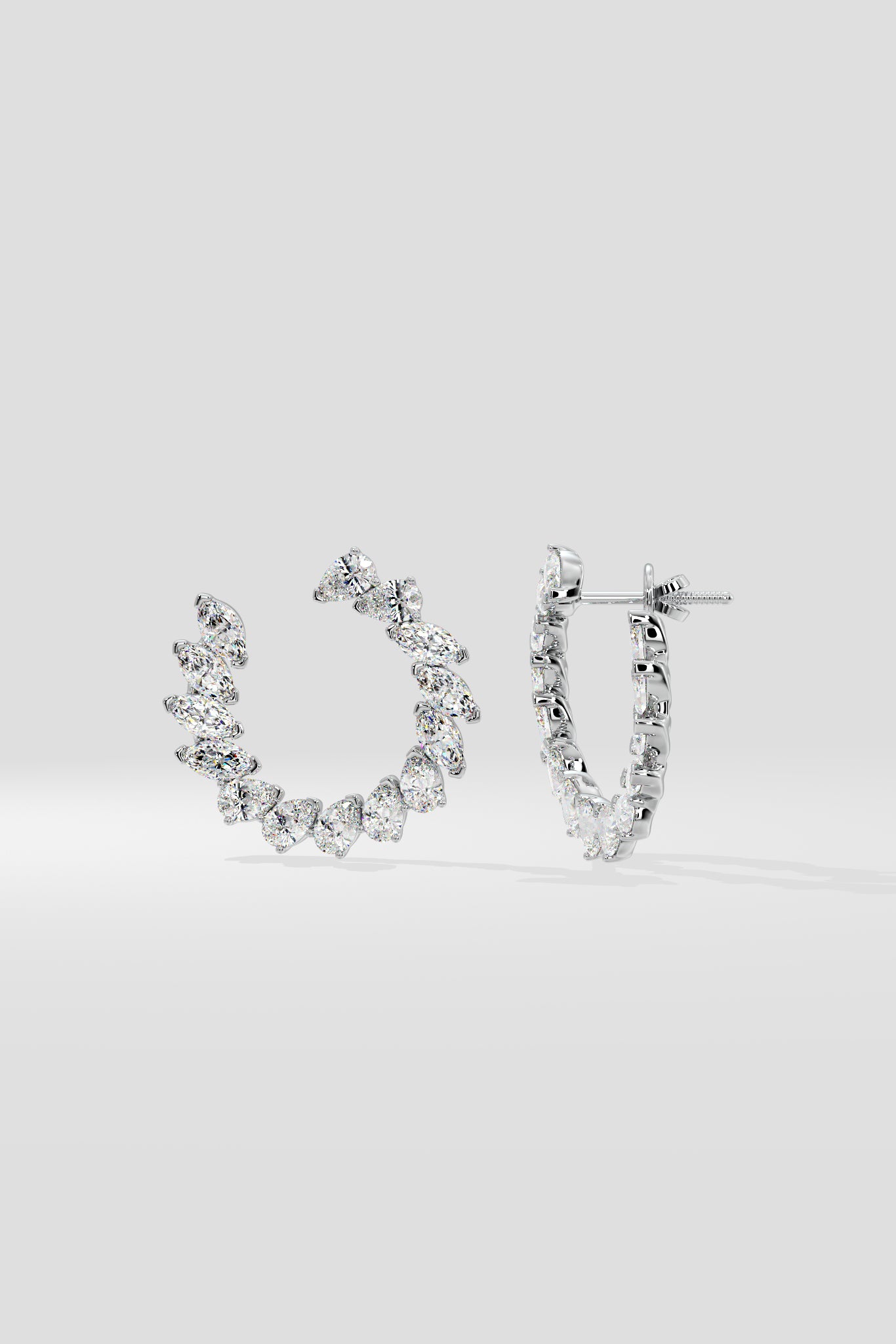 The Shimmer Front Hoops are a stunning call to attention; perfectly synchronised Marquise and Pear diamonds in 1/4 ct size combine seamlessly to make this stunner unmissable. The Illuminate front hoops are a modern twist on the classic hoops, the intent is to allow maximum diamond exposure along with unprecendented attention.