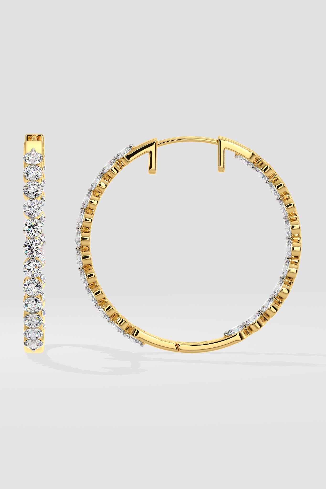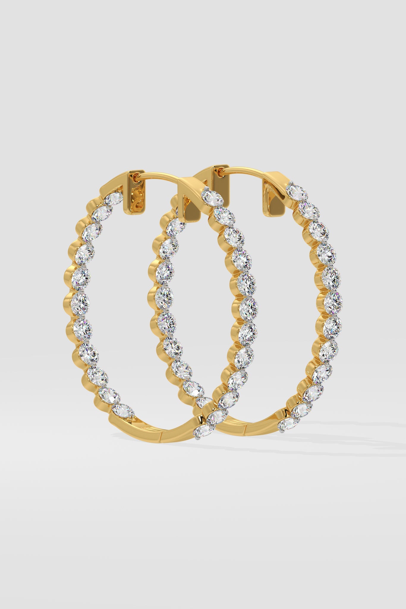 The classic Inside-Out Hoops is a must have for all hoop lovers as they bring to light the opulence of diamonds inside. 0.18 ct diamonds each on the outside and inside, the hoops are around 1.5 inches diameter. These statement earrings are designed to dazzle. Perfect for any night out or glamorous party.