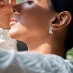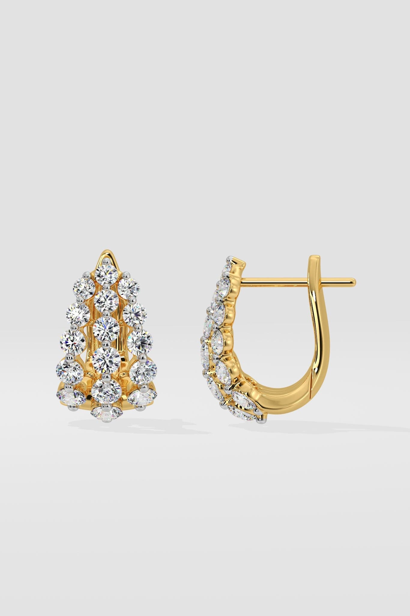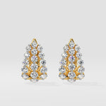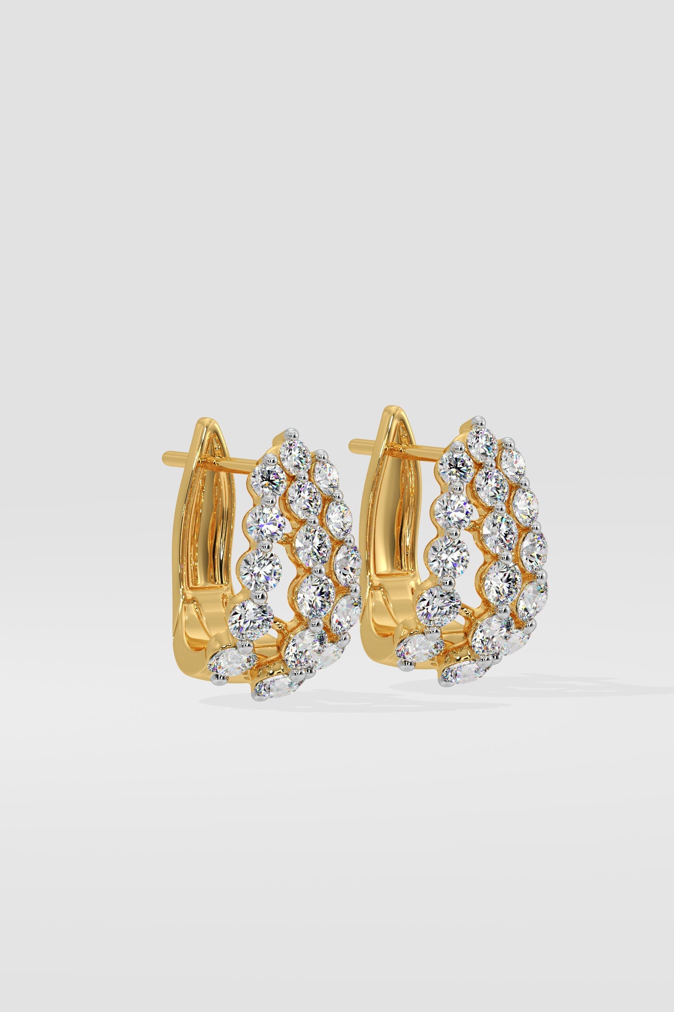 The flume earrings are triple row graduating diamonds in 0.07 ct to 0.10 ct each. A popular silhouette which sits beautifully as a huggie earring, complete with the back clasp. These are solid gold and diamond everyday classics.