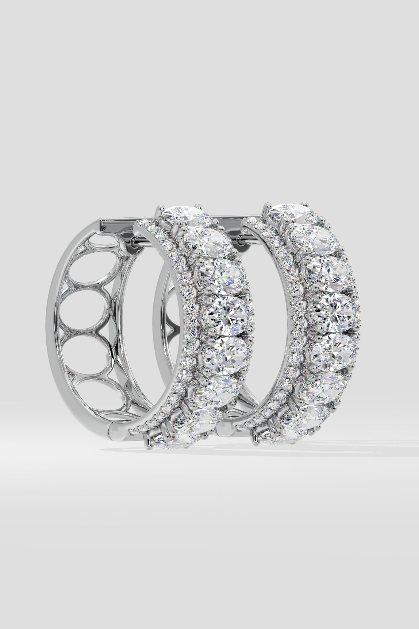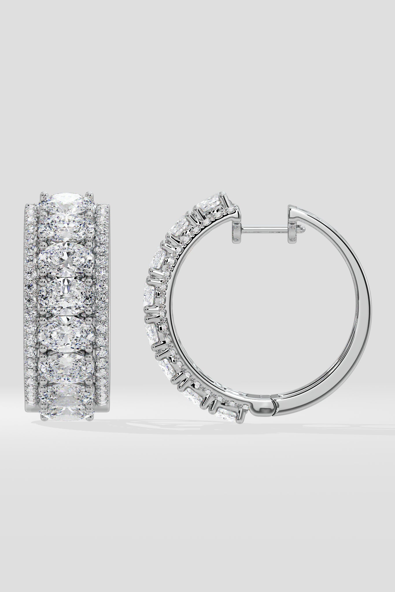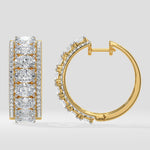 Vibrant hoops featuring 0.50 Ct oval diamonds each, accented on both sides with a delicate line of diamonds, adding a refined sparkle to every turn.