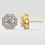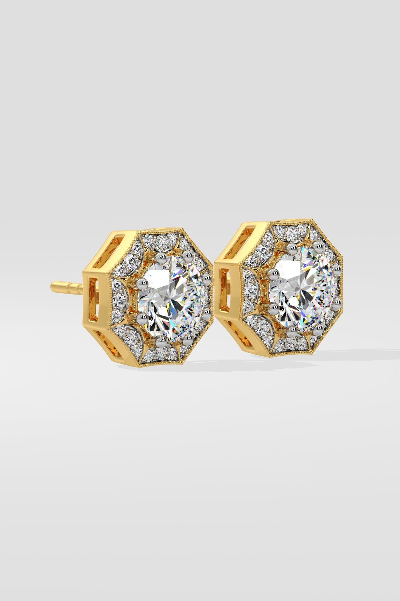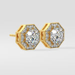 The Octa Halo Earrings feature 0.70 ct solitaire center diamonds embraced by a chic octagonal halo. Effortlessly everyday work or casual wear with the just the right size of diamonds.
