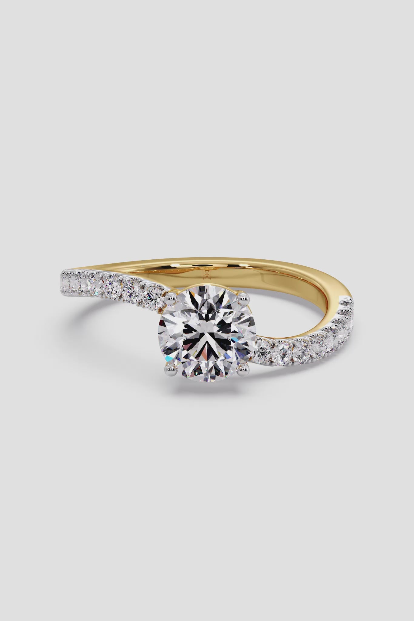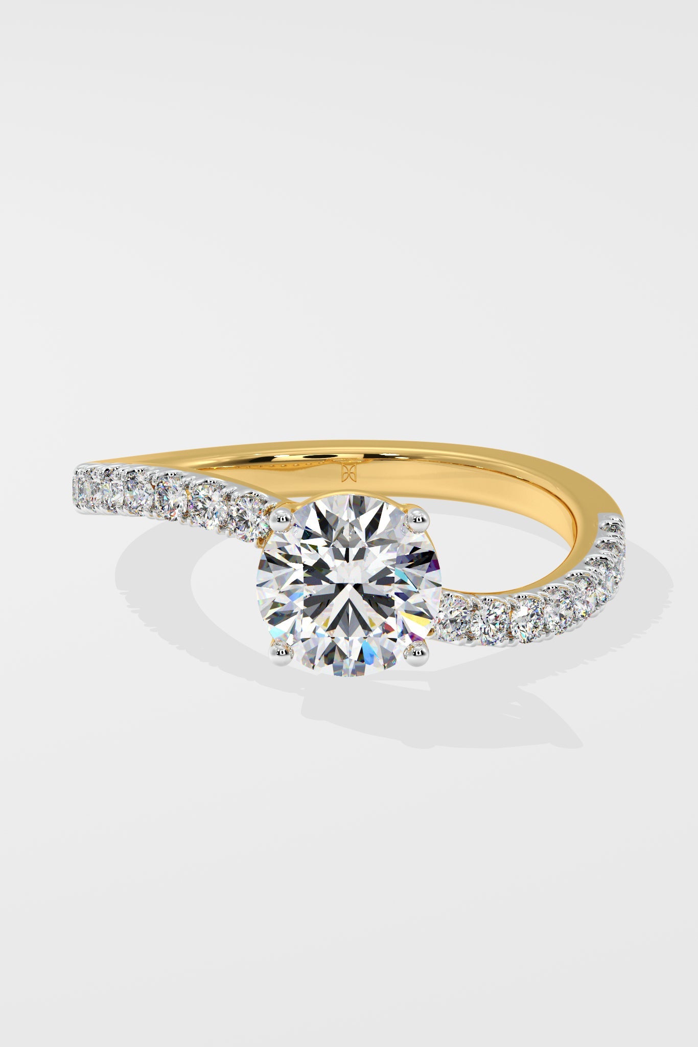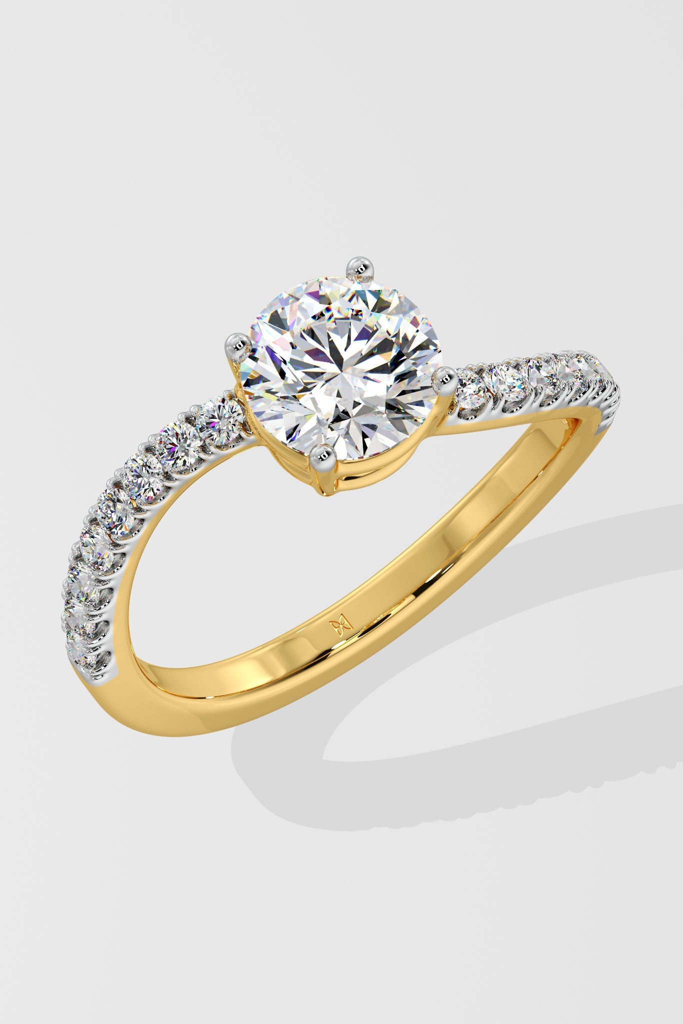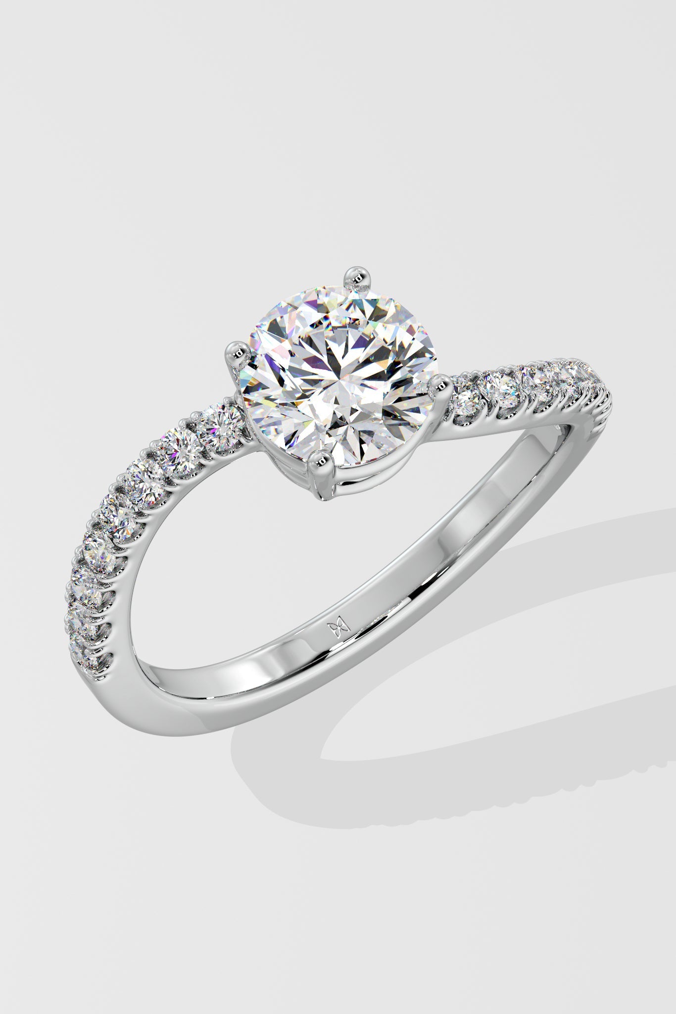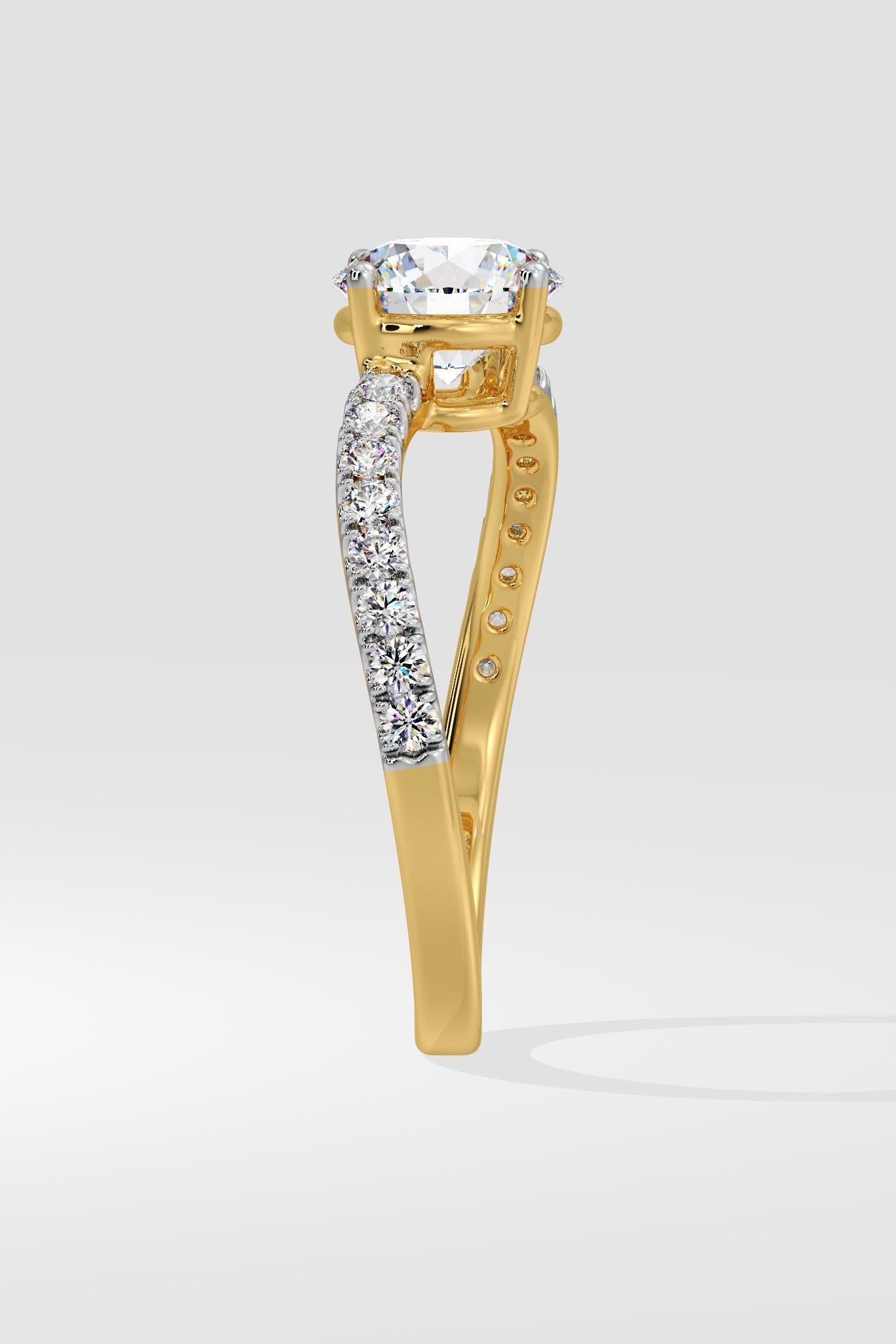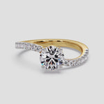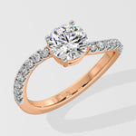 The Twisted ring has a 1 Ct Round center stone with a unique twisted shank on the side, giving it an elegant & unique look.