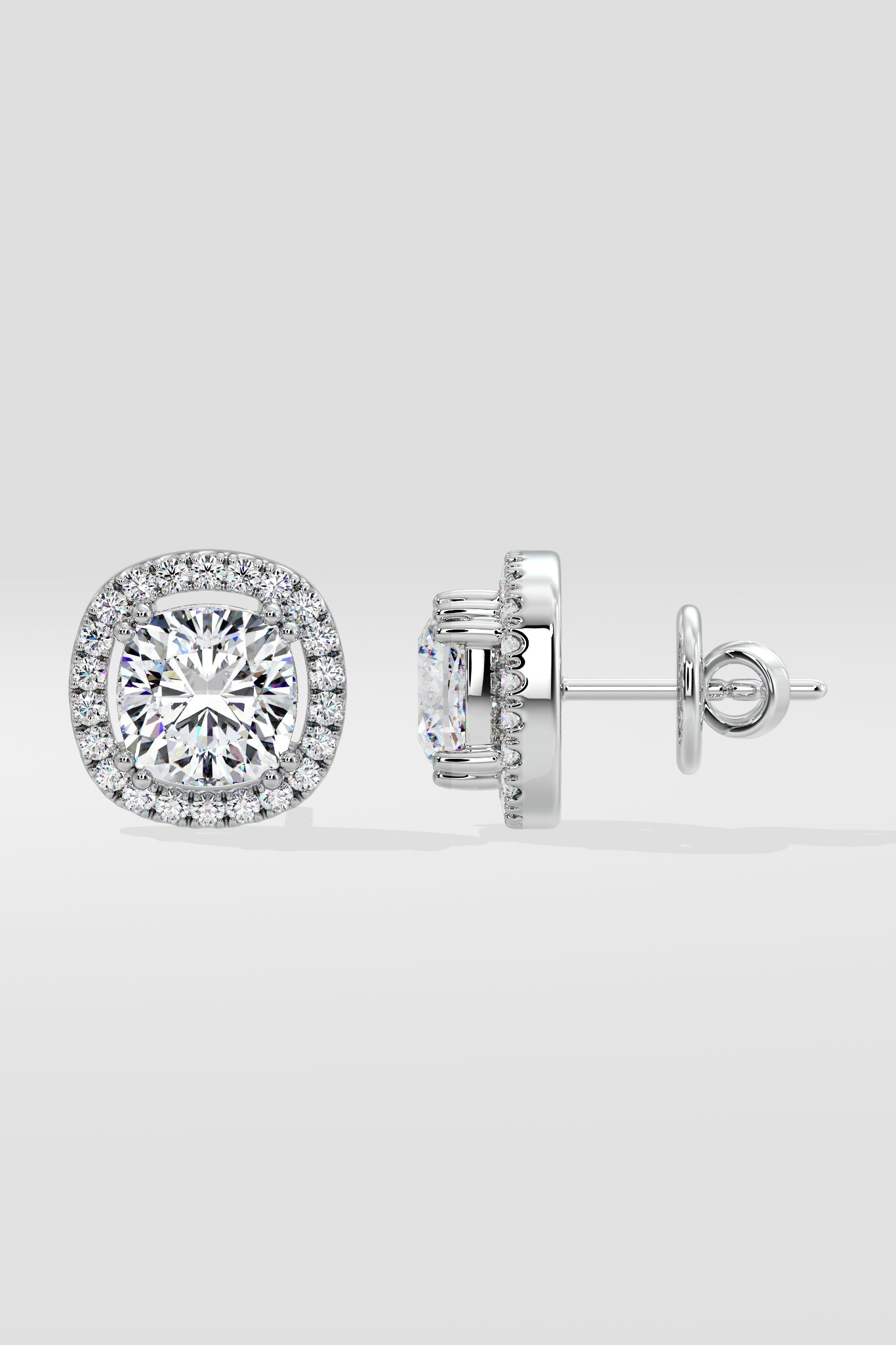 2 Ct Cushion-Cut Halo Earrings