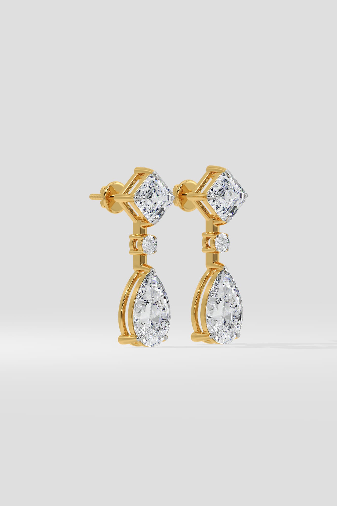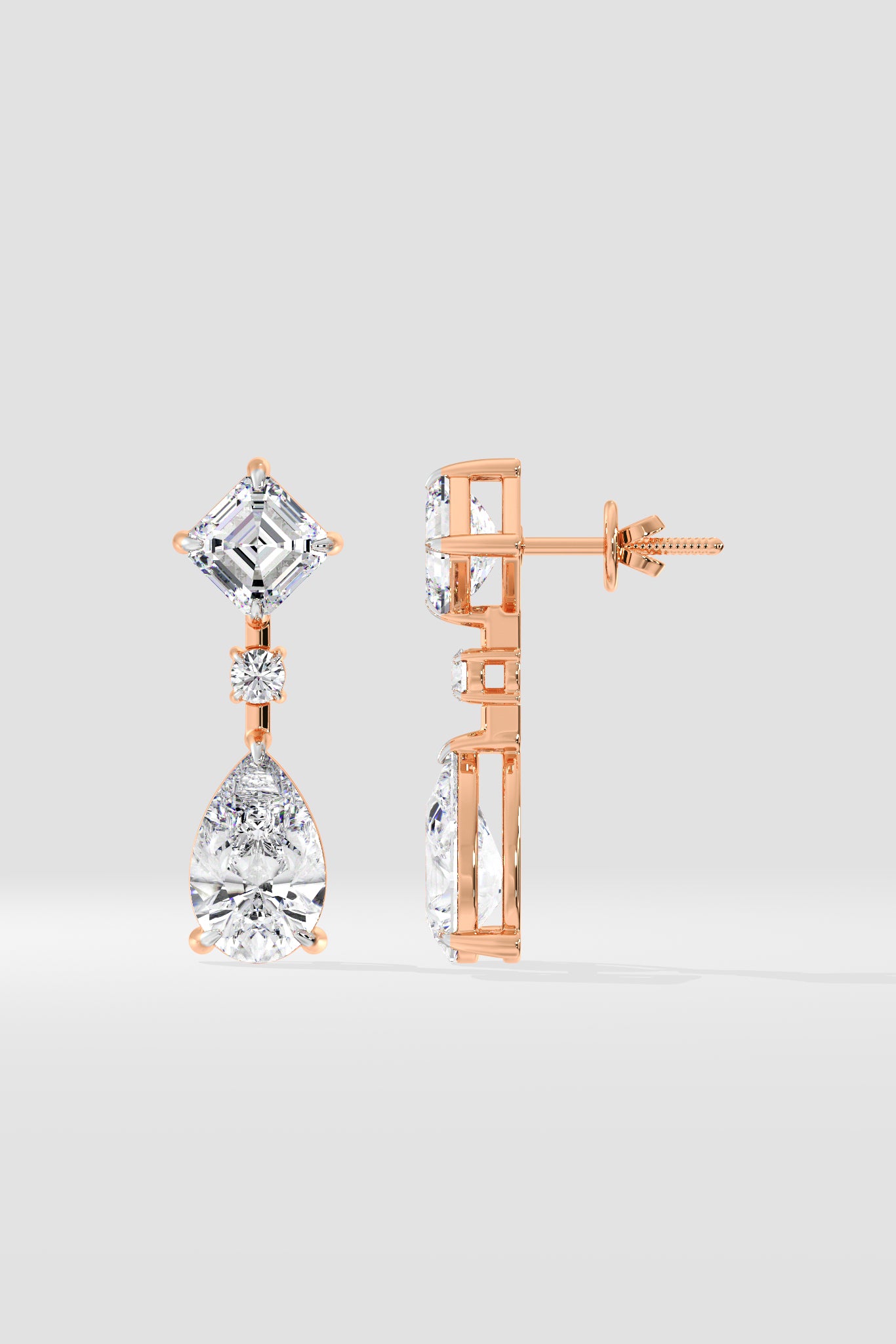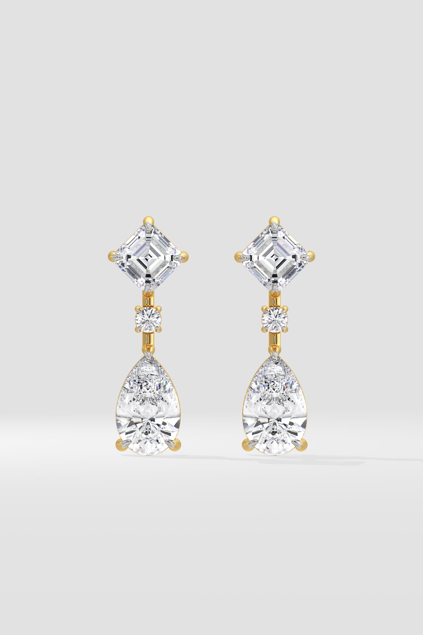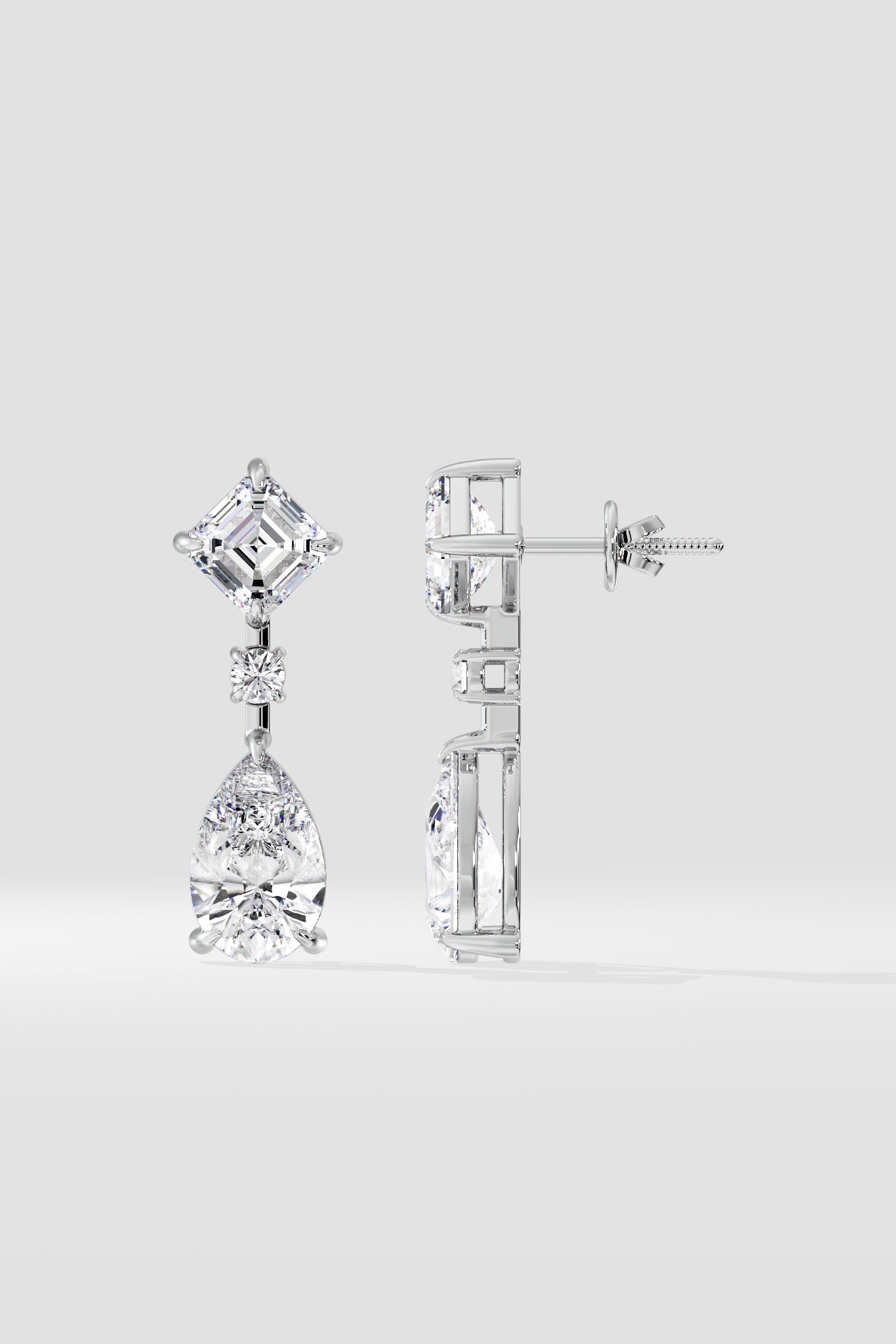 The Jardin Drops are where geometry meets grace. An Asscher cut diamond crowns the earring, with a 1.5 Ct Pear drop below. Together, they emit a harmony of structure and sparkle - a look that feels timeless, magnetic, and entirely yours.