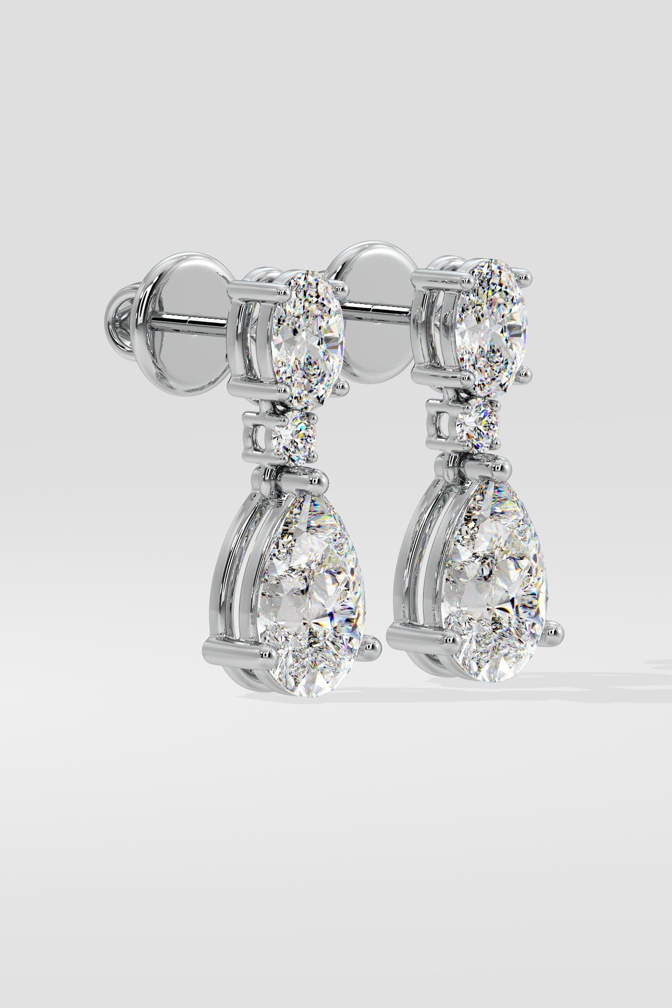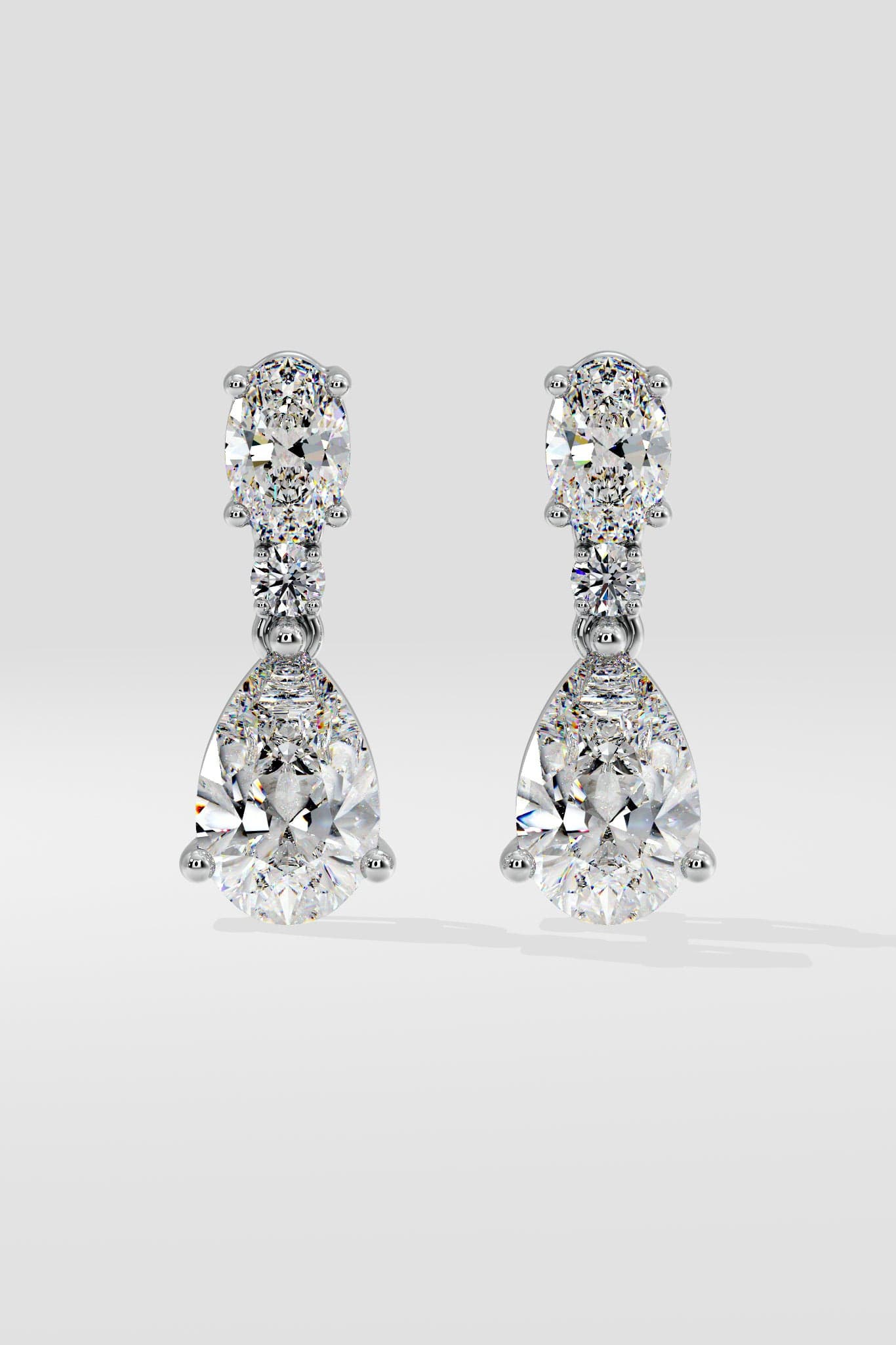 These Solitaire Drop Earrings feature a magnificent 1 ct centre diamond, elegantly suspended from a 0.30 ct oval. Elegant and sophisticated, pear dangles are a must have.