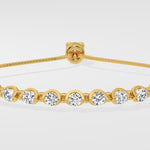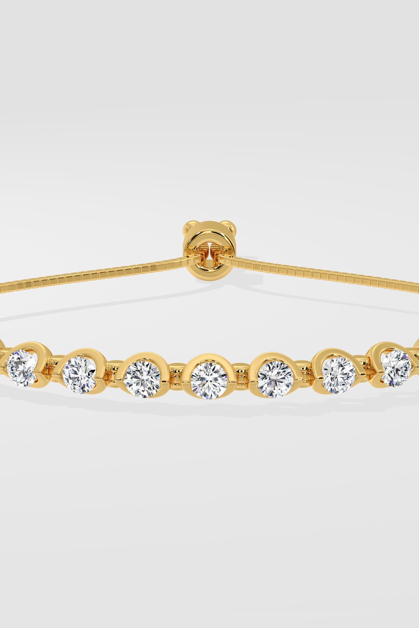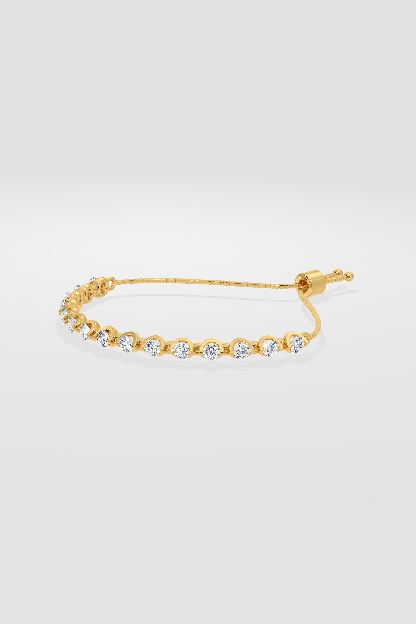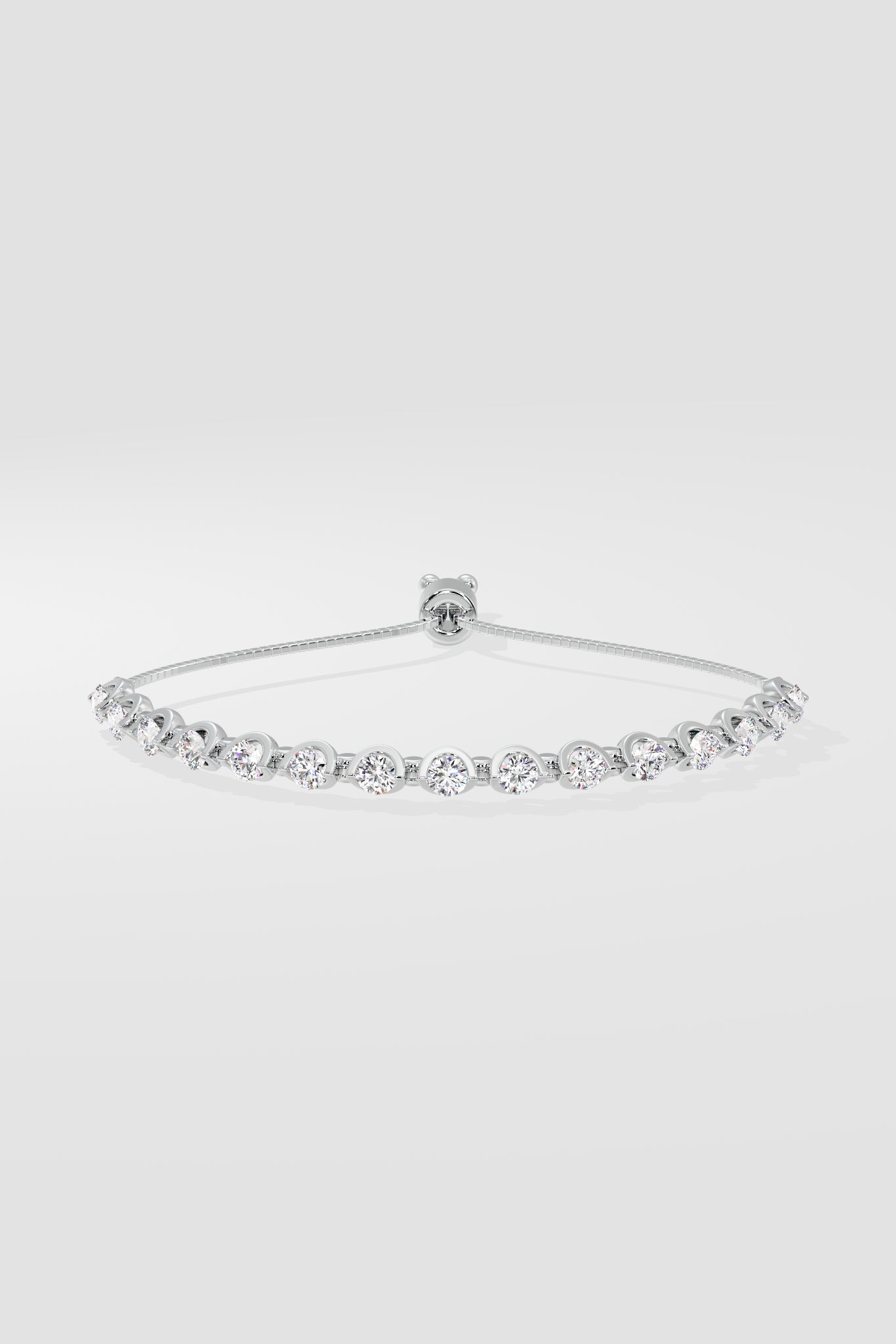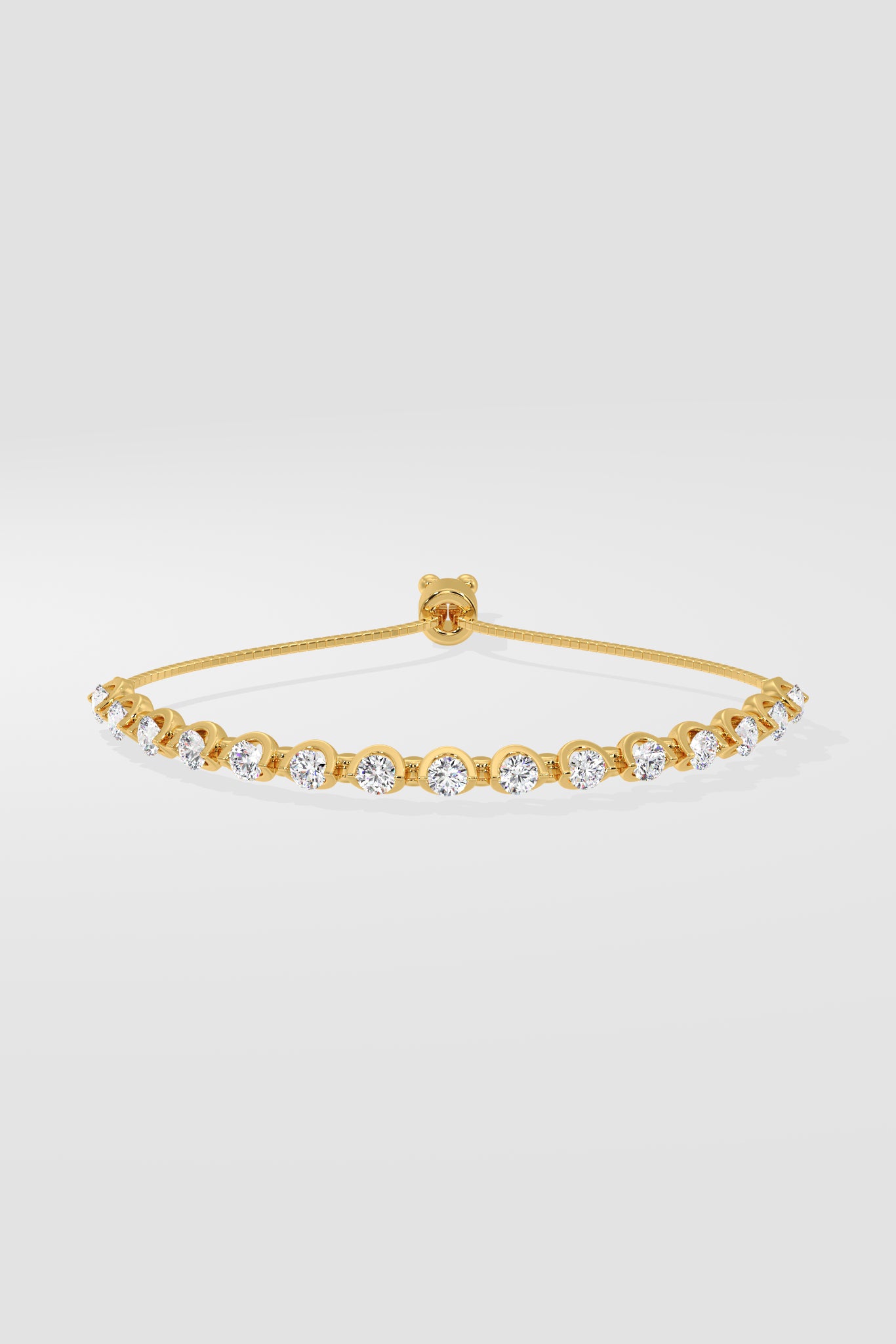 A modern take on the classic bracelet, this piece is defined by 0.12 Ct Half-Bezel set Diamonds, arranged in a seamless row. The bolo-style slider allows for a personalised fit, while the clean setting keeps the focus on form and brilliance. Designed for effortless wear, day or night.