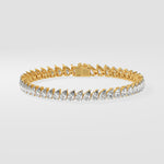 The Pear Tennis features 0.20 ct each diamonds set in a sleek angular design. Each pear diamond is precision-cut to maximize fire and scintillation, resulting in a hypnotic display of light that dances with your every gesture.