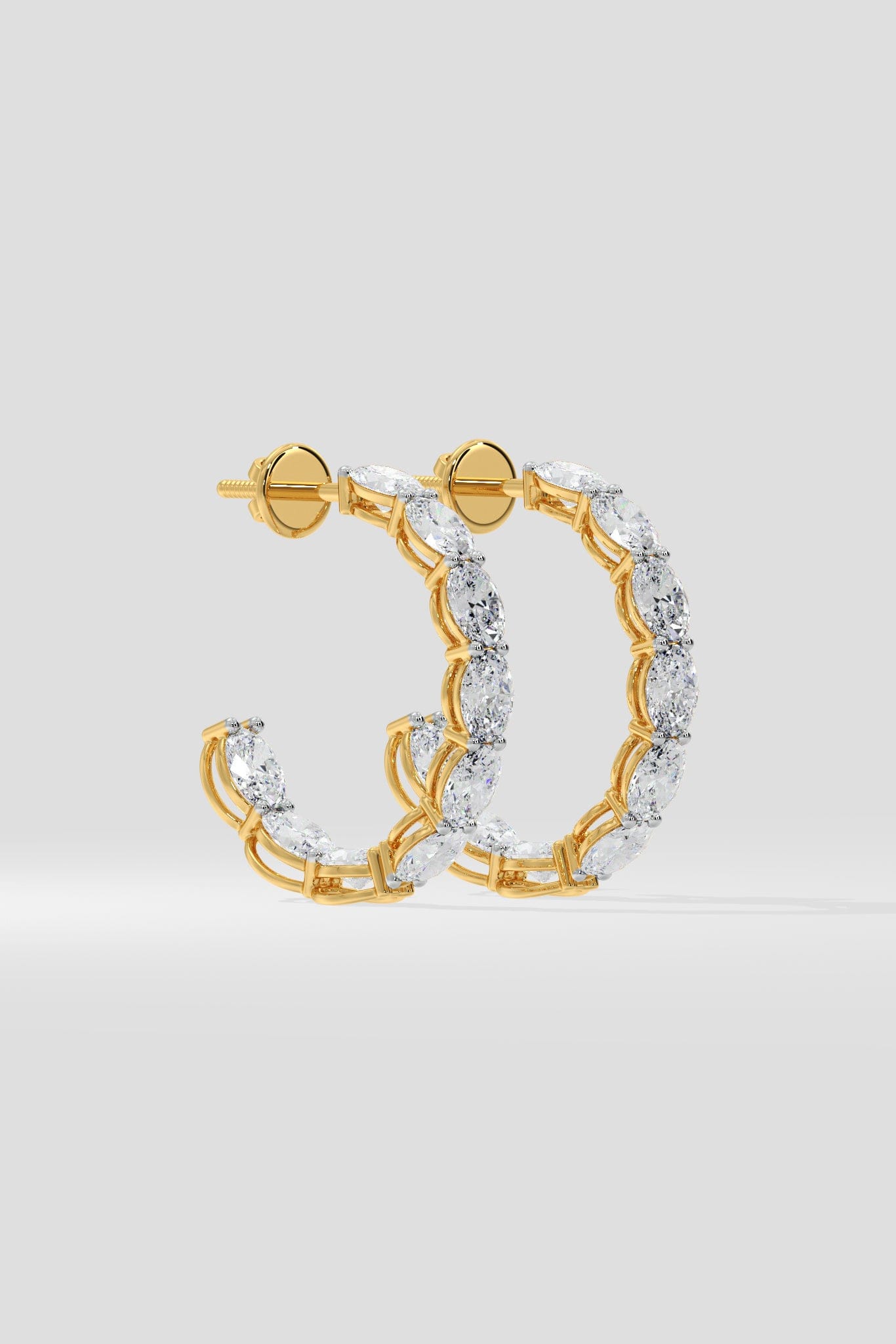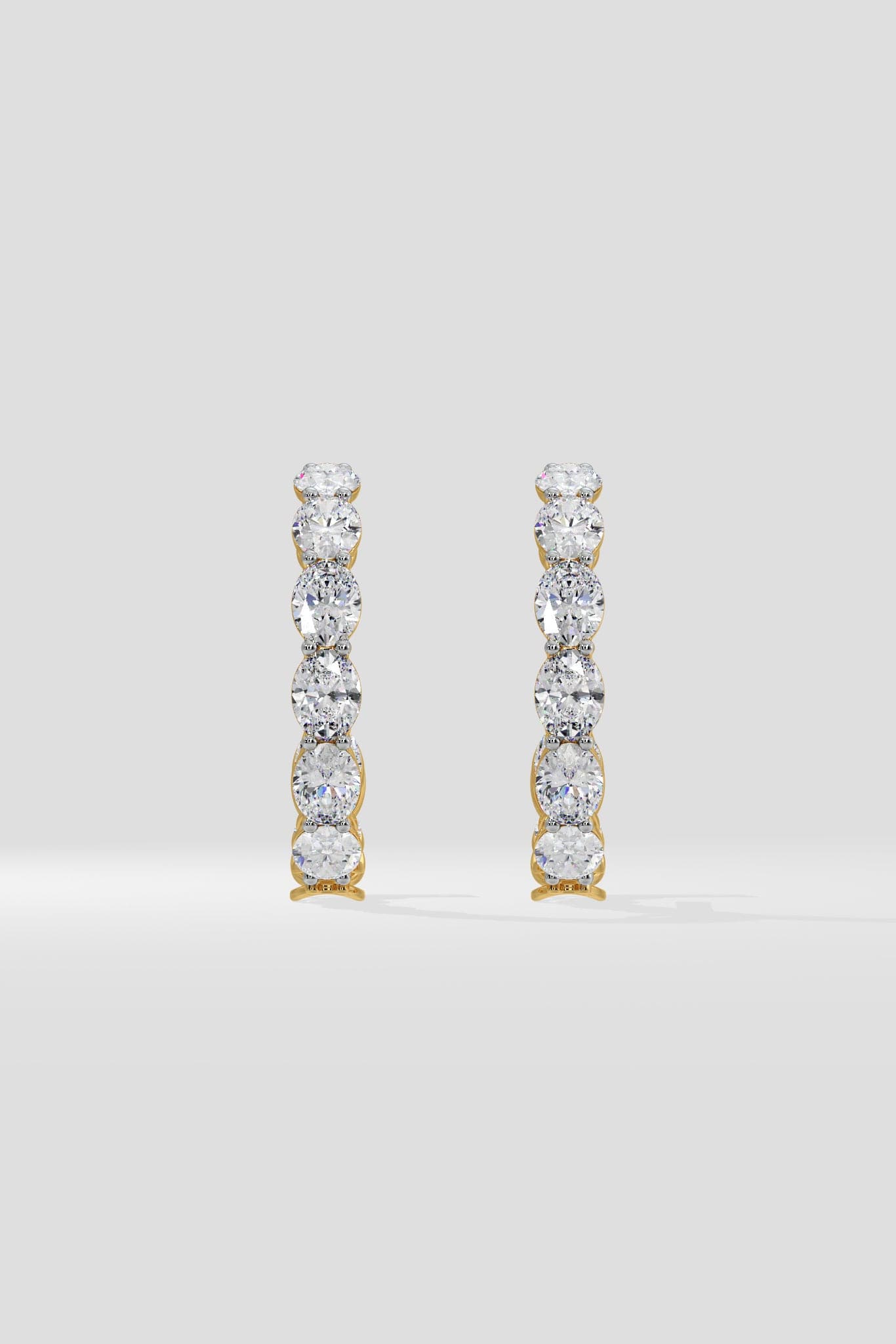 The Oval Inside-Out Hoops are designed for seamless day-to-evening wear. Each hoop features 0.50 Ct Oval Diamonds, set vertically for a sleek, elongated look. Diamonds trace both - the outer curve and the inner arc, giving the hoops the signature end-to-end dazzle. A modern staple with a refined, all-day glow.