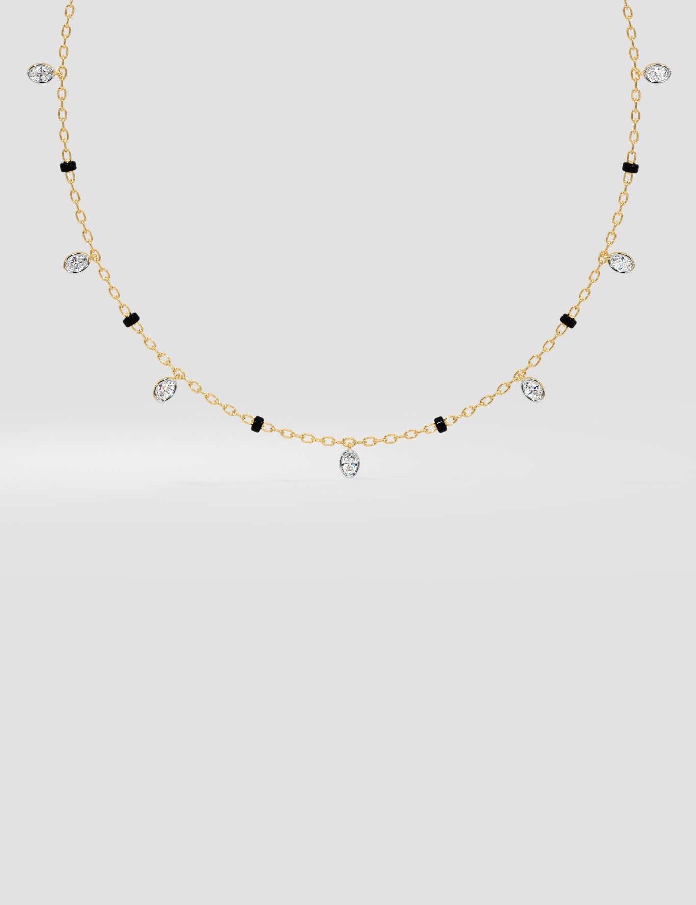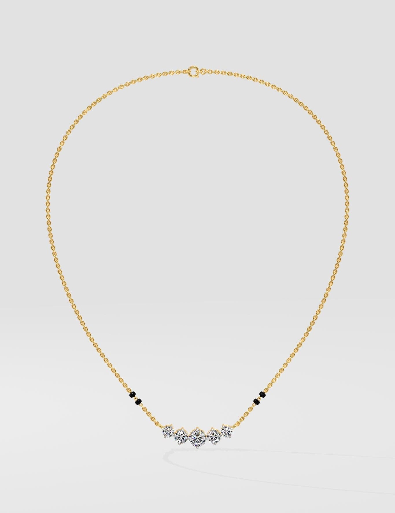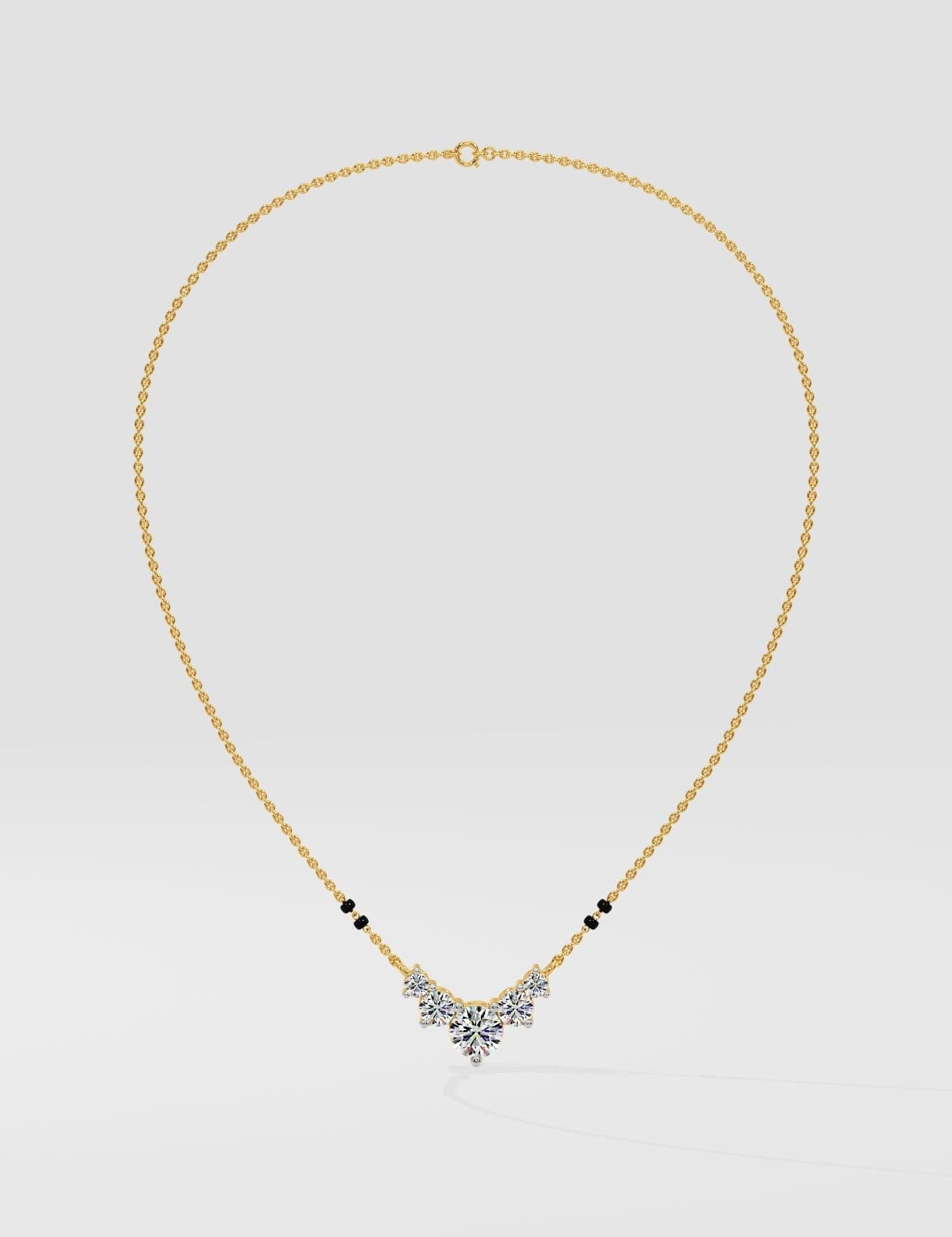 Opting for a lab grown diamond mangalsutra from us means choosing sustainability and ethical practices. Our lab-grown diamonds are environmentally friendly, reducing the ecological impact compared to traditional diamond mining. Every diamond in our mangalsutras is free from the ethical concerns associated with diamond mining, such as environmental degradation and unfair labor practices.