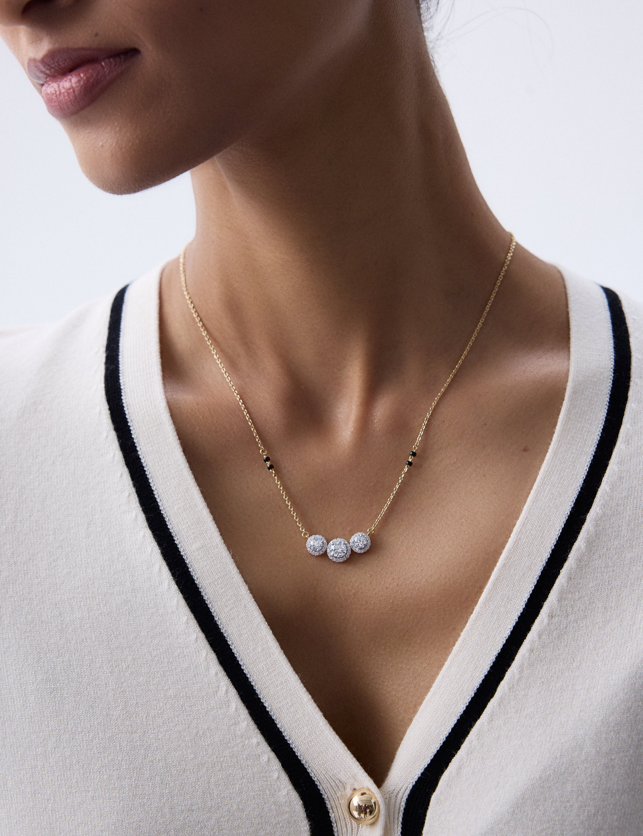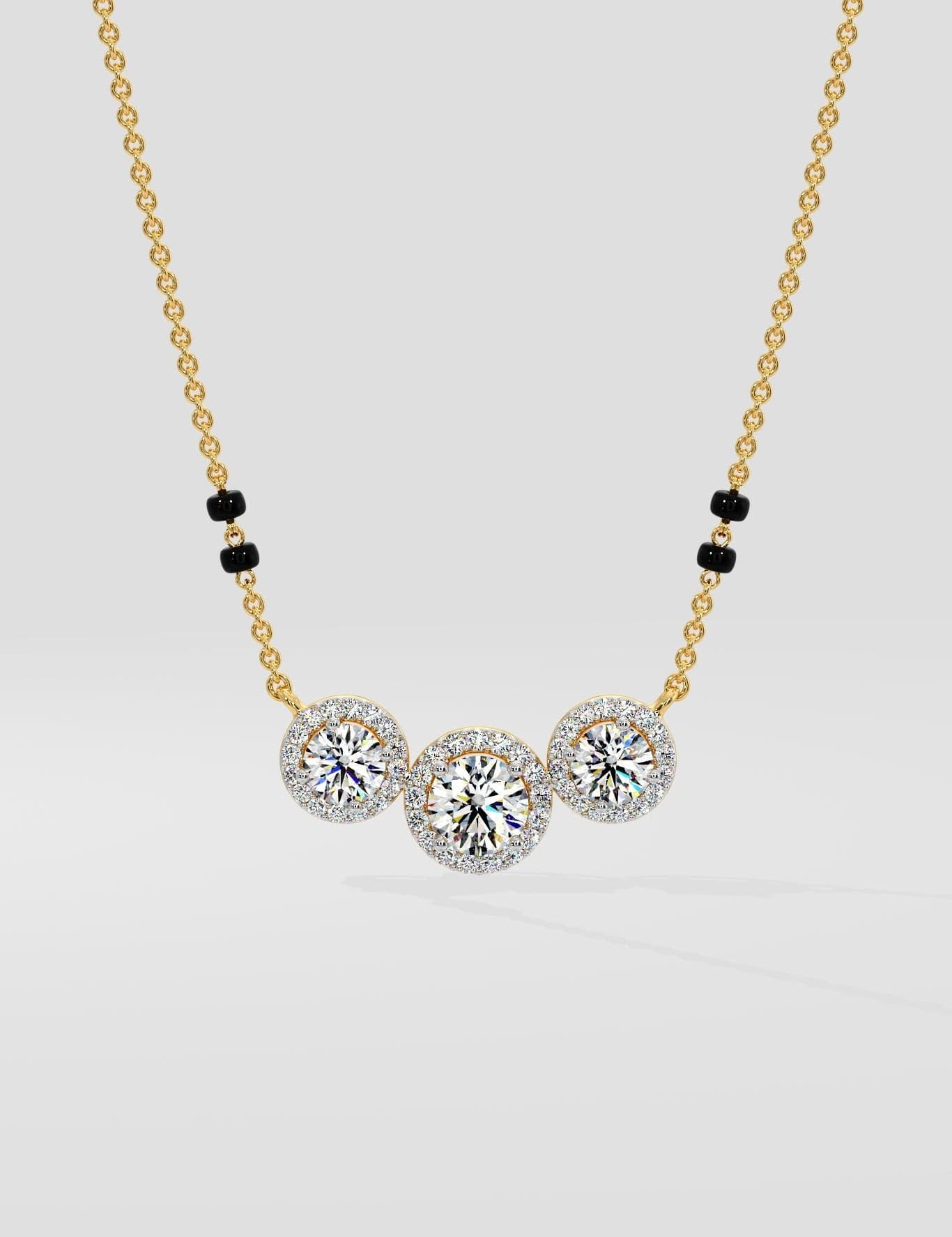 Our collection features a variety of designs that honor traditional aesthetics while incorporating modern elements. Whether you prefer intricate patterns or minimalist elegance, we have a diamond mangalsutra that will resonate with your personal style. From classic motifs inspired by cultural heritage to sleek, contemporary designs, our collection caters to the evolving tastes of today’s brides.