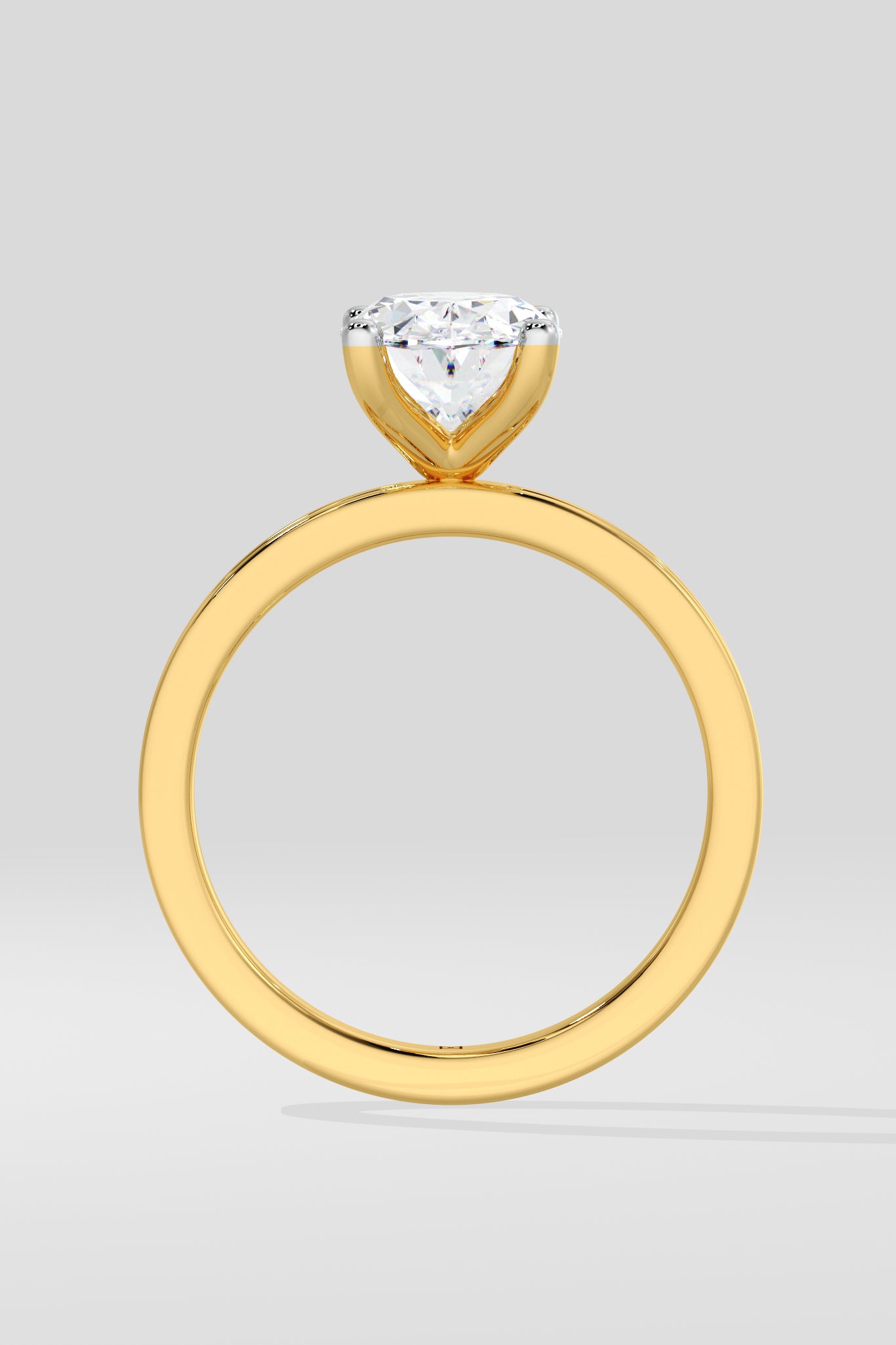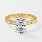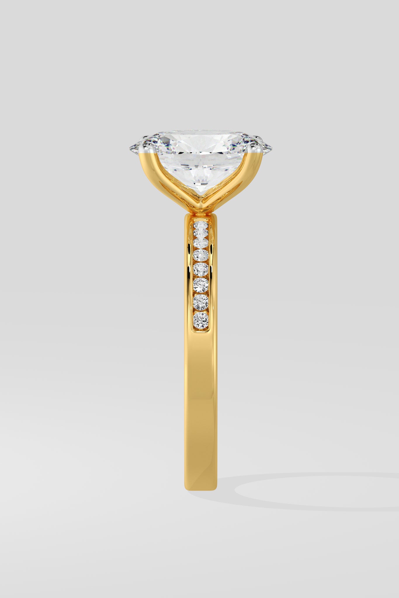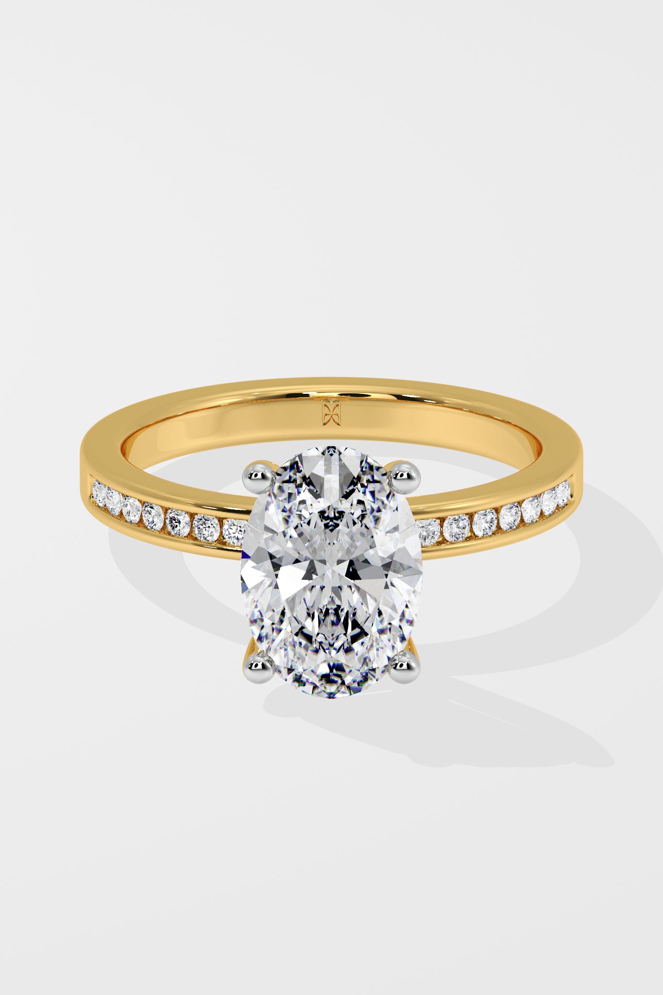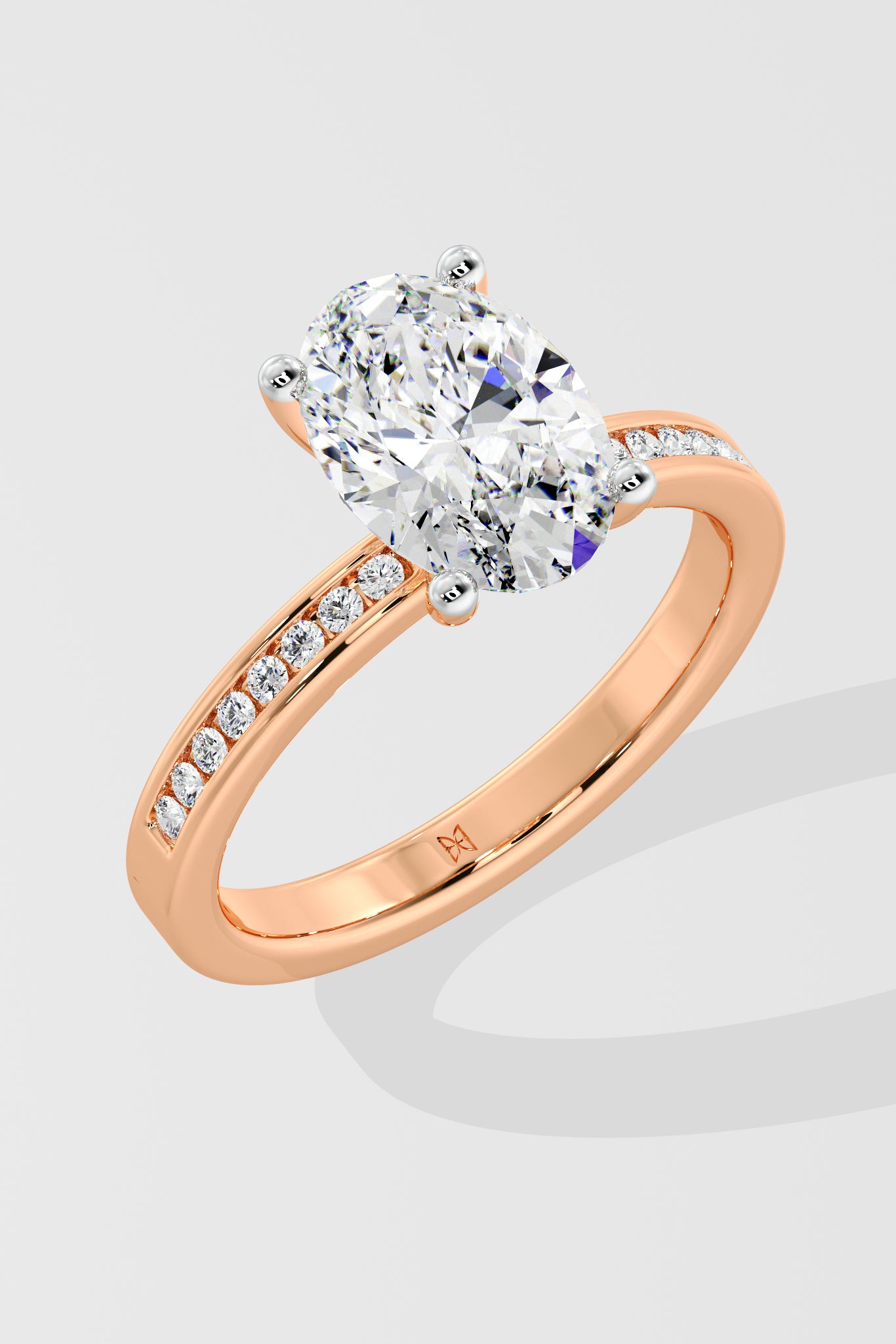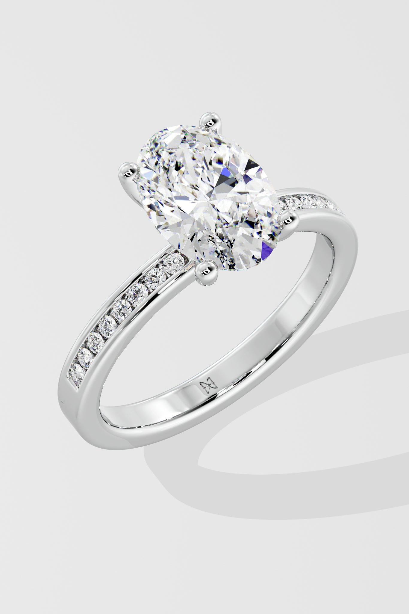 This Ring features a 1.50 Ct Oval centre Diamond, elevated by a sleek channel-set band. The clean setting brings focus and depth without excess. Refined, enduring, and beautifully assured, it is a piece designed to stand the test of time.