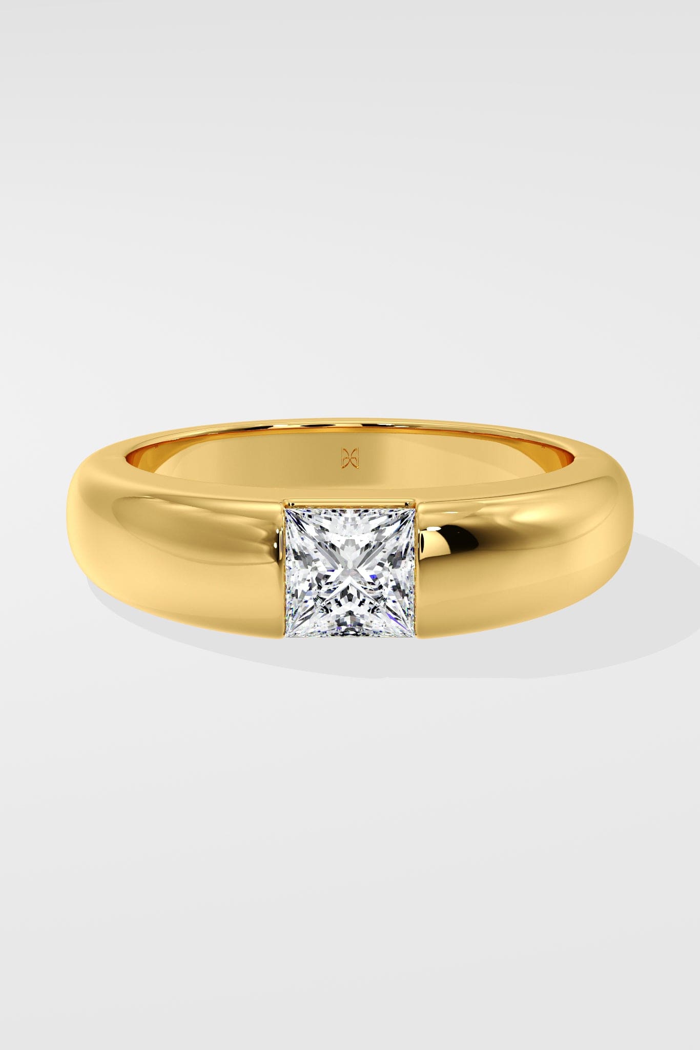 The 1 Ct Princess Dome Diamond Ring showcases a timeless princess-cut diamond seamlessly set into a smooth, high-polish gold band. Its bold yet minimalist dome design embodies refined strength, making it an understated statement piece that radiates elegance and confidence.