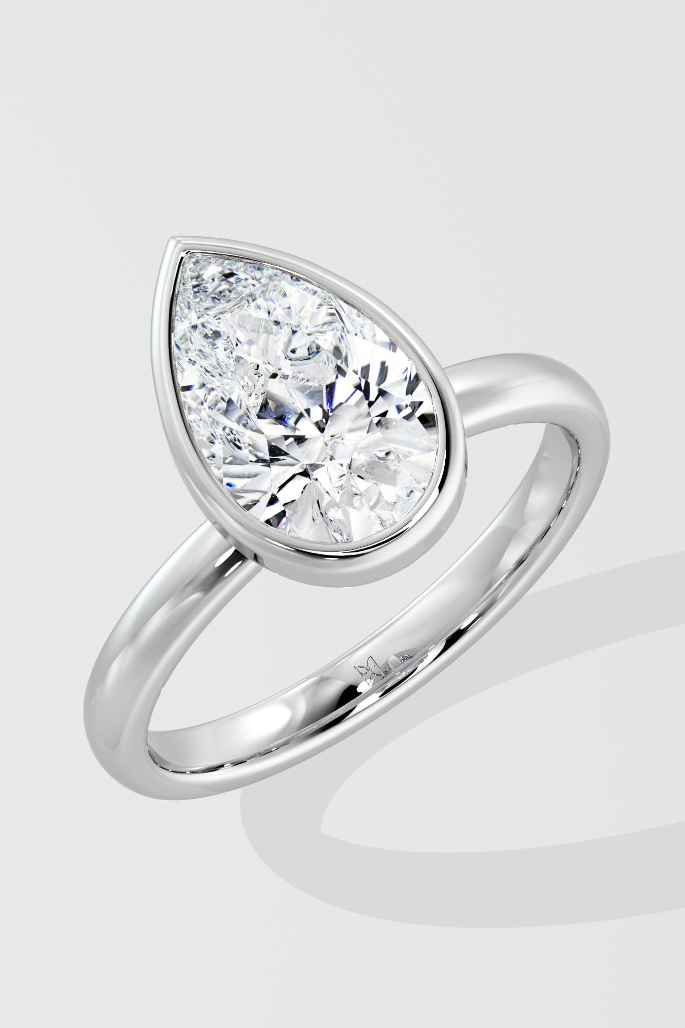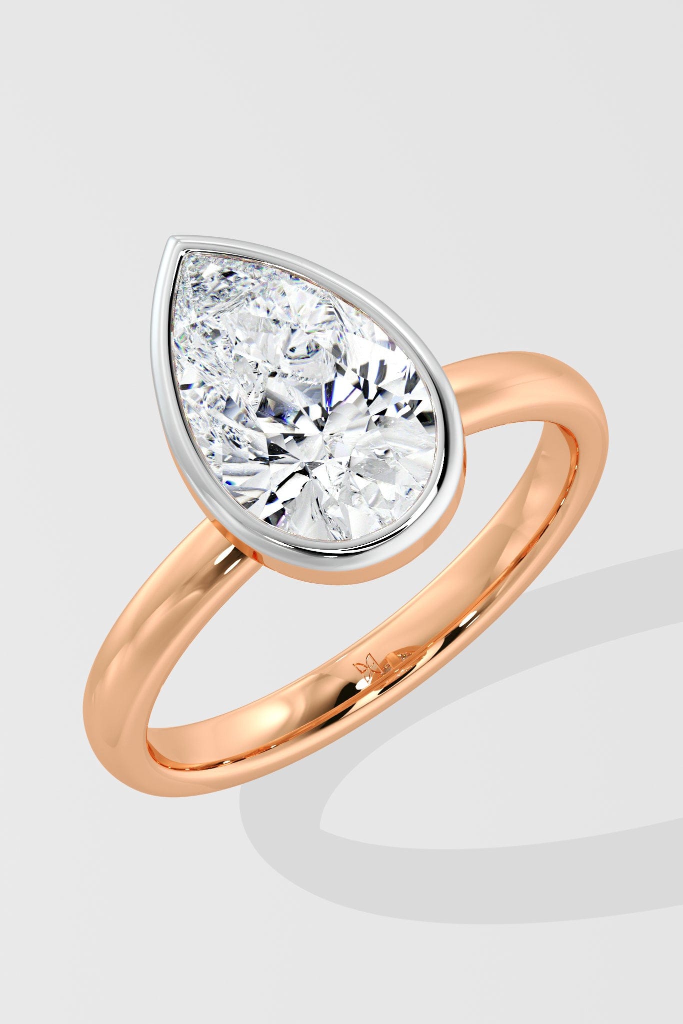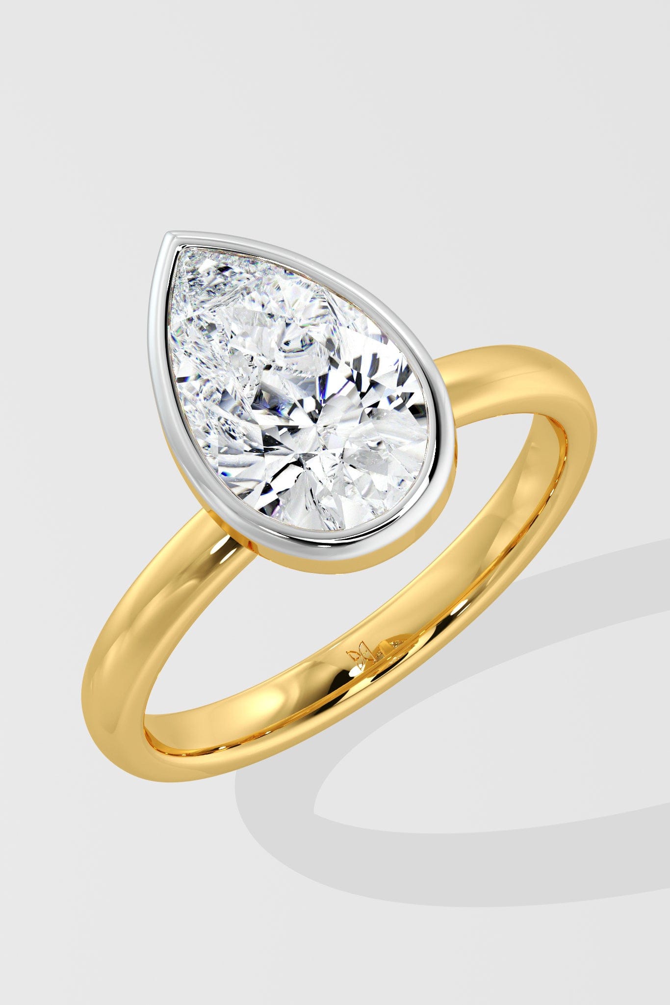 The 2 Ct Pear Bezel Diamond Ring offers a refined balance of style and security. Featuring a striking pear-shaped diamond set in a smooth bezel, it delivers a sleek, modern silhouette while ensuring lasting protection for the stone. Minimalist yet elegant, this piece is designed for everyday sophistication.