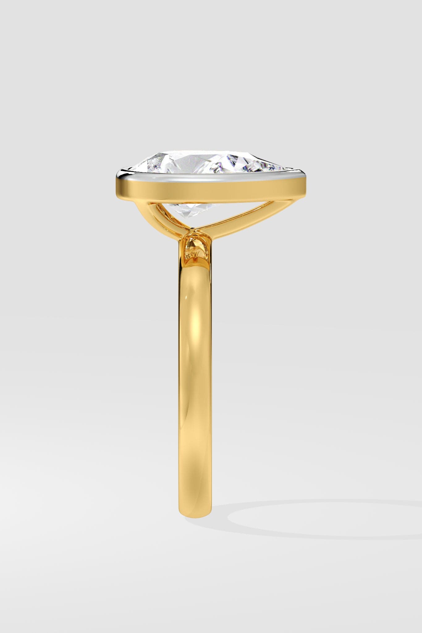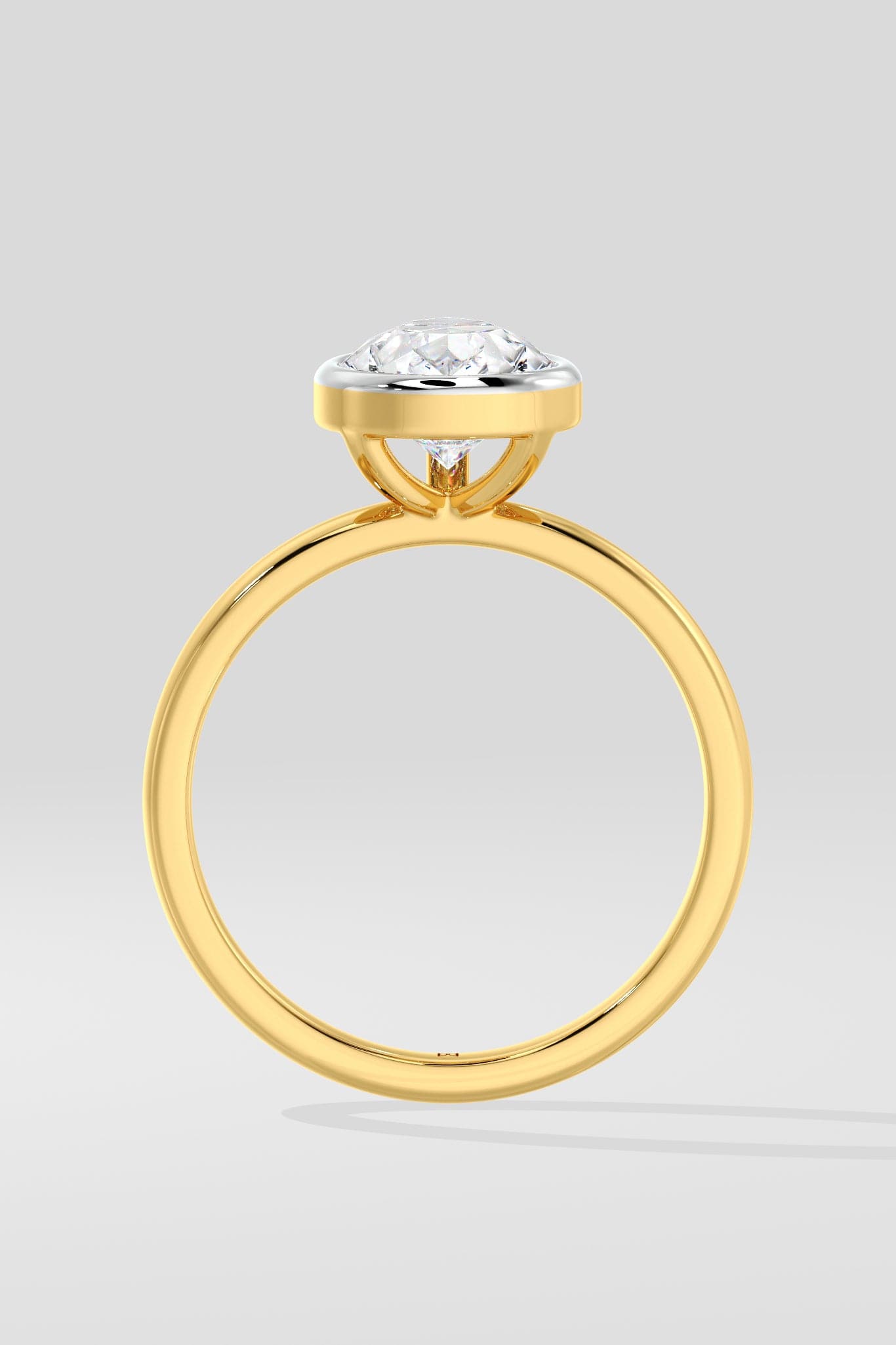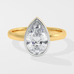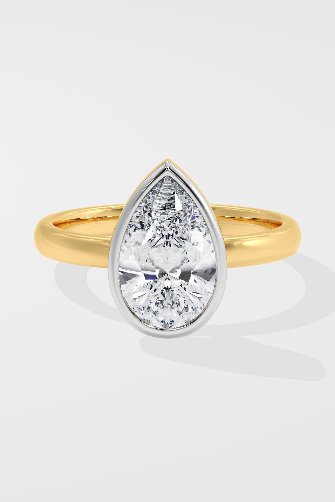 The 2 Ct Pear Bezel Diamond Ring offers a refined balance of style and security. Featuring a striking pear-shaped diamond set in a smooth bezel, it delivers a sleek, modern silhouette while ensuring lasting protection for the stone. Minimalist yet elegant, this piece is designed for everyday sophistication.