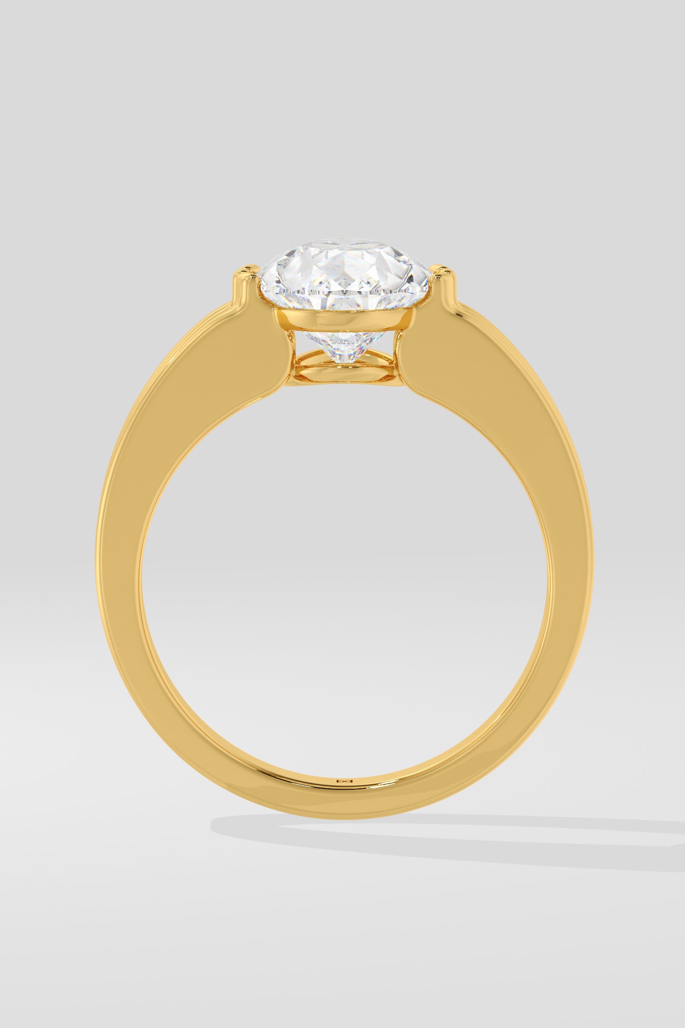 Gold diamond ring on a light grey background