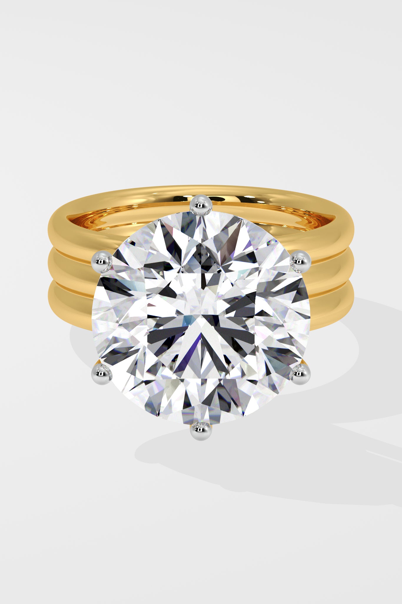 The Empress Ring reigns supreme with its breathtaking 9.5 Ct center Diamond set upon a triple-row gold band. This is statement jewelry at its most magnificent - bold, brilliant, and undeniably regal. Designed for those who command attention and appreciate extraordinary craftsmanship.