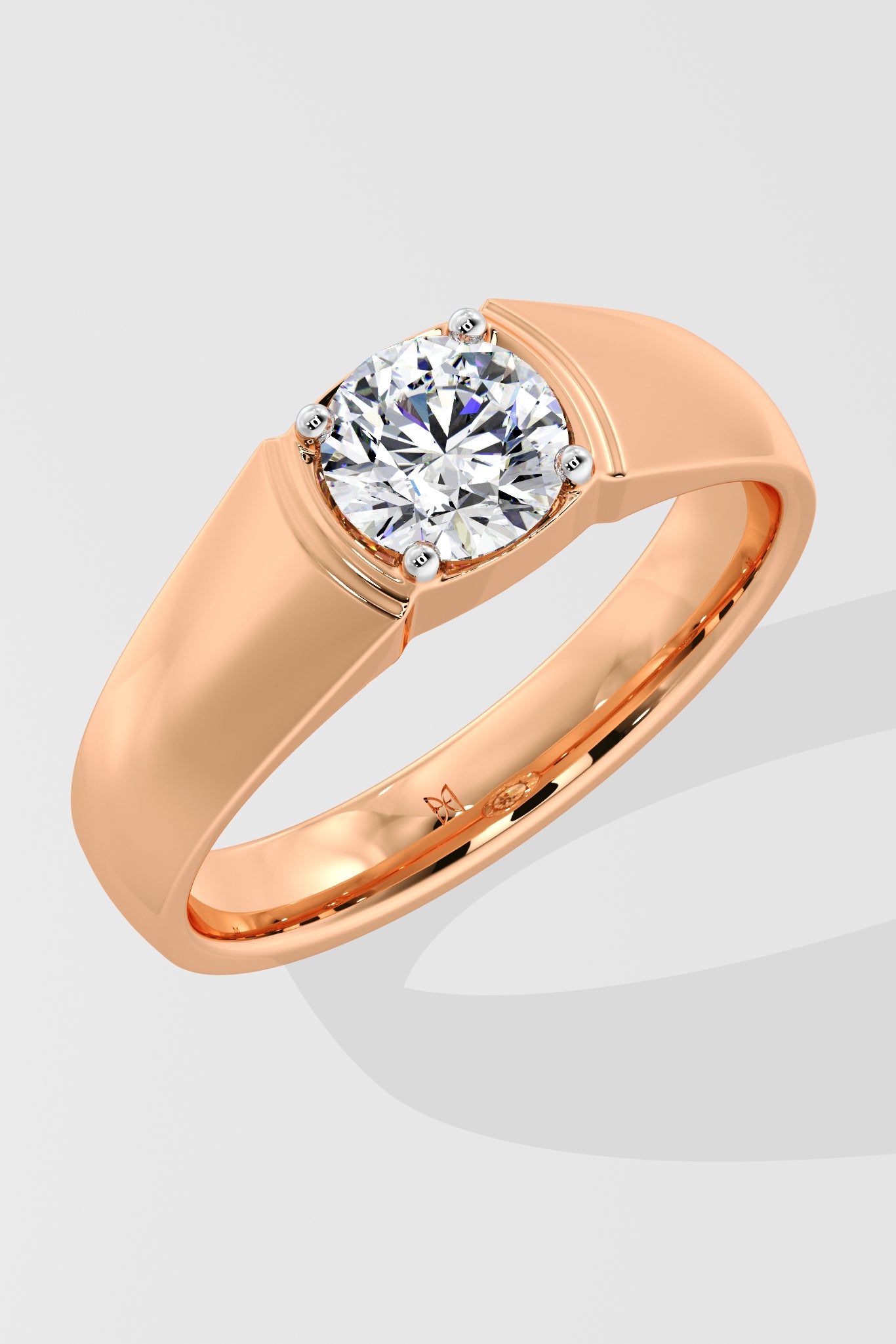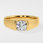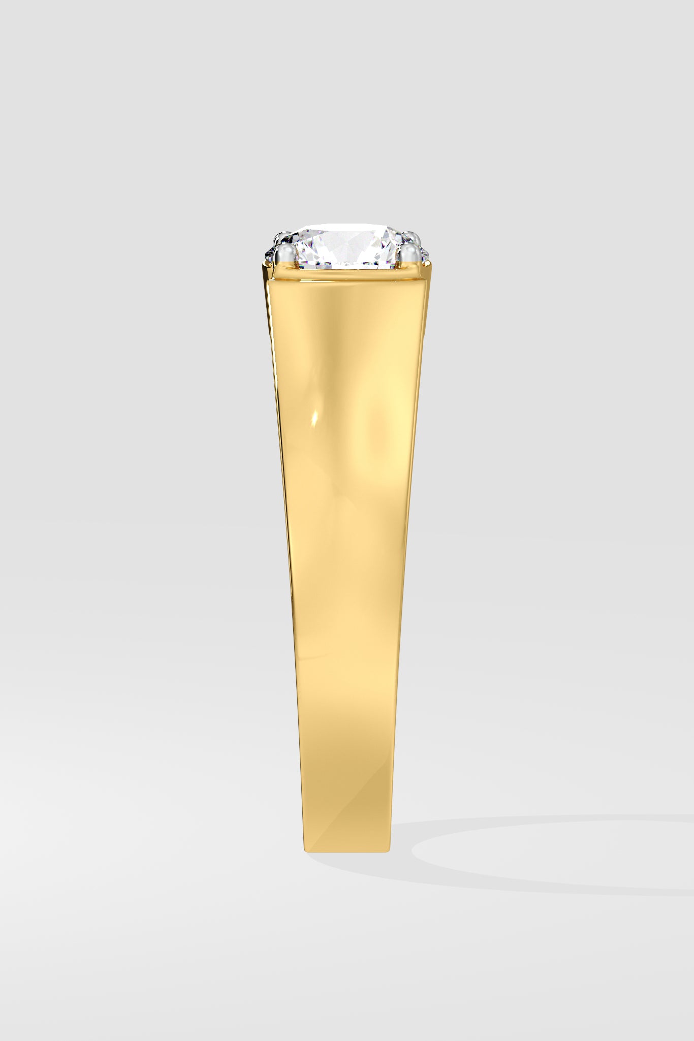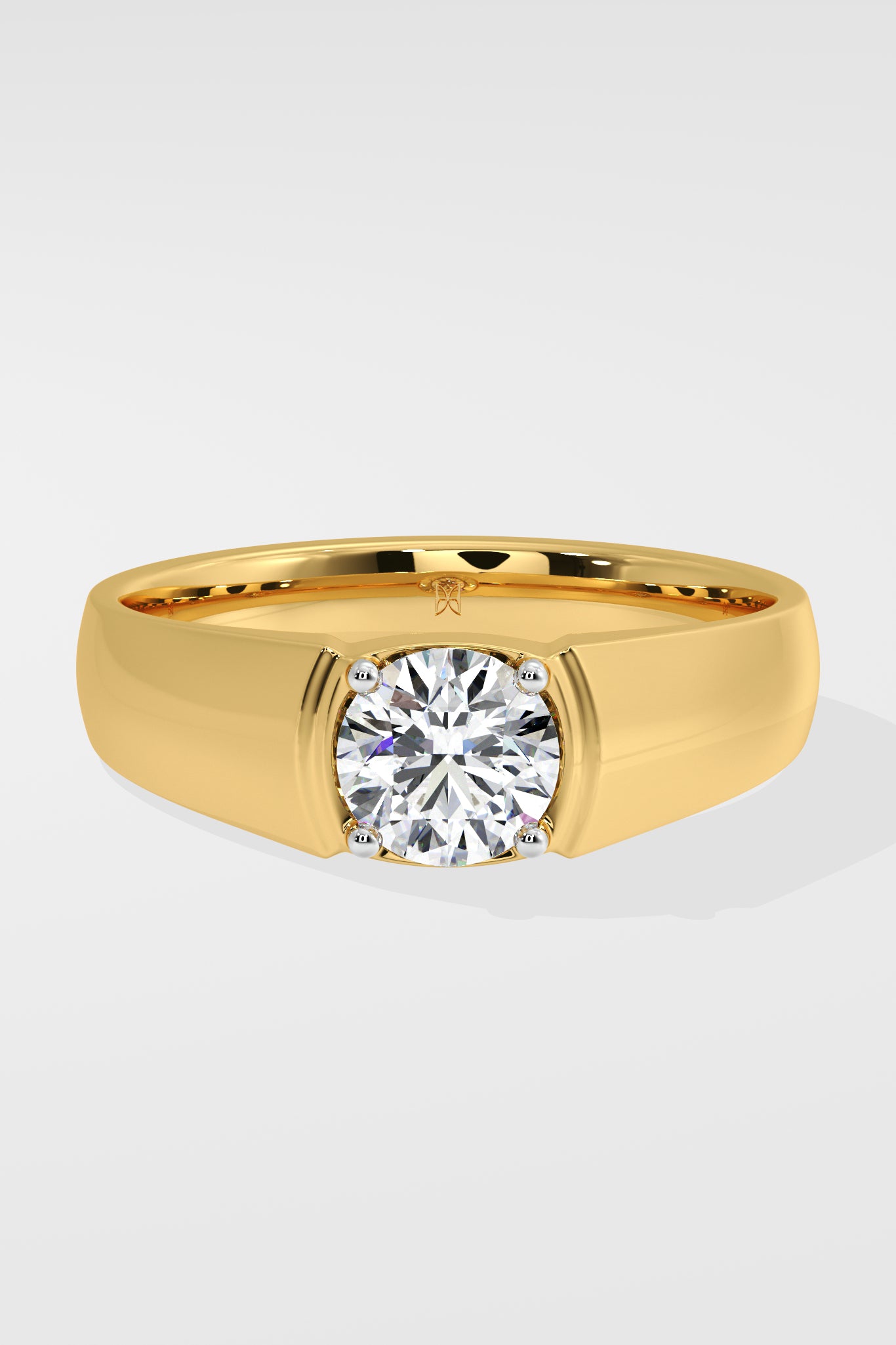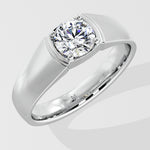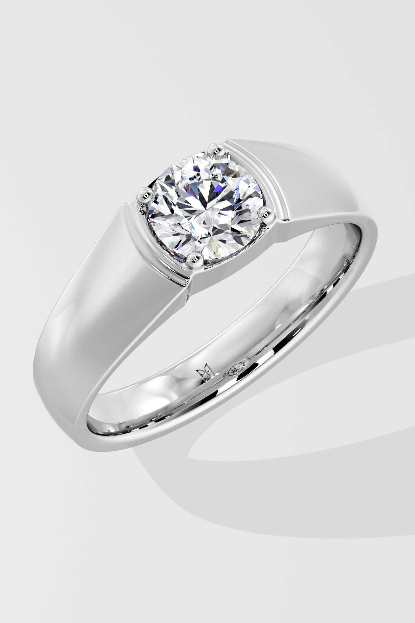 A 1 Ct Round Brilliant Diamond set in a sleek bar-style band. The strong lines of the band highlight the diamond’s fire while maintaining a masculine, contemporary aesthetic.
