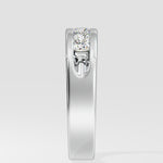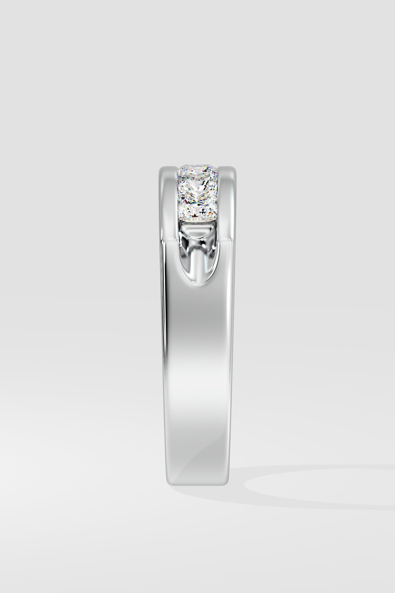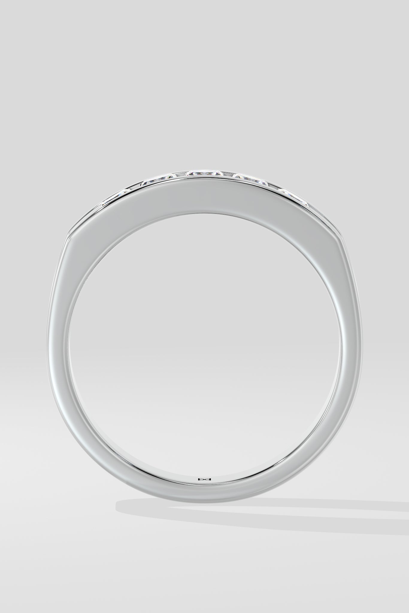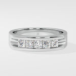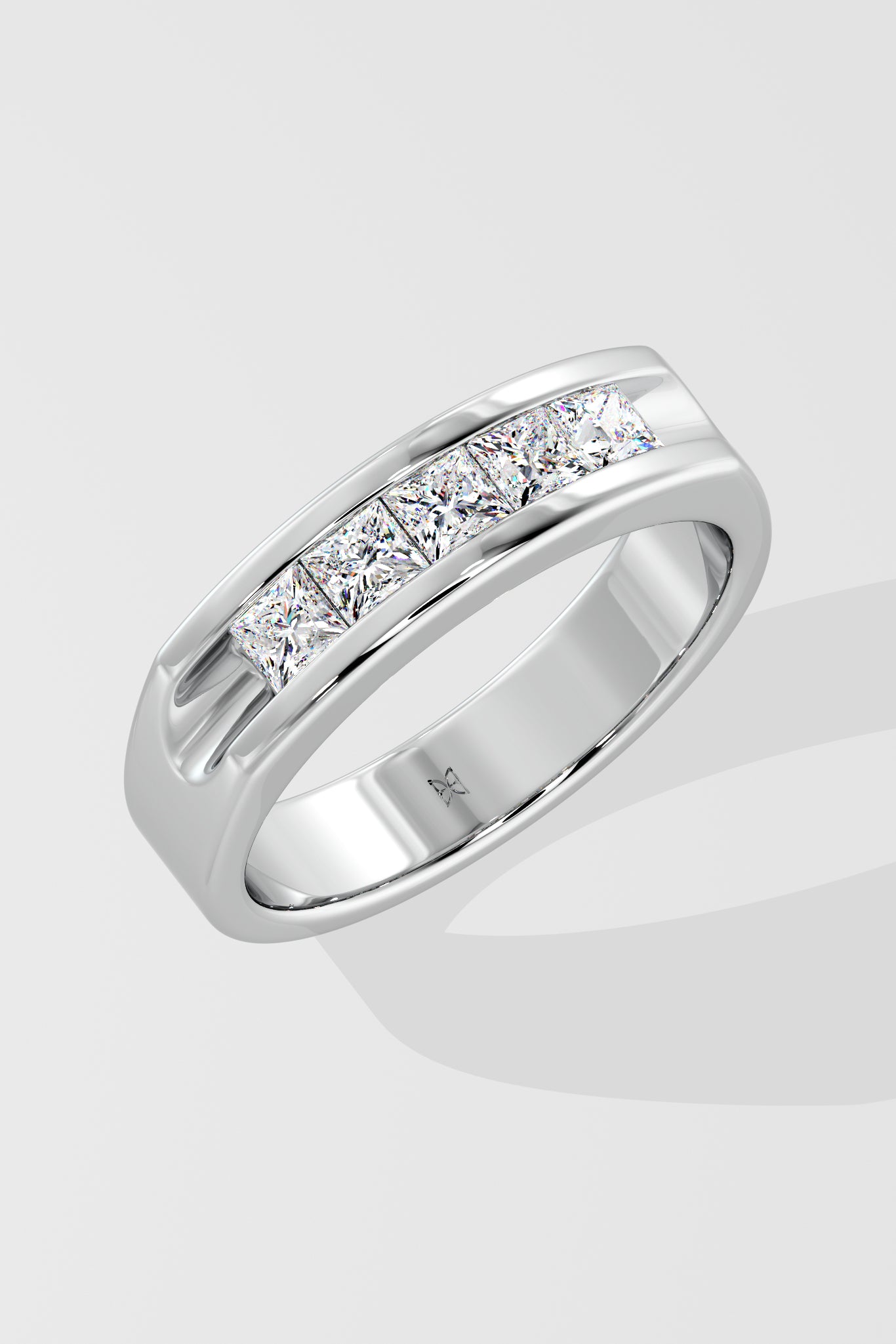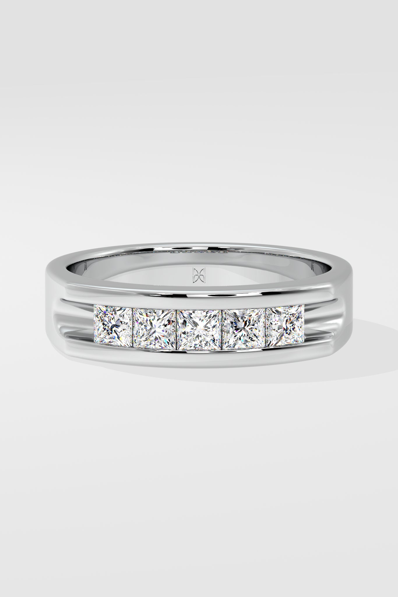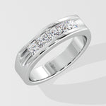 The Celtic band features 0.20-carat princess-cut diamonds in a sleek channel setting. Crafted in polished white gold, its bold yet refined design symbolizes strength and elegance. It is a perfect modern classic.