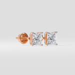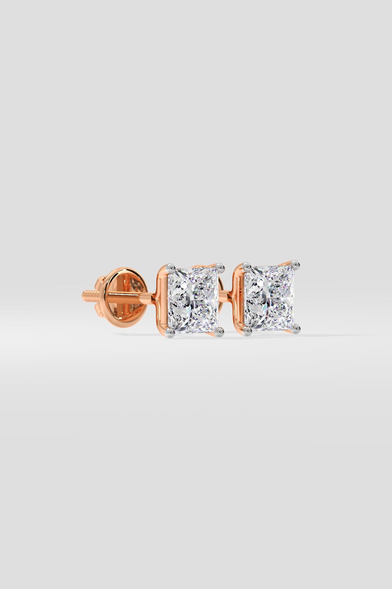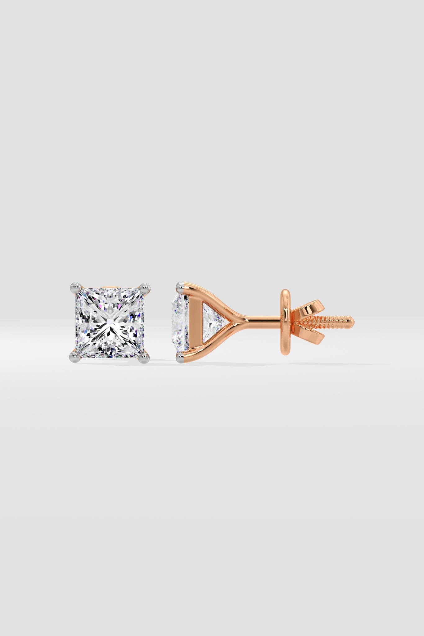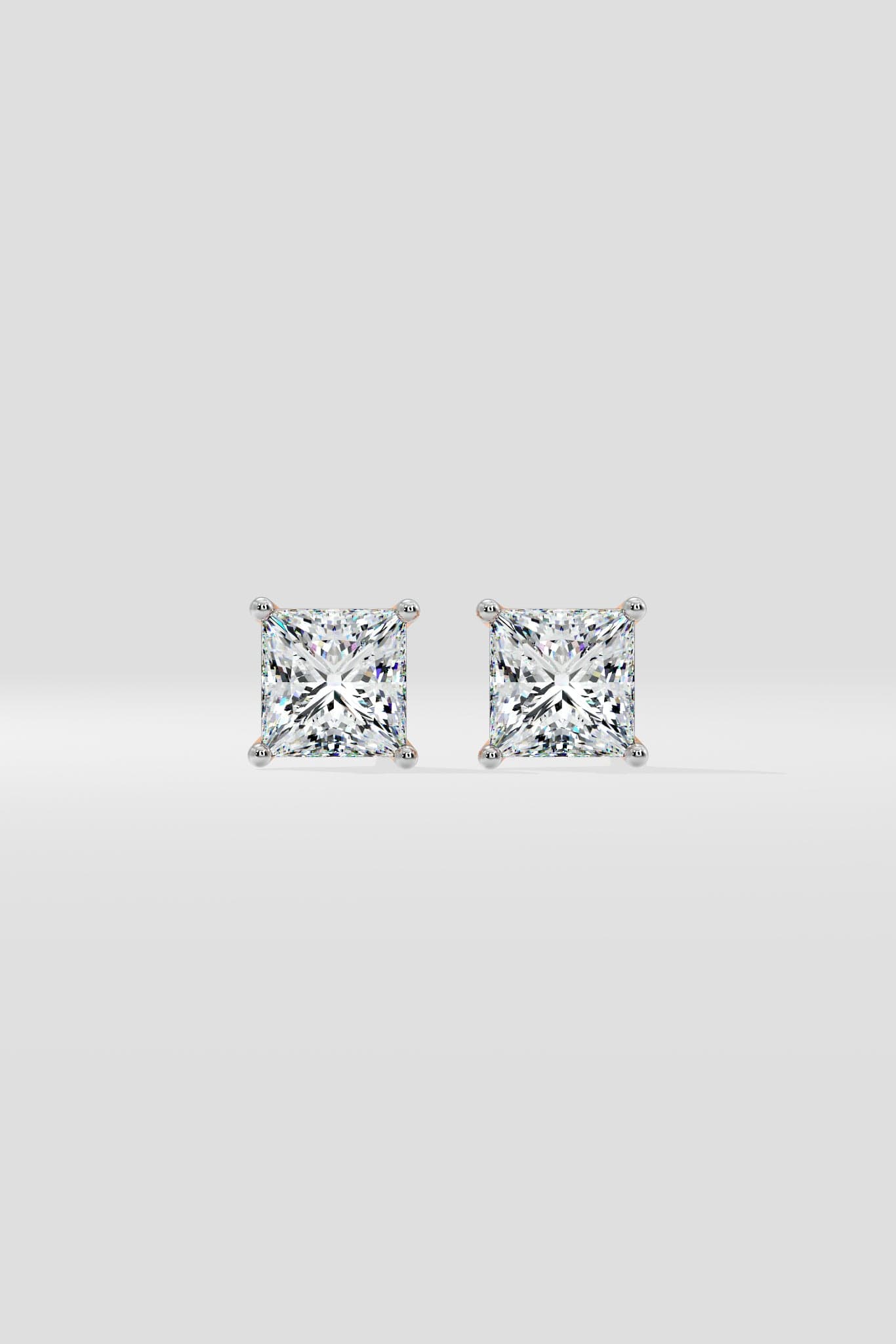 The 2 ct Conical Princess Studs feature 1 ct diamonds in princess cut, set in classic 4-prong settings. With sharp edges and high sparkle, they offer a confident alternative to the traditional round. Available in rose or white gold as well.