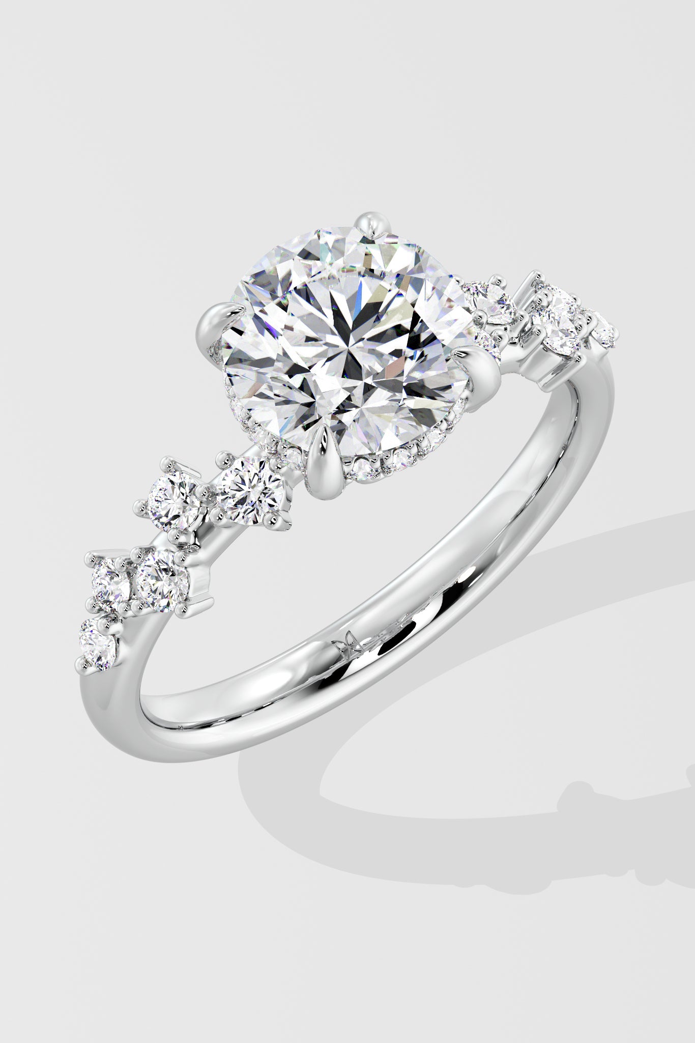 Elegance this effortless is rare. The Scatter Solitaire Ring features a 1.5 Ct of Round cut Diamond, elevated by an invisible halo. The scattered diamond accent on the band is the highlight here. Refined, radiant, impossibly chic.