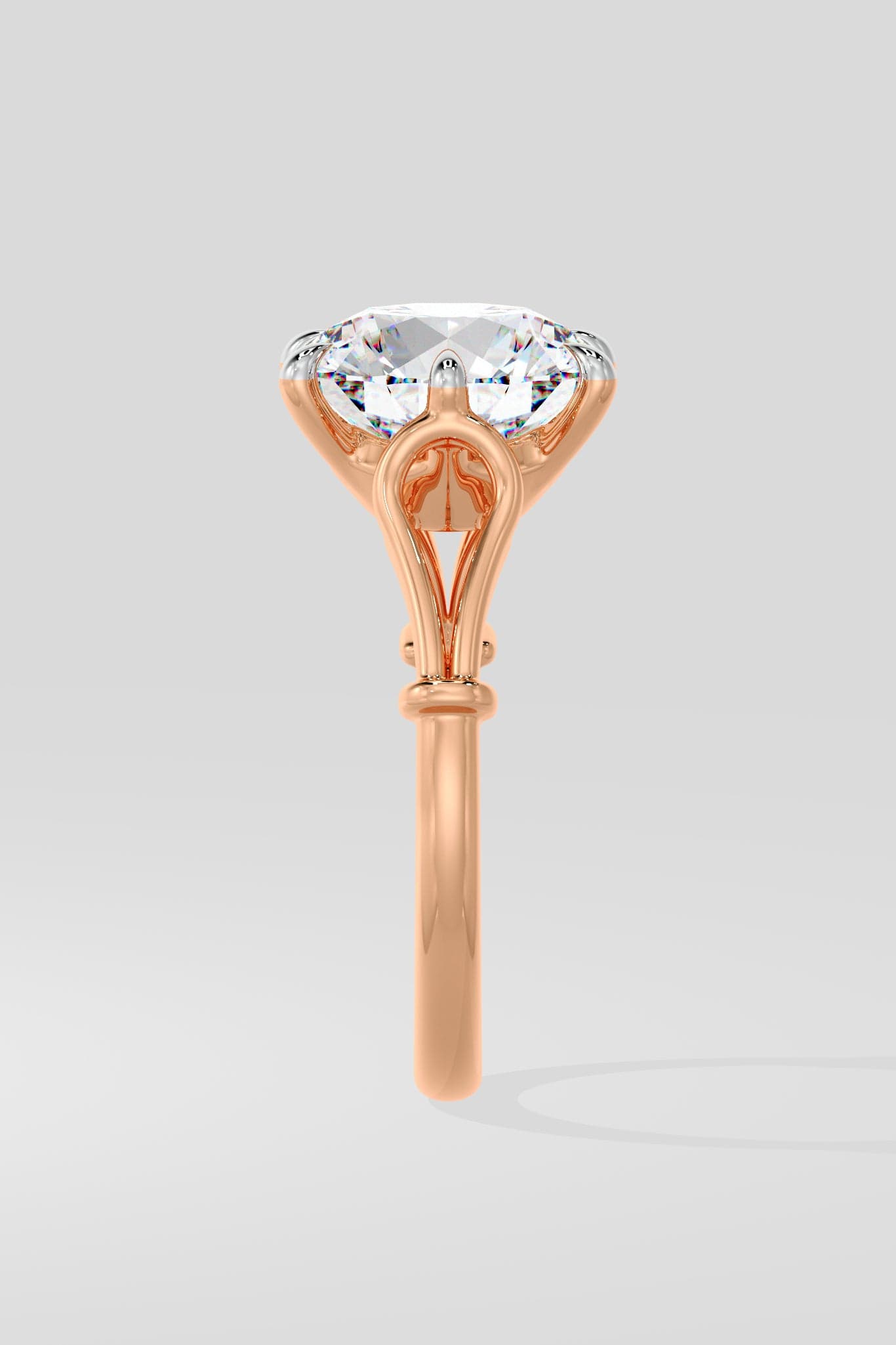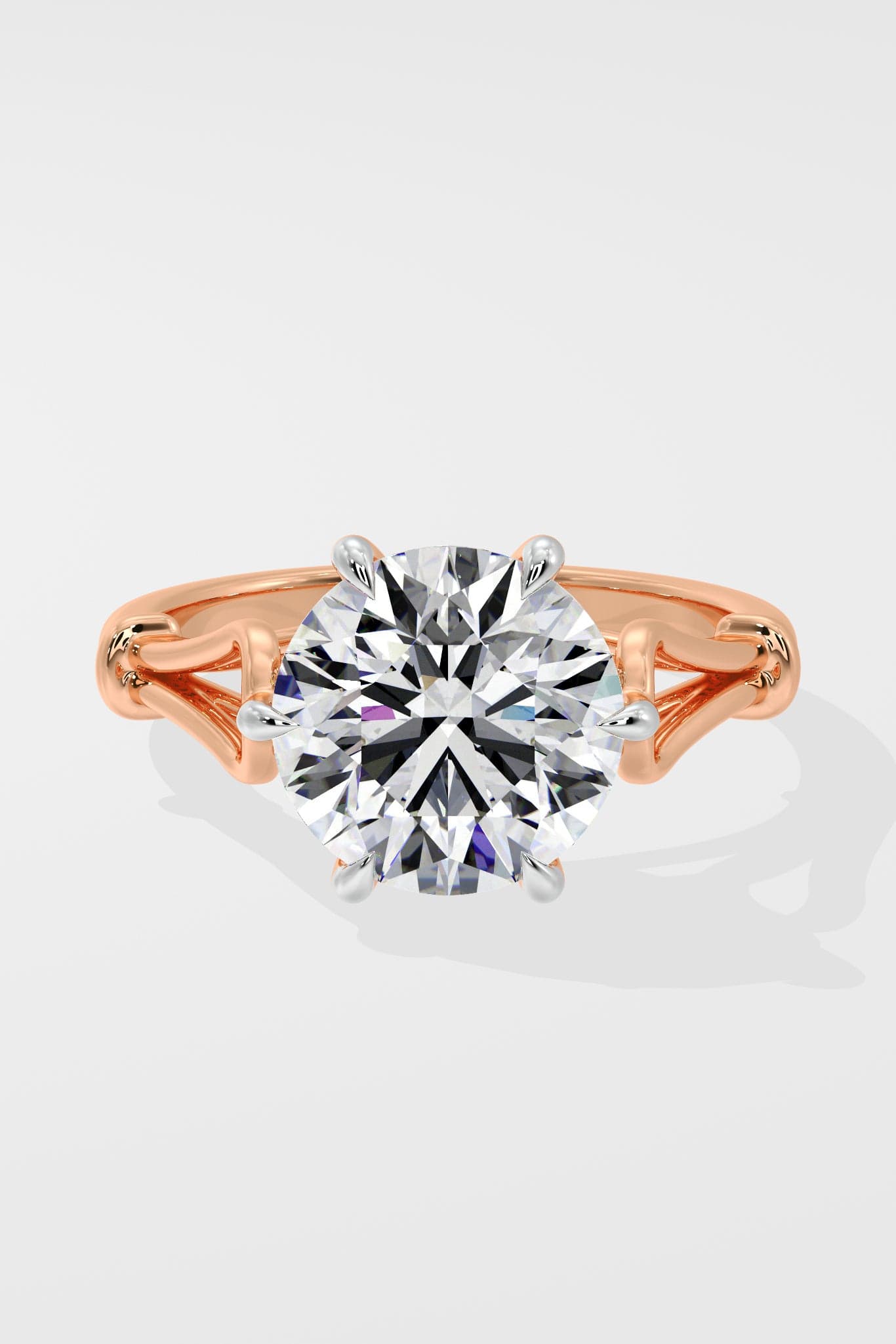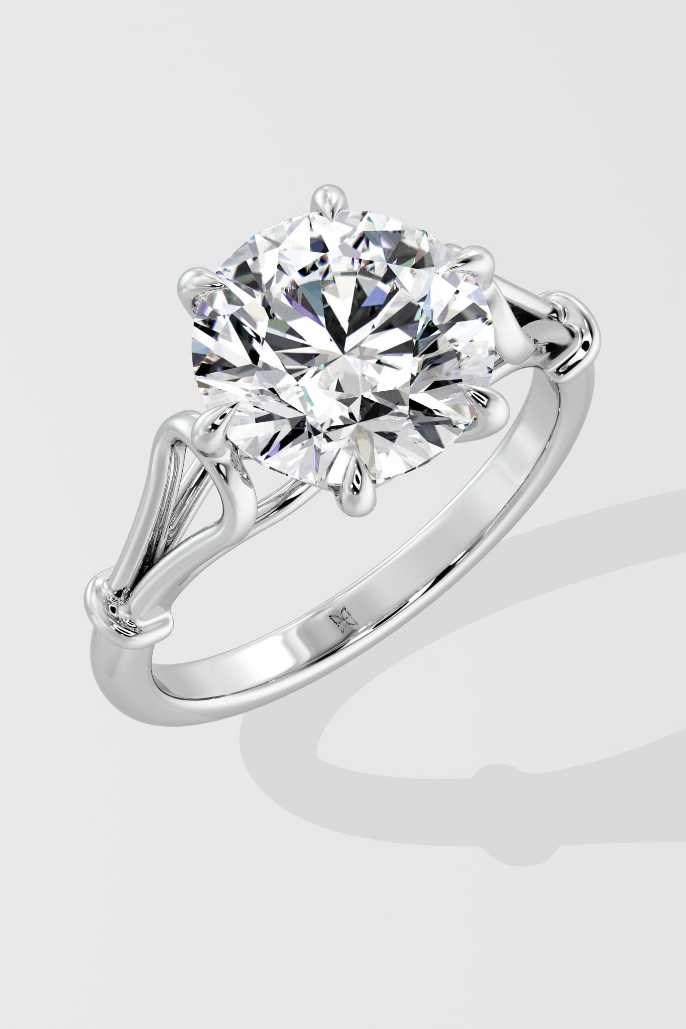 The 4 ct Elysian Solitaire Lab Grown Diamond Ring features a stunning 4 ct round brilliant set on the artful loop shank band. Held together with 6 claw prongs, a perfect expression of the elevated classic.