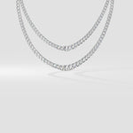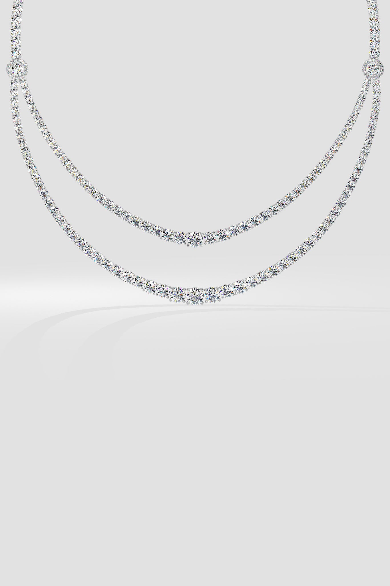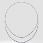The Elise Necklace features two intricately crafted layers of diamonds, graduating in size to create a harmonious flow. At its heart, a stunning 0.75 ct center stone draws attention, while the smaller diamonds seamlessly enhance its brilliance.