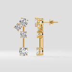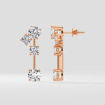 The Drop Solitaire Danglers feature 1/3 & 1/5 ct mini solitaires put together to form the perfect evening diamond style. Diamond danglers always work and the elegance of this simple style makes it a an easy gifting option as well.